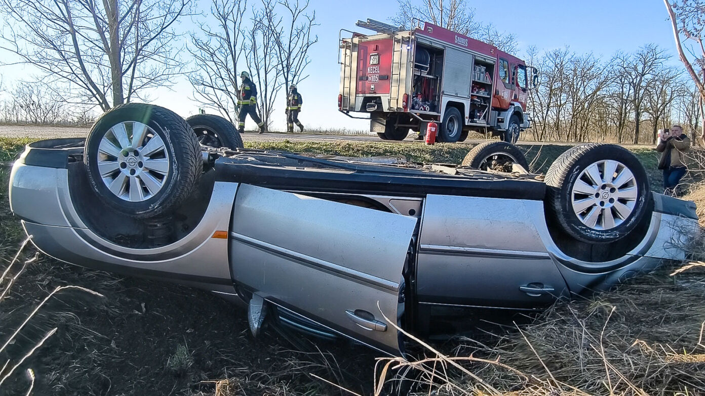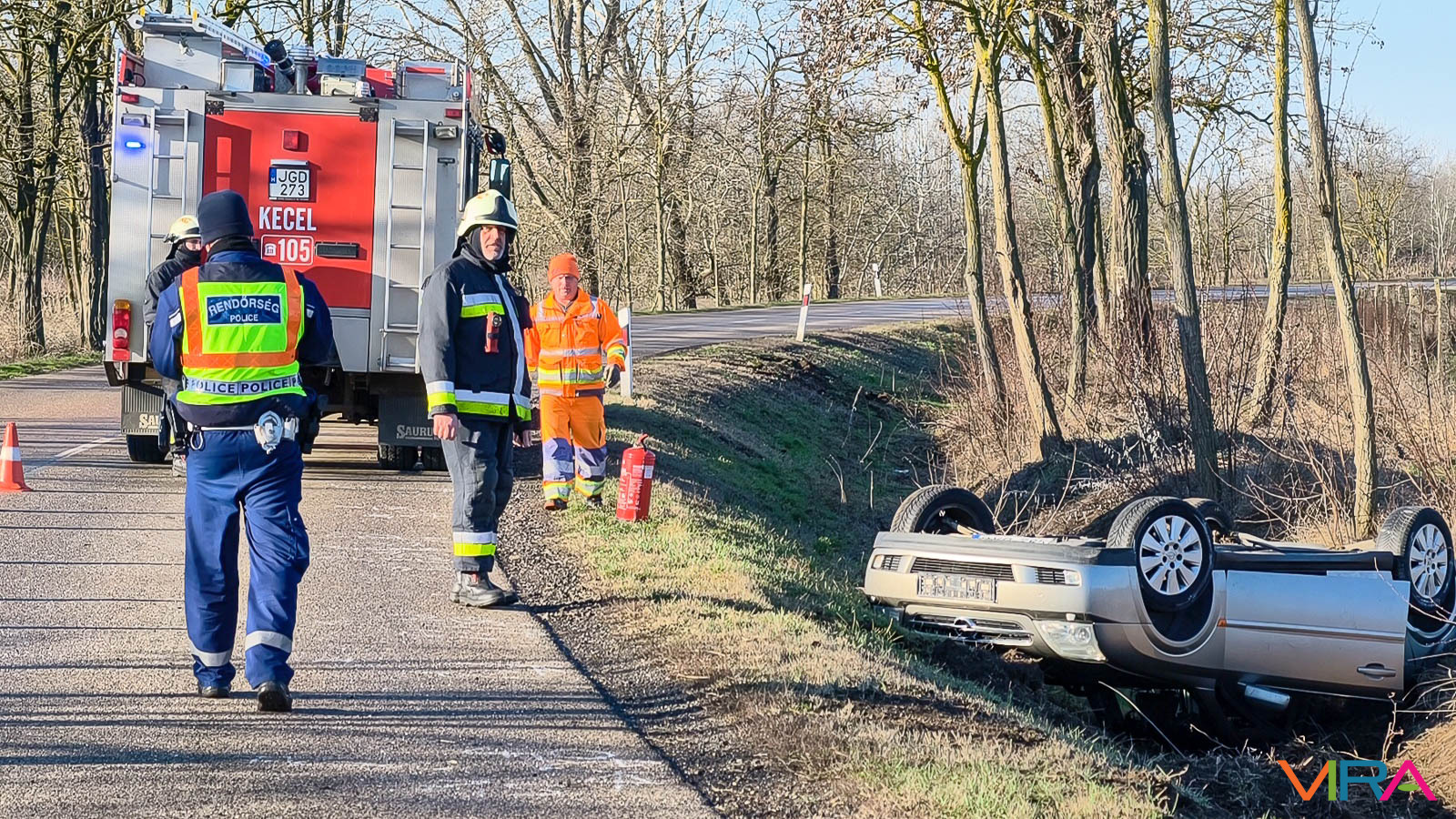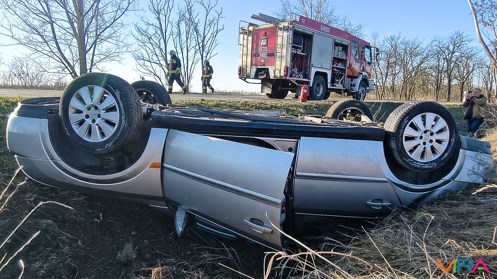 Helyszíni információink szerint az autó Kecel felől tartott Kalocsa irányába, amikor a jeges útfelületen megcsúszott. A sofőr elveszítette uralmát a jármű felett, amely a jobb oldali árokba hajtott, majd a tetejére borulva állt meg.