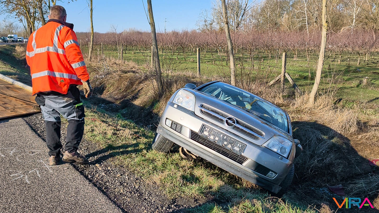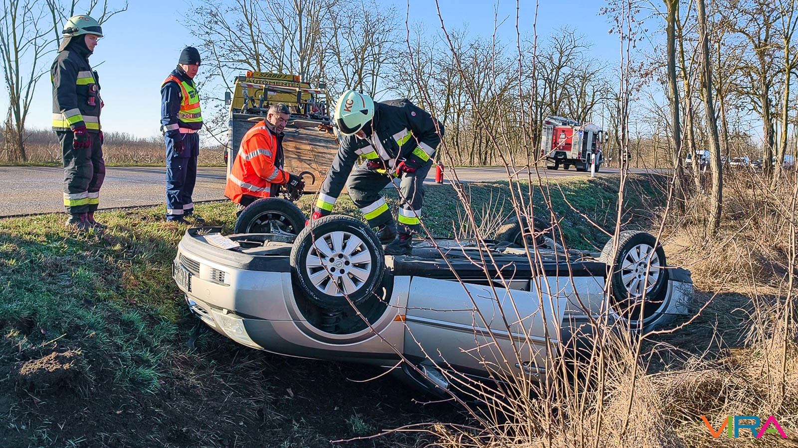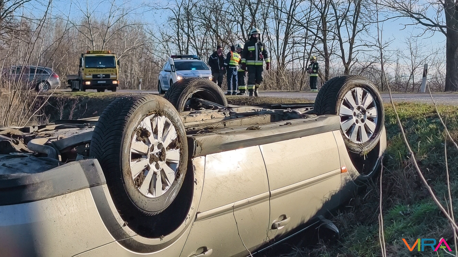 Helyszíni információink szerint az autó Kecel felől tartott Kalocsa irányába, amikor a jeges útfelületen megcsúszott. A sofőr elveszítette uralmát a jármű felett, amely a jobb oldali árokba hajtott, majd a tetejére borulva állt meg.