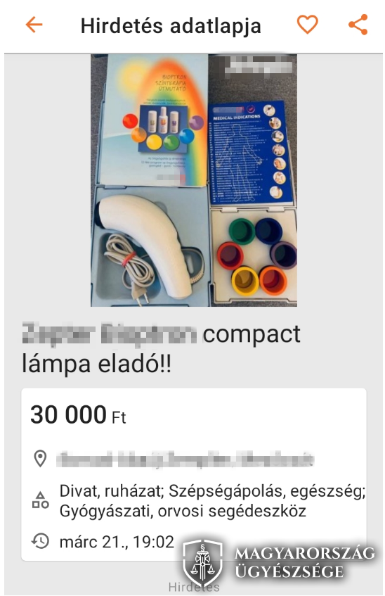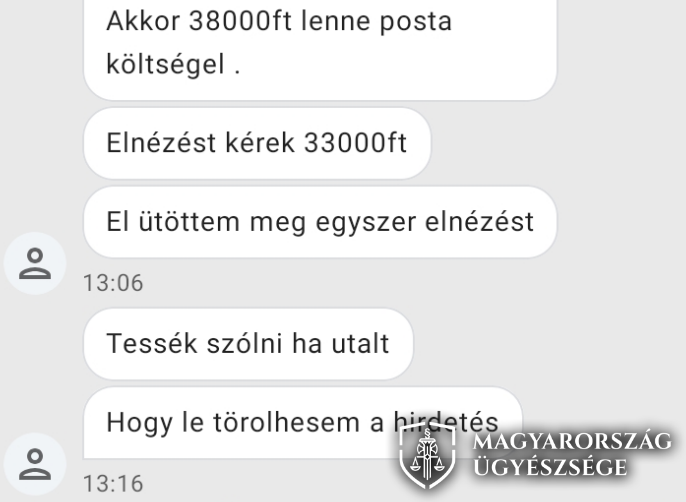 A csatolt fotókon a vádlott által feladott hirdetés és az egyik sértettnek küldött üzenet látható.