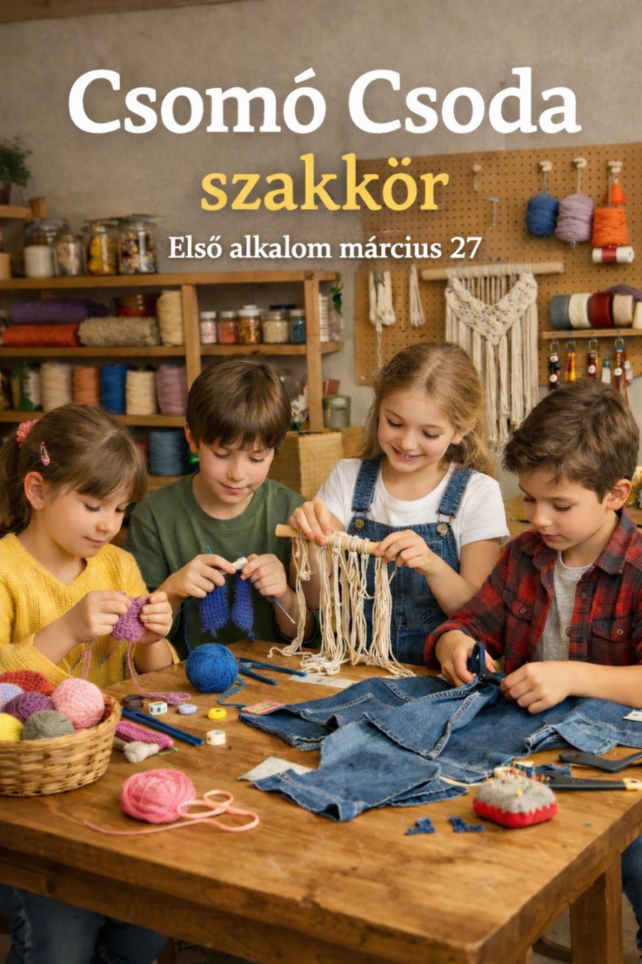 A kézimunka foglalkozásokat Szabó Zoltánné Piroska óvodapedagógus vezeti, aki a kötés, varrás, makramé és szabás világába vezeti be a gyerekeket. A foglalkozások során nemcsak technikákat tanulnak, hanem megtapasztalják az alkotás örömét is. A cél, hogy a gyermekek saját kezük munkáját hazavihessék, és átéljék azt a különleges érzést: „Ezt én készítettem.” Az idei tanévben négy alkalommal találkoznak, szeptembertől pedig a tervek szerint még mélyebben merülnek el a „Csomó Csoda” világában.