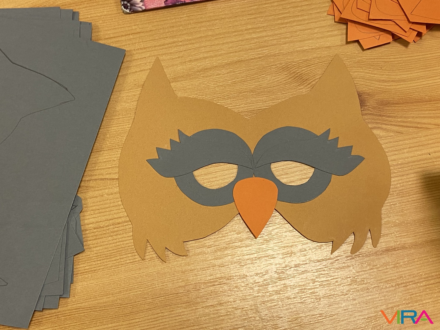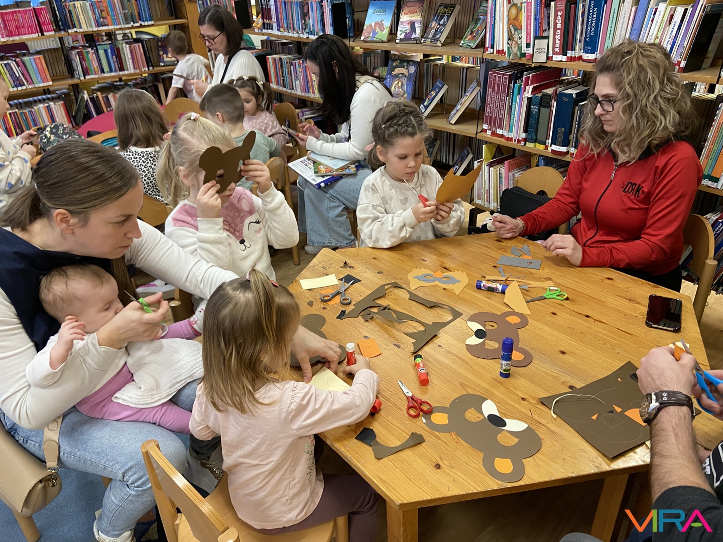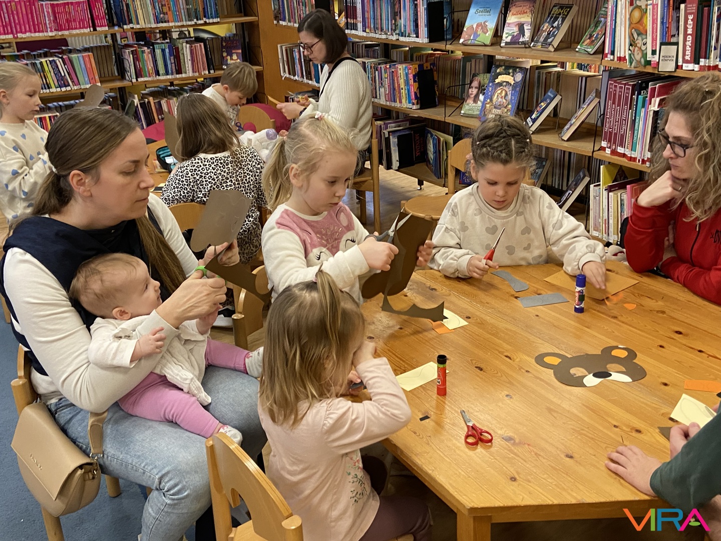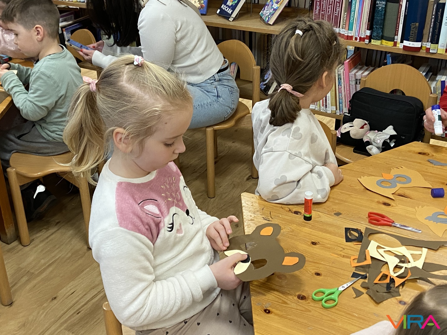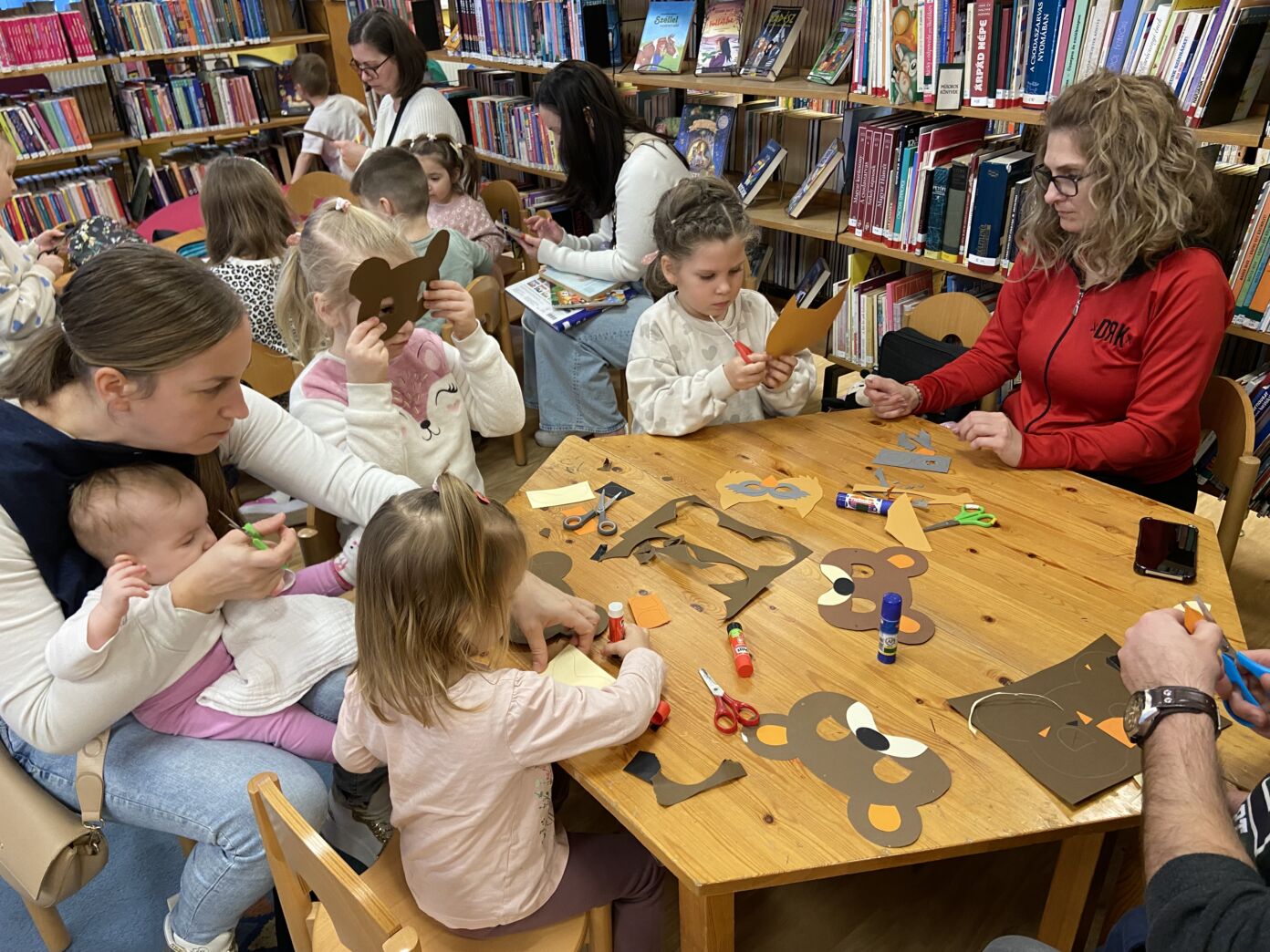 A mesemondást követően a szokásos kézműves foglalkozás következett, amely ezúttal a farsanghoz kapcsolódott. A gyerekek állatos tematikájú álarcokat készítettek, amelyhez háromféle mintából választhattak: mackó, bagoly és borz maszk közül dönthettek. A sablonok segítségével a résztvevők kivágták, összeállították és díszítették saját álarcaikat, miközben a szülők és nagyszülők is bekapcsolódtak a közös alkotásba. A foglalkozás így nemcsak kreatív tevékenységet, hanem családi együttlétet is jelentett.
