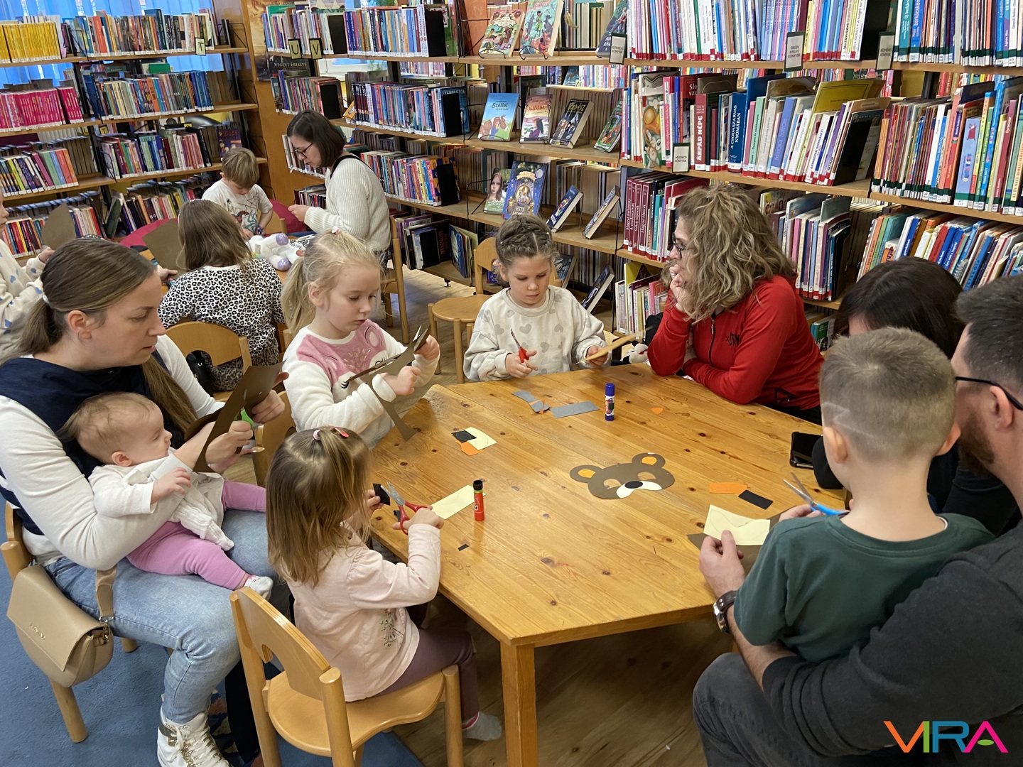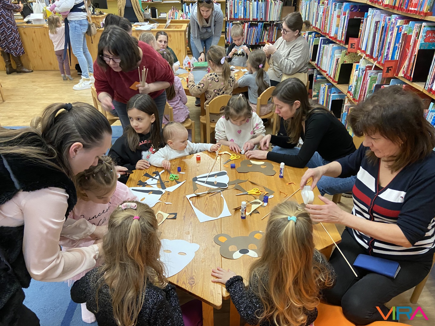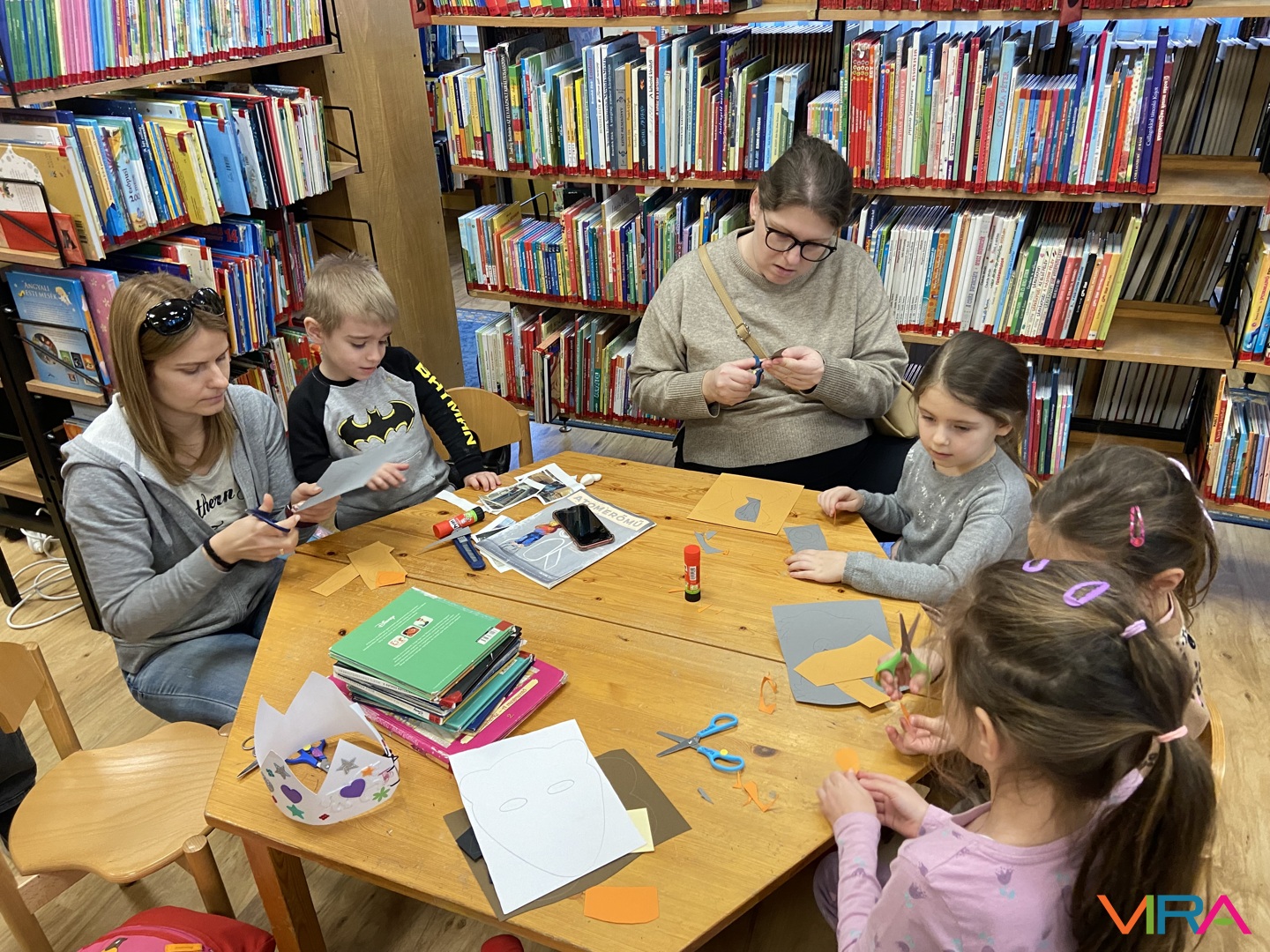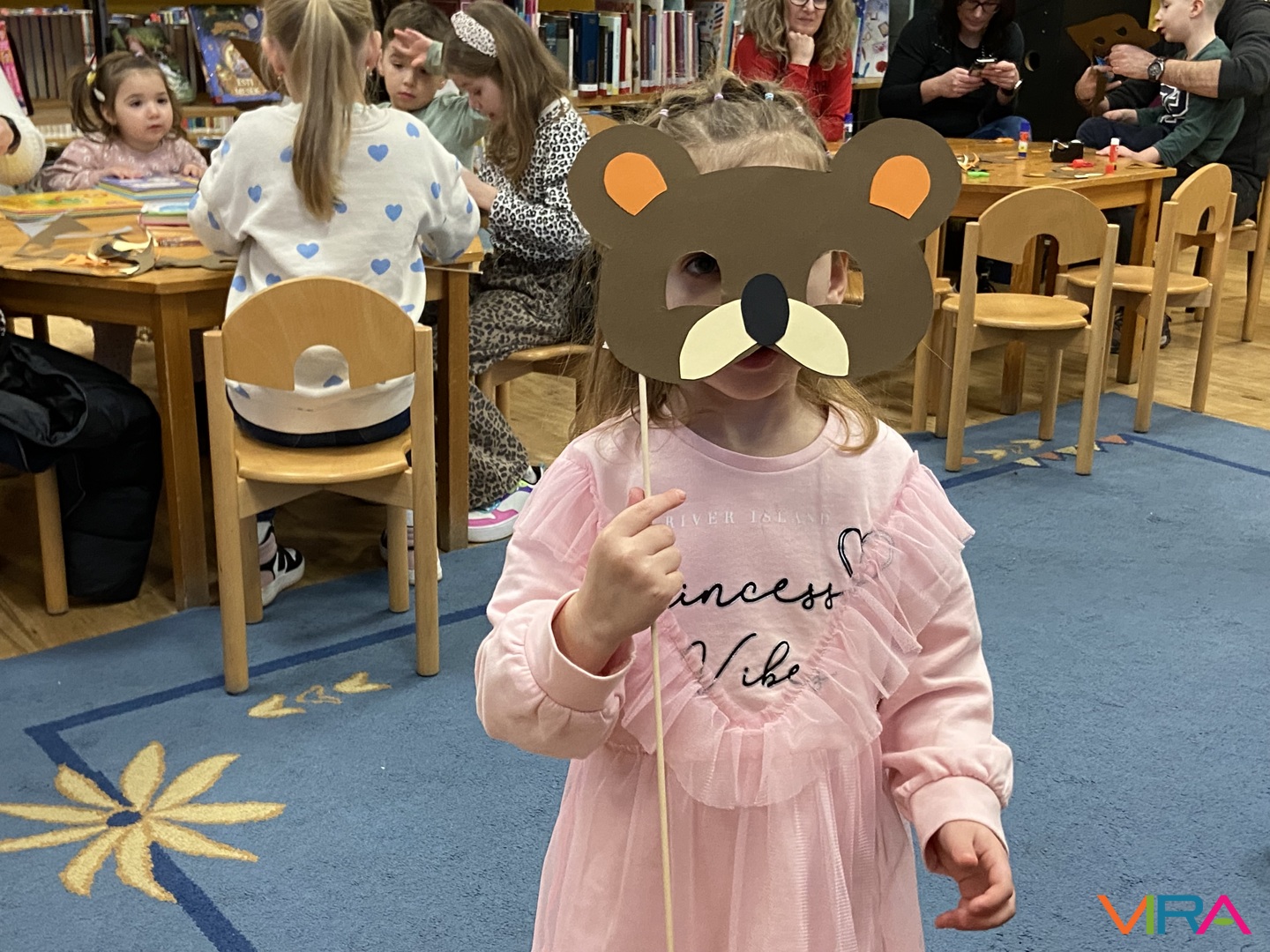 A mesemondást követően a szokásos kézműves foglalkozás következett, amely ezúttal a farsanghoz kapcsolódott. A gyerekek állatos tematikájú álarcokat készítettek, amelyhez háromféle mintából választhattak: mackó, bagoly és borz maszk közül dönthettek. A sablonok segítségével a résztvevők kivágták, összeállították és díszítették saját álarcaikat, miközben a szülők és nagyszülők is bekapcsolódtak a közös alkotásba. A foglalkozás így nemcsak kreatív tevékenységet, hanem családi együttlétet is jelentett.