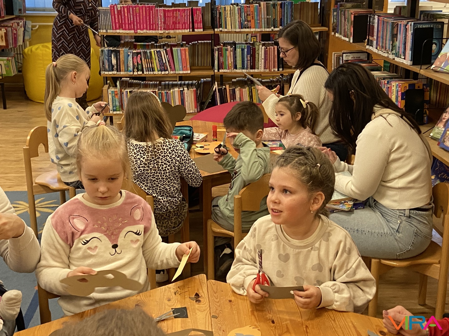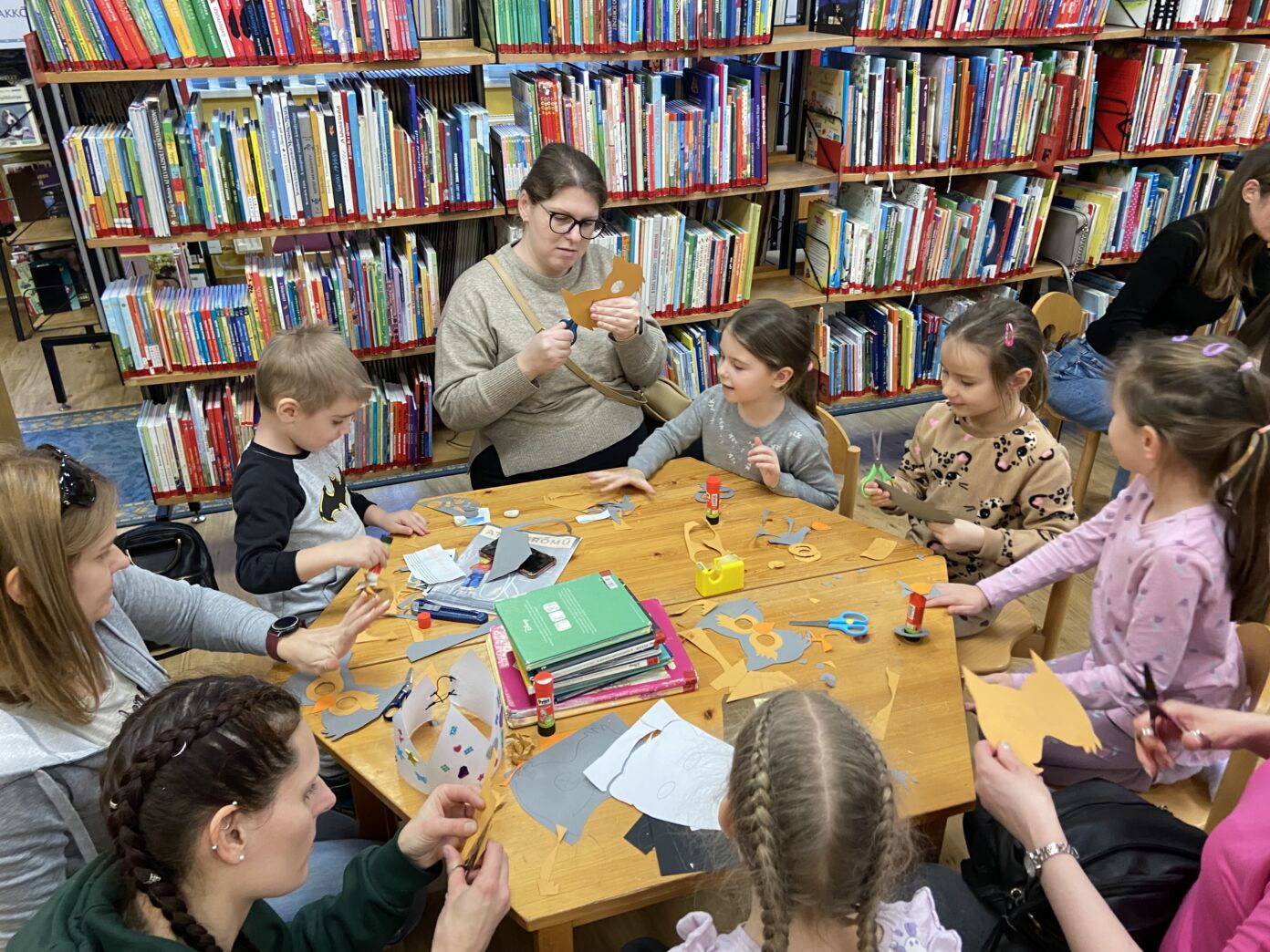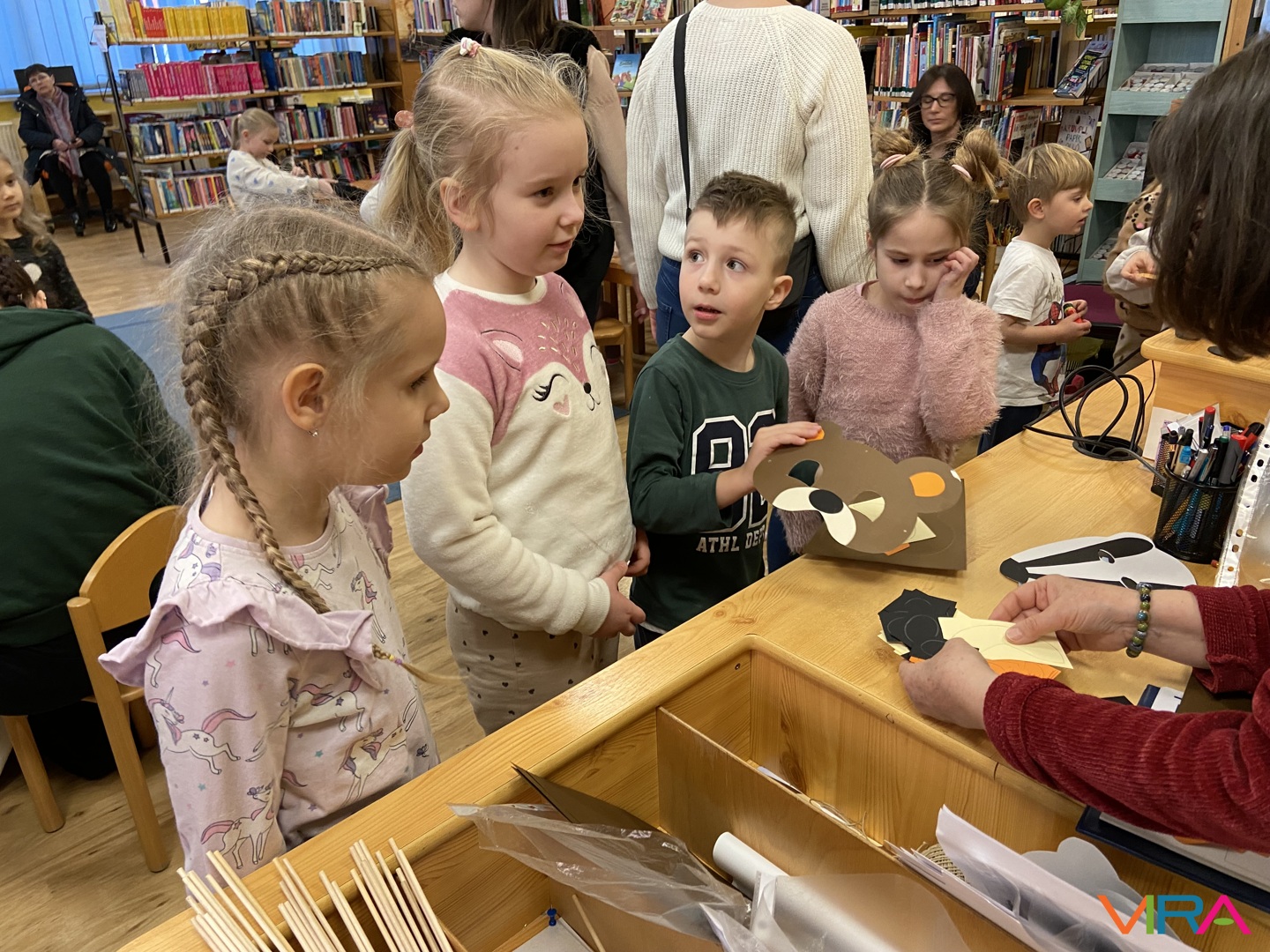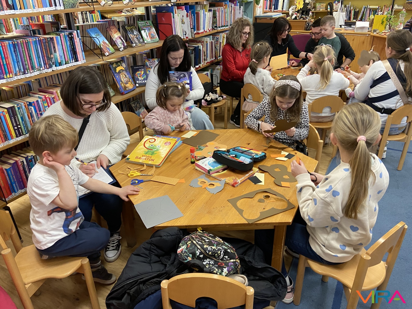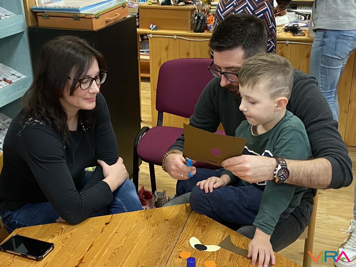 A mesemondást követően a szokásos kézműves foglalkozás következett, amely ezúttal a farsanghoz kapcsolódott. A gyerekek állatos tematikájú álarcokat készítettek, amelyhez háromféle mintából választhattak: mackó, bagoly és borz maszk közül dönthettek. A sablonok segítségével a résztvevők kivágták, összeállították és díszítették saját álarcaikat, miközben a szülők és nagyszülők is bekapcsolódtak a közös alkotásba. A foglalkozás így nemcsak kreatív tevékenységet, hanem családi együttlétet is jelentett.