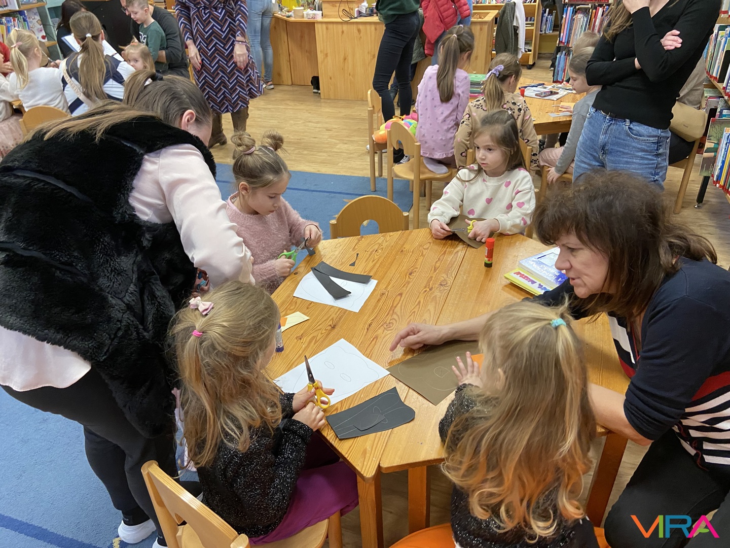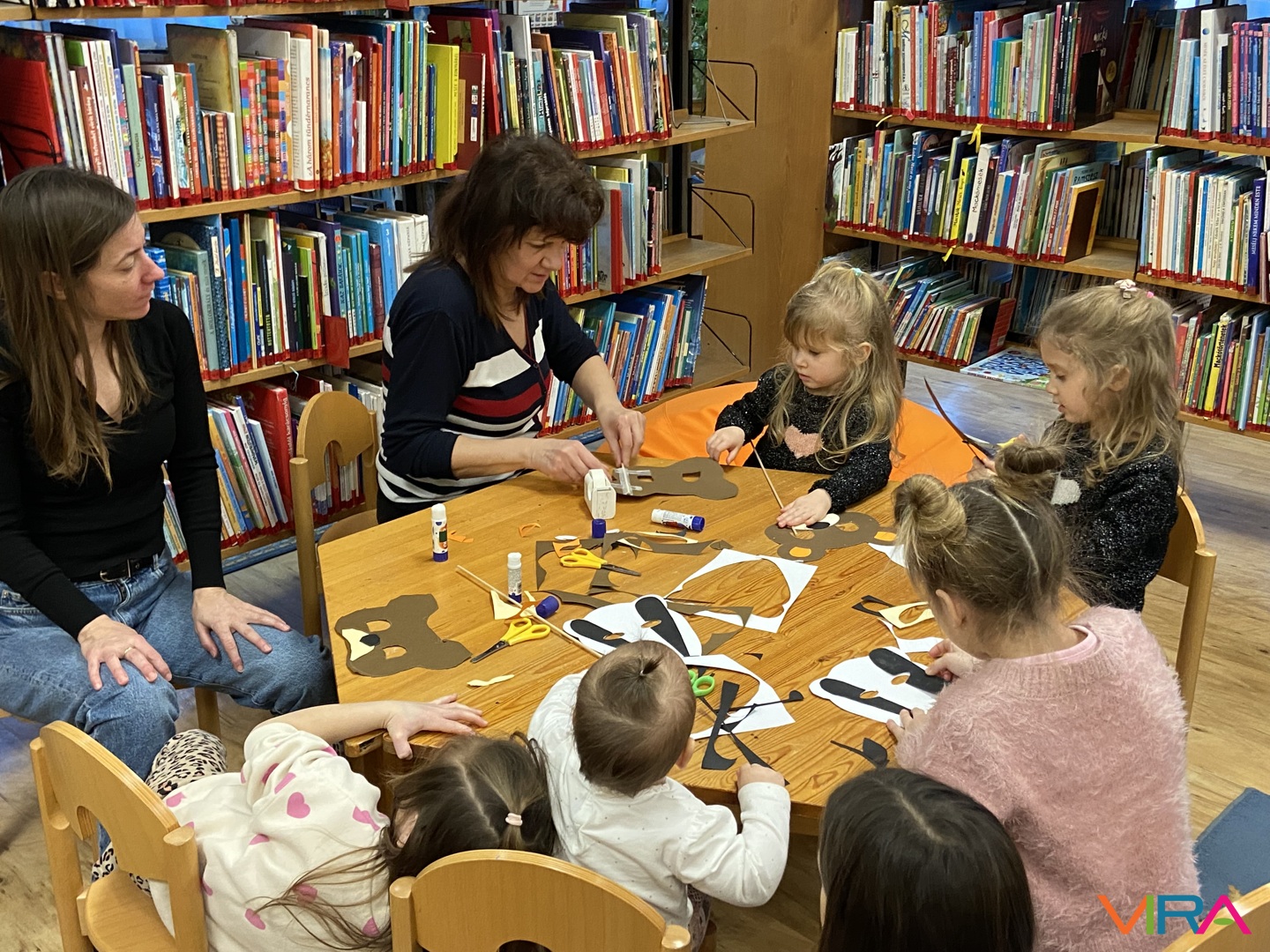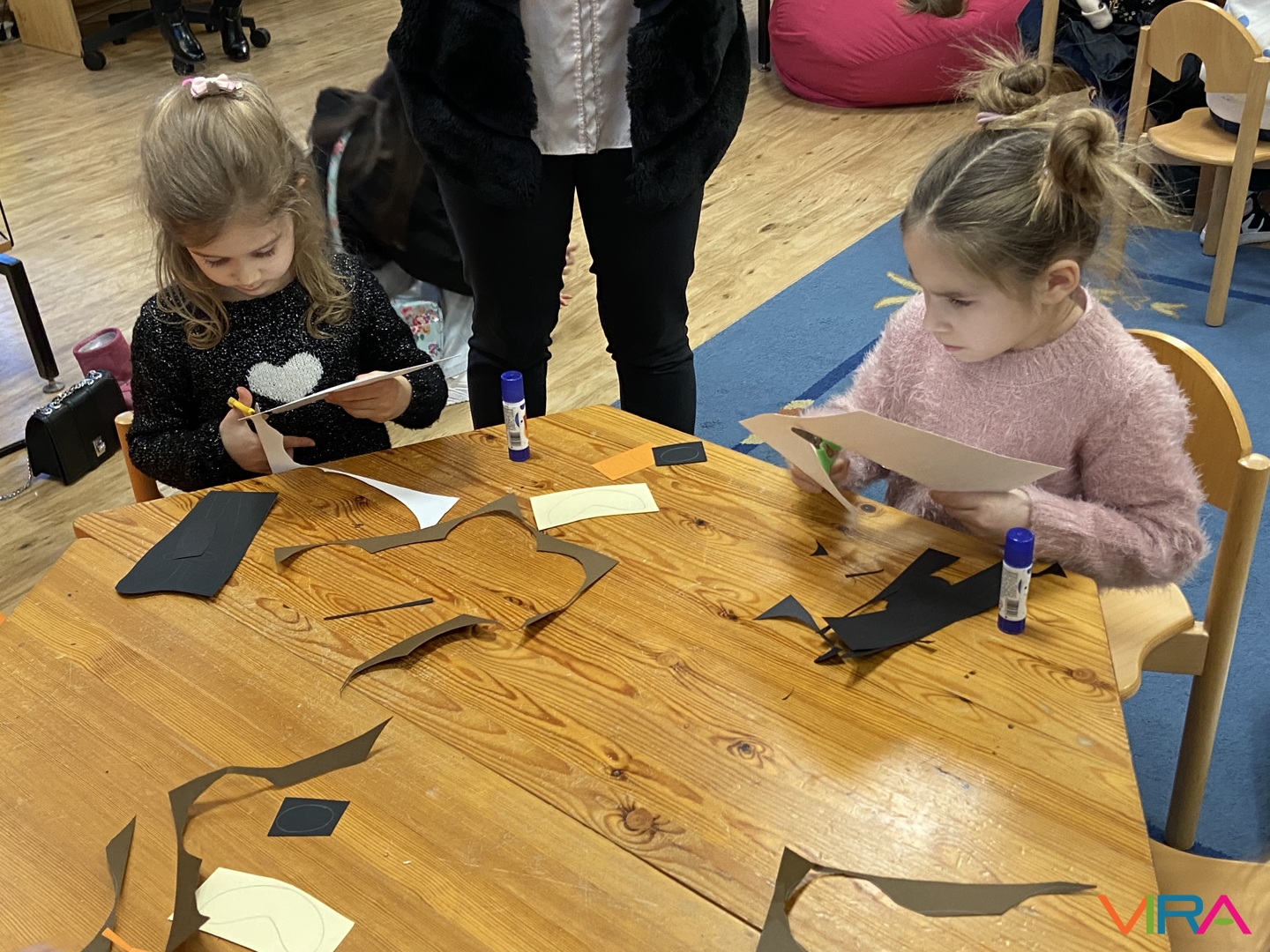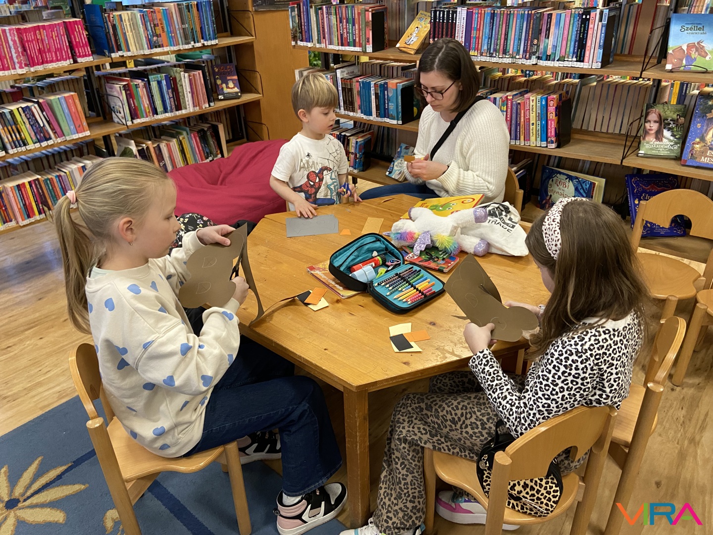 A mesemondást követően a szokásos kézműves foglalkozás következett, amely ezúttal a farsanghoz kapcsolódott. A gyerekek állatos tematikájú álarcokat készítettek, amelyhez háromféle mintából választhattak: mackó, bagoly és borz maszk közül dönthettek. A sablonok segítségével a résztvevők kivágták, összeállították és díszítették saját álarcaikat, miközben a szülők és nagyszülők is bekapcsolódtak a közös alkotásba. A foglalkozás így nemcsak kreatív tevékenységet, hanem családi együttlétet is jelentett.