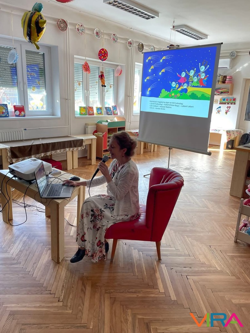 A gyerekek kíváncsian, tátott szájjal figyelték a történeteket, teljesen elvarázsolta őket a mesék világa. A programot játékos, gondolkodtató, interaktív feladatok színesítették, amelyekbe a gyerekek örömmel és lelkesen kapcsolódtak be. A közös élményt Bogyó és Babóca jólismert dala koronázta meg, amely méltó lezárása volt a tartalmas eseménynek.