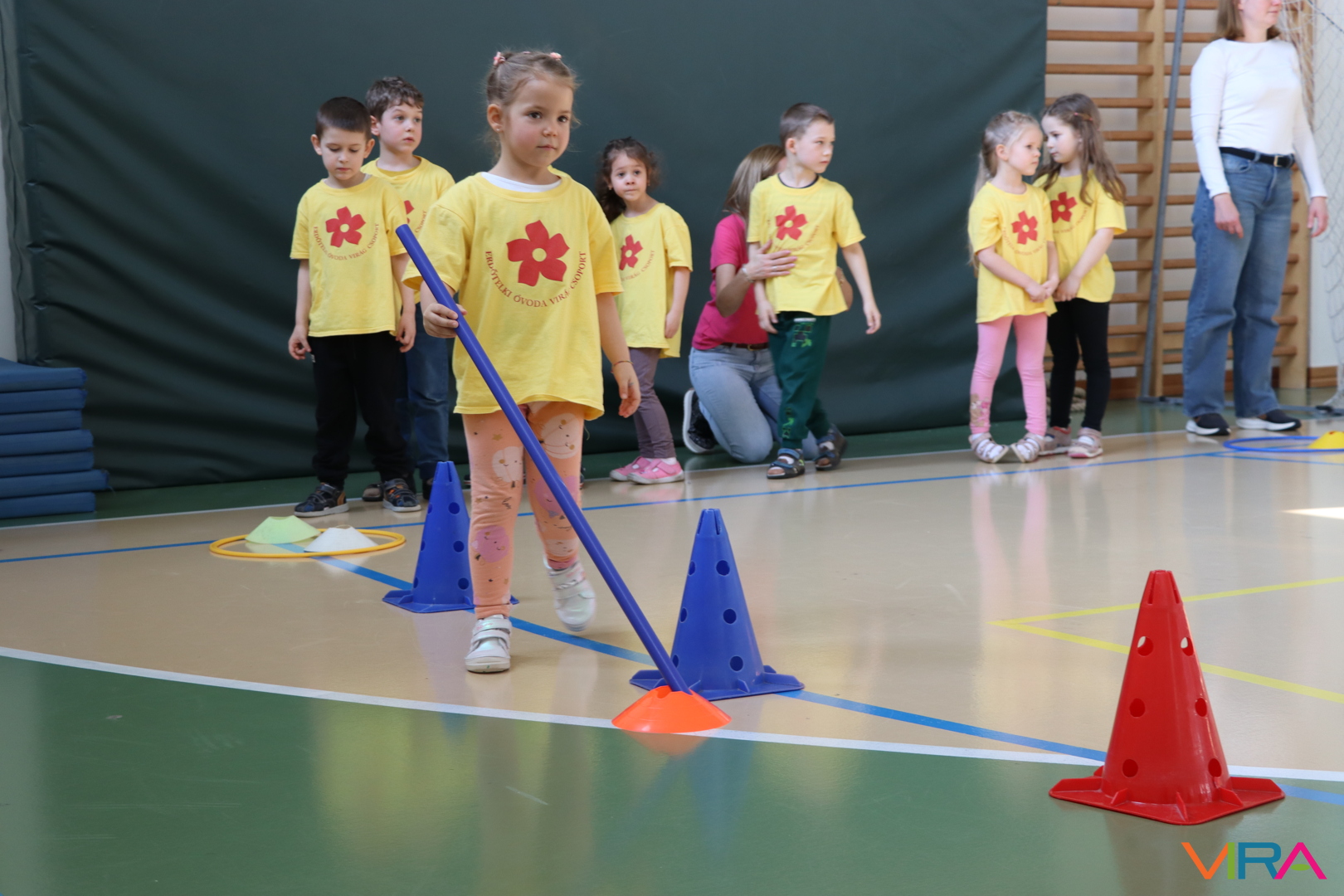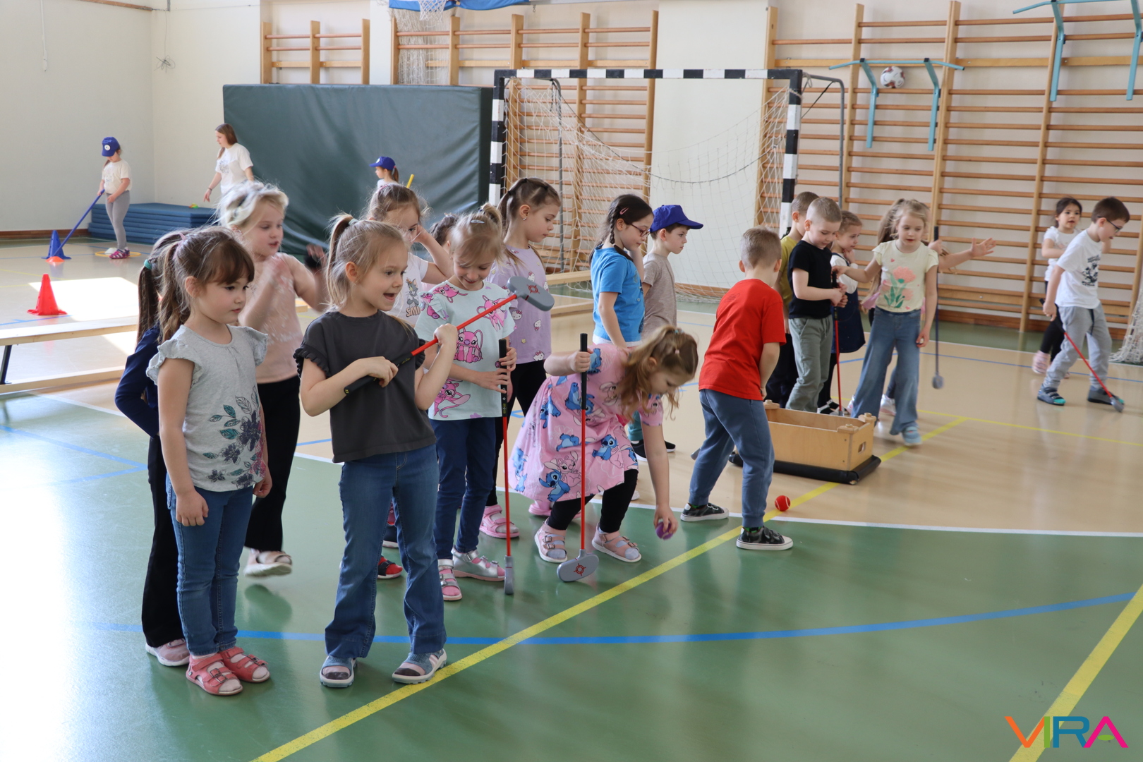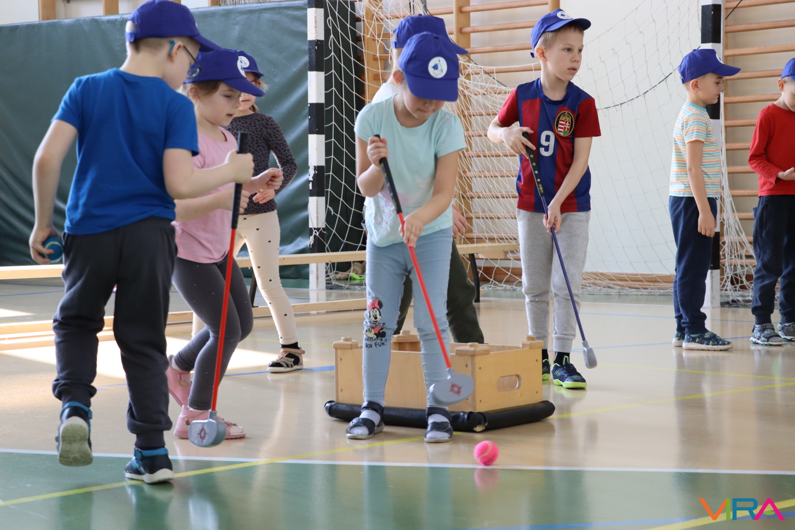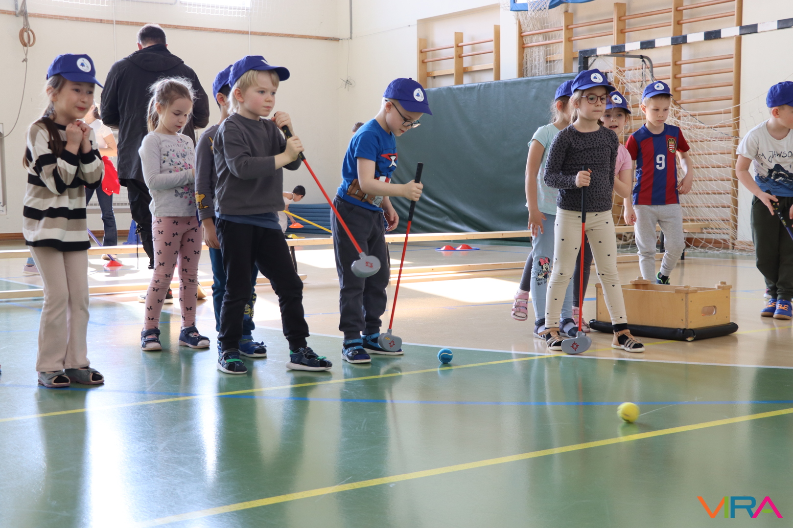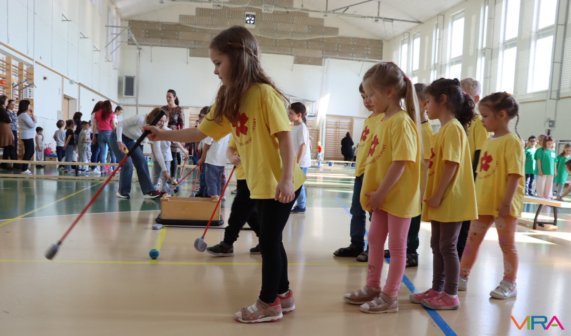 A közös, játékos bemelegítést követően a gyerekek birtokba vették a tornatermet, ahol öt állomáson próbálhatták ki ügyességüket. A feladatok között szerepelt célba dobás, ügyességi és szlalom feladatok, egyensúlyozás, valamint golfozás, így a gyermekek minden állomáson más-más ügyességüket és mozgáskészségüket csillanthatták meg. A változatos akadálypályák elsősorban a mozgás örömét és a sikerélményt helyezték előtérbe. A sorverseny lebonyolításáról és a feladatok összeállításáról Pálinkás-Kolonusz Lili gondoskodott.