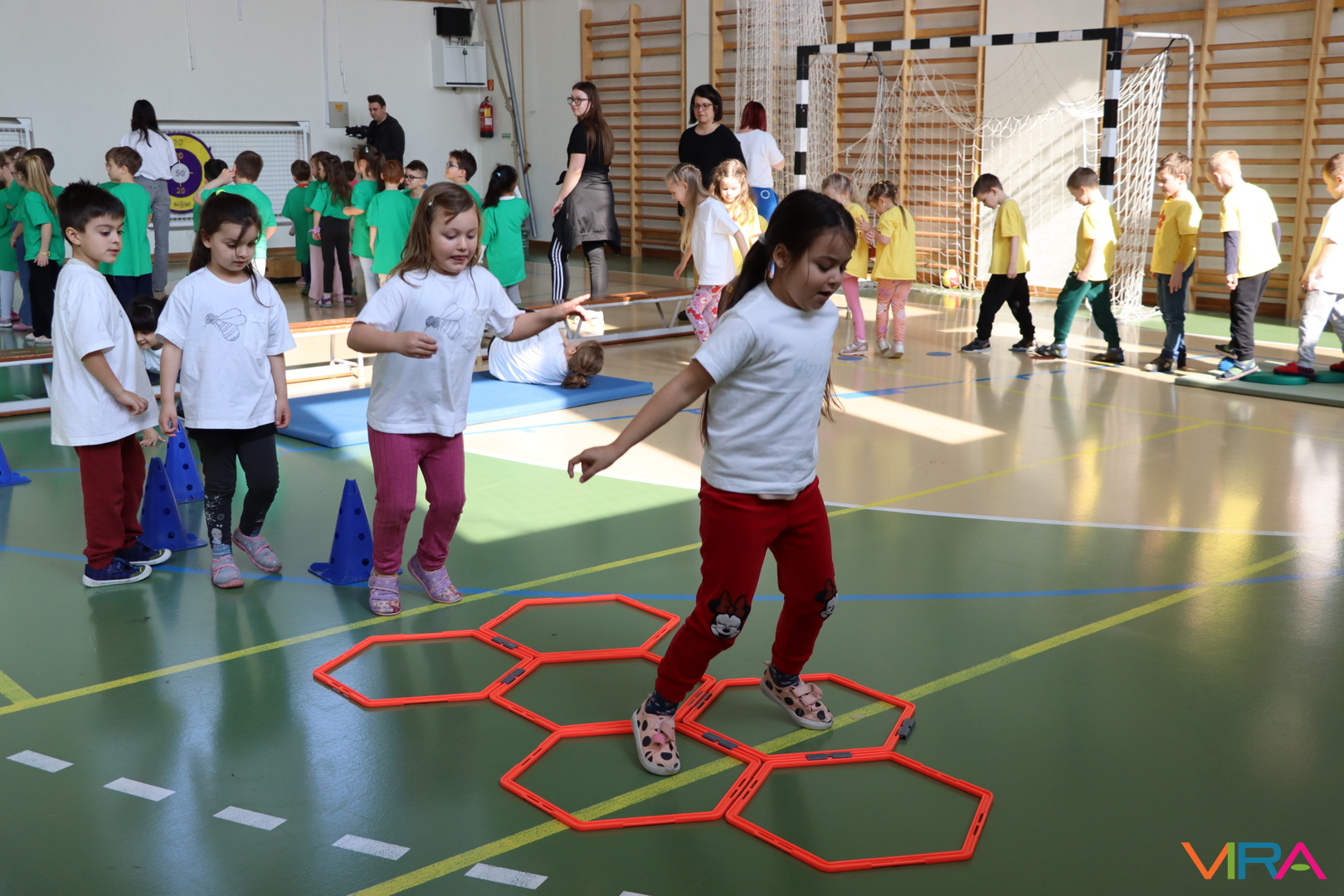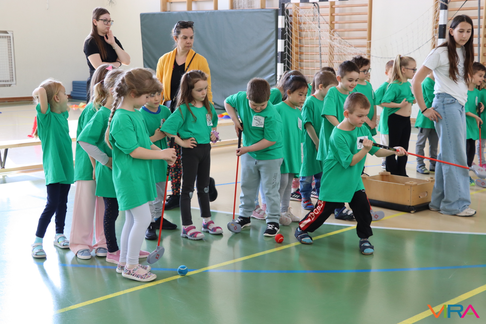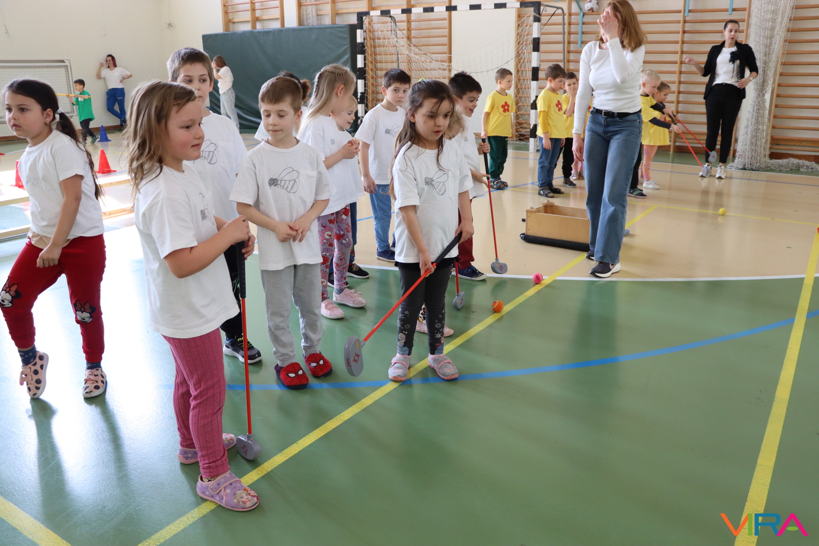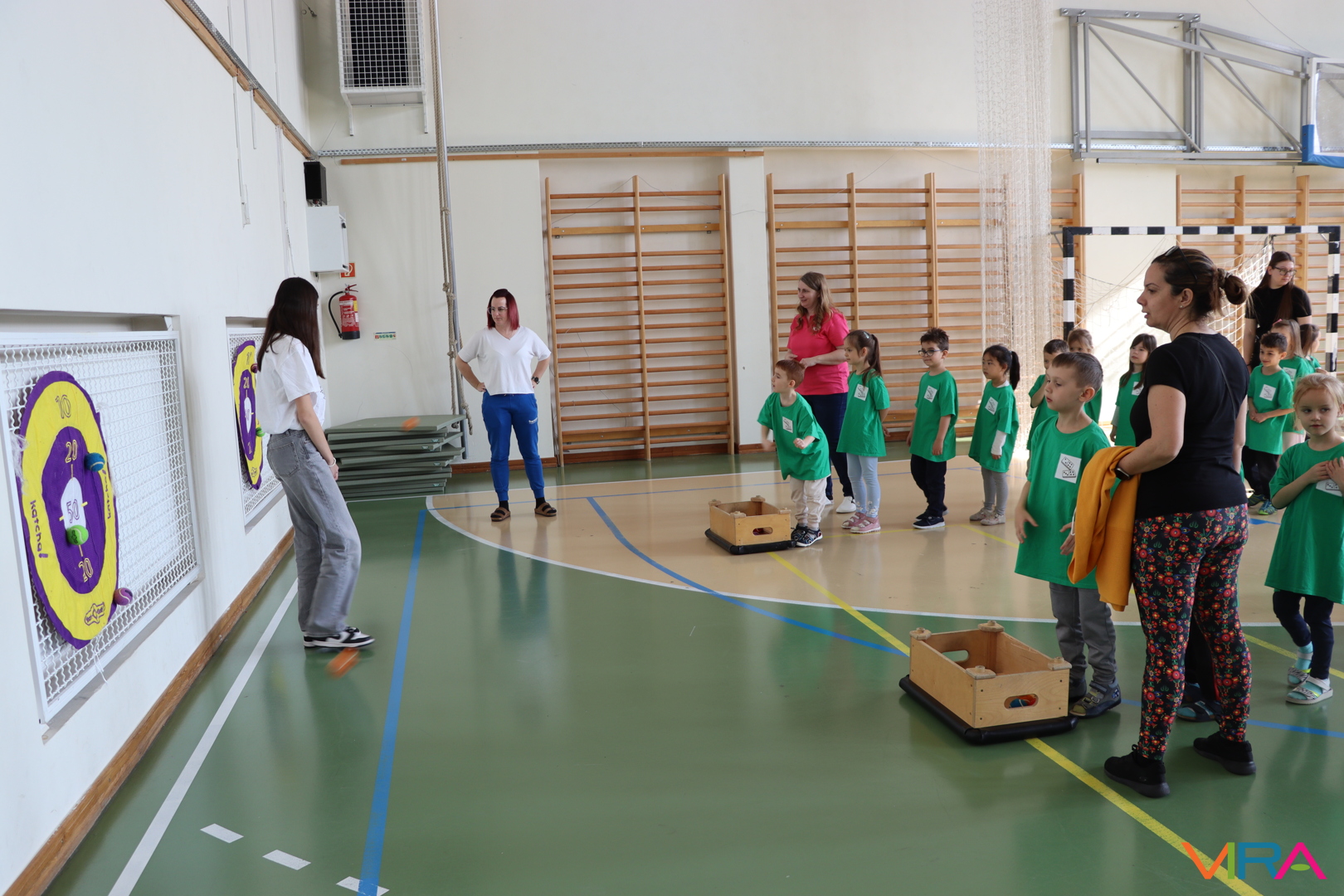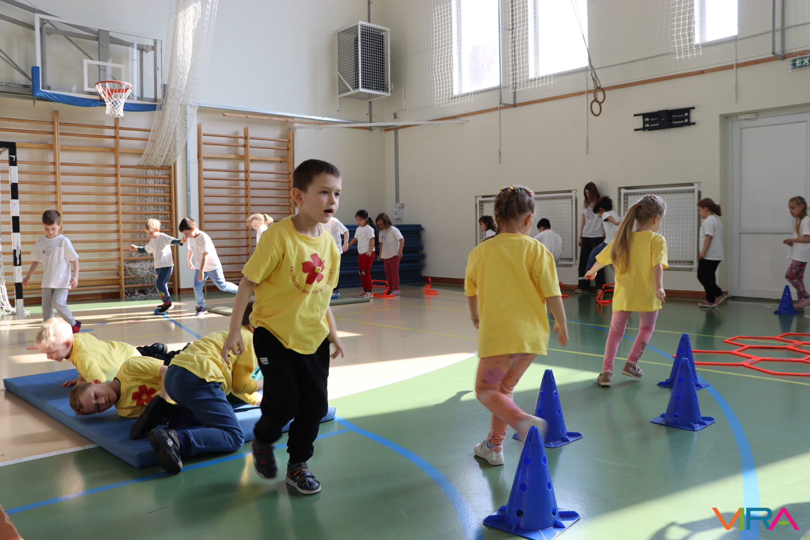 A közös, játékos bemelegítést követően a gyerekek birtokba vették a tornatermet, ahol öt állomáson próbálhatták ki ügyességüket. A feladatok között szerepelt célba dobás, ügyességi és szlalom feladatok, egyensúlyozás, valamint golfozás, így a gyermekek minden állomáson más-más ügyességüket és mozgáskészségüket csillanthatták meg. A változatos akadálypályák elsősorban a mozgás örömét és a sikerélményt helyezték előtérbe. A sorverseny lebonyolításáról és a feladatok összeállításáról Pálinkás-Kolonusz Lili gondoskodott.