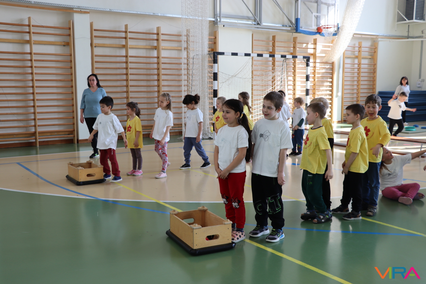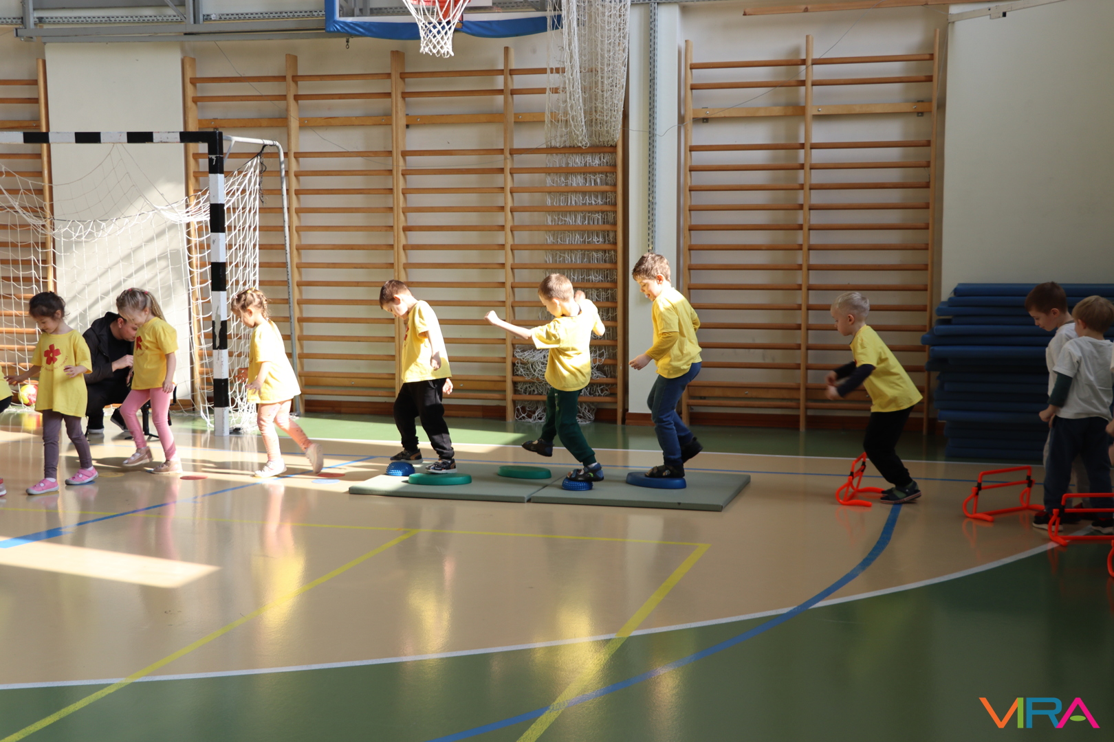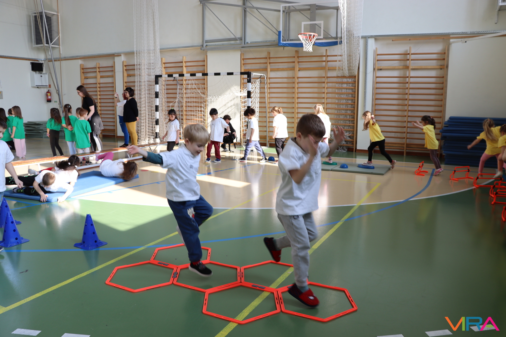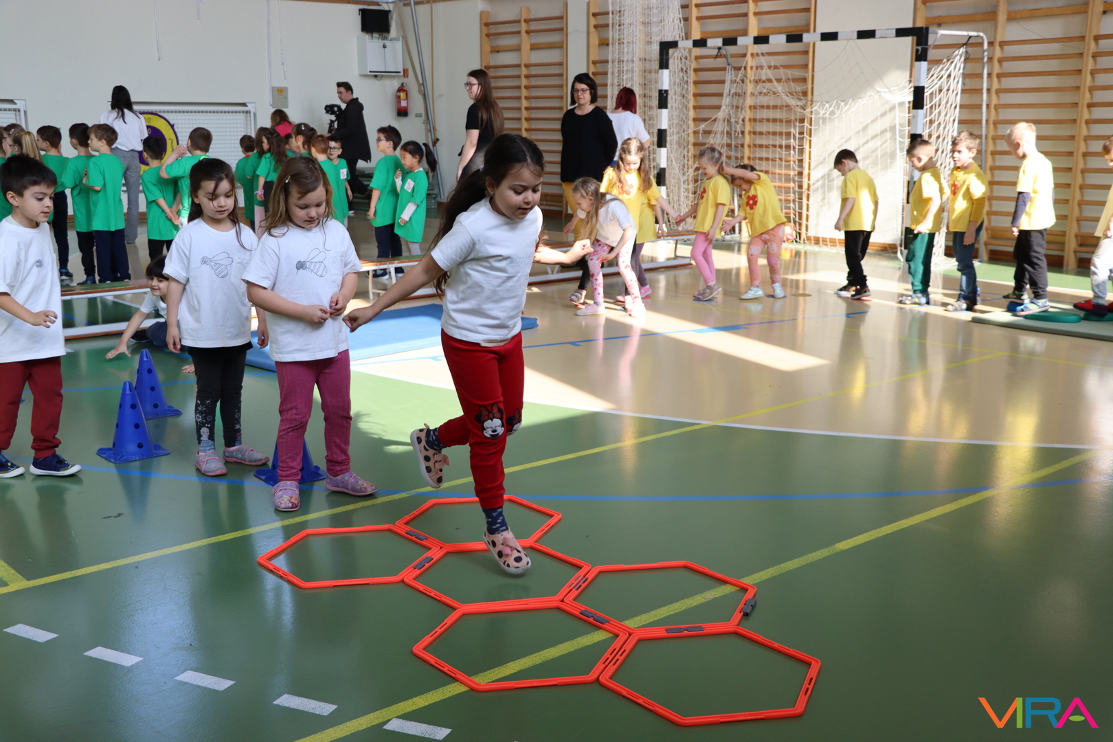 A közös, játékos bemelegítést követően a gyerekek birtokba vették a tornatermet, ahol öt állomáson próbálhatták ki ügyességüket. A feladatok között szerepelt célba dobás, ügyességi és szlalom feladatok, egyensúlyozás, valamint golfozás, így a gyermekek minden állomáson más-más ügyességüket és mozgáskészségüket csillanthatták meg. A változatos akadálypályák elsősorban a mozgás örömét és a sikerélményt helyezték előtérbe. A sorverseny lebonyolításáról és a feladatok összeállításáról Pálinkás-Kolonusz Lili gondoskodott.