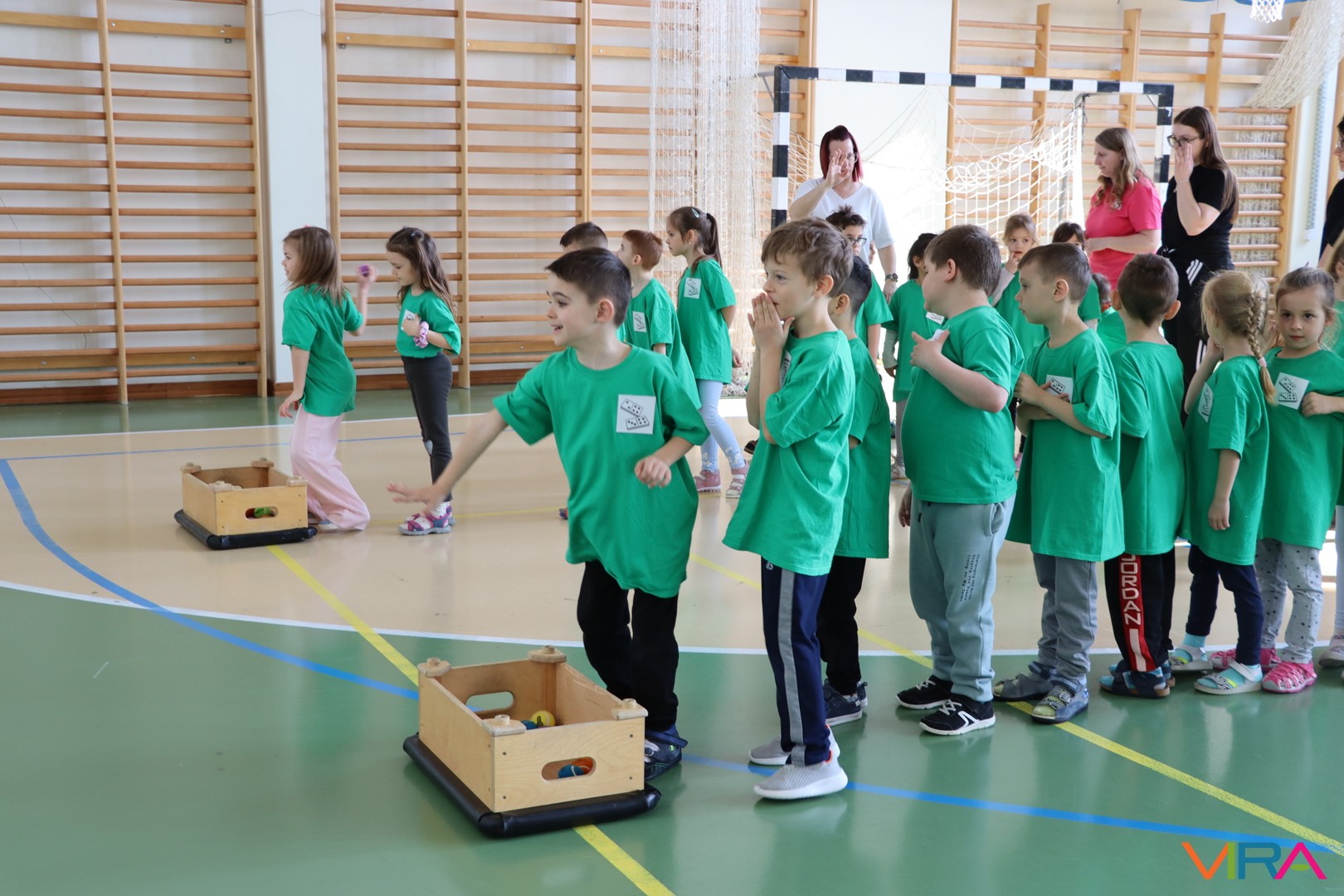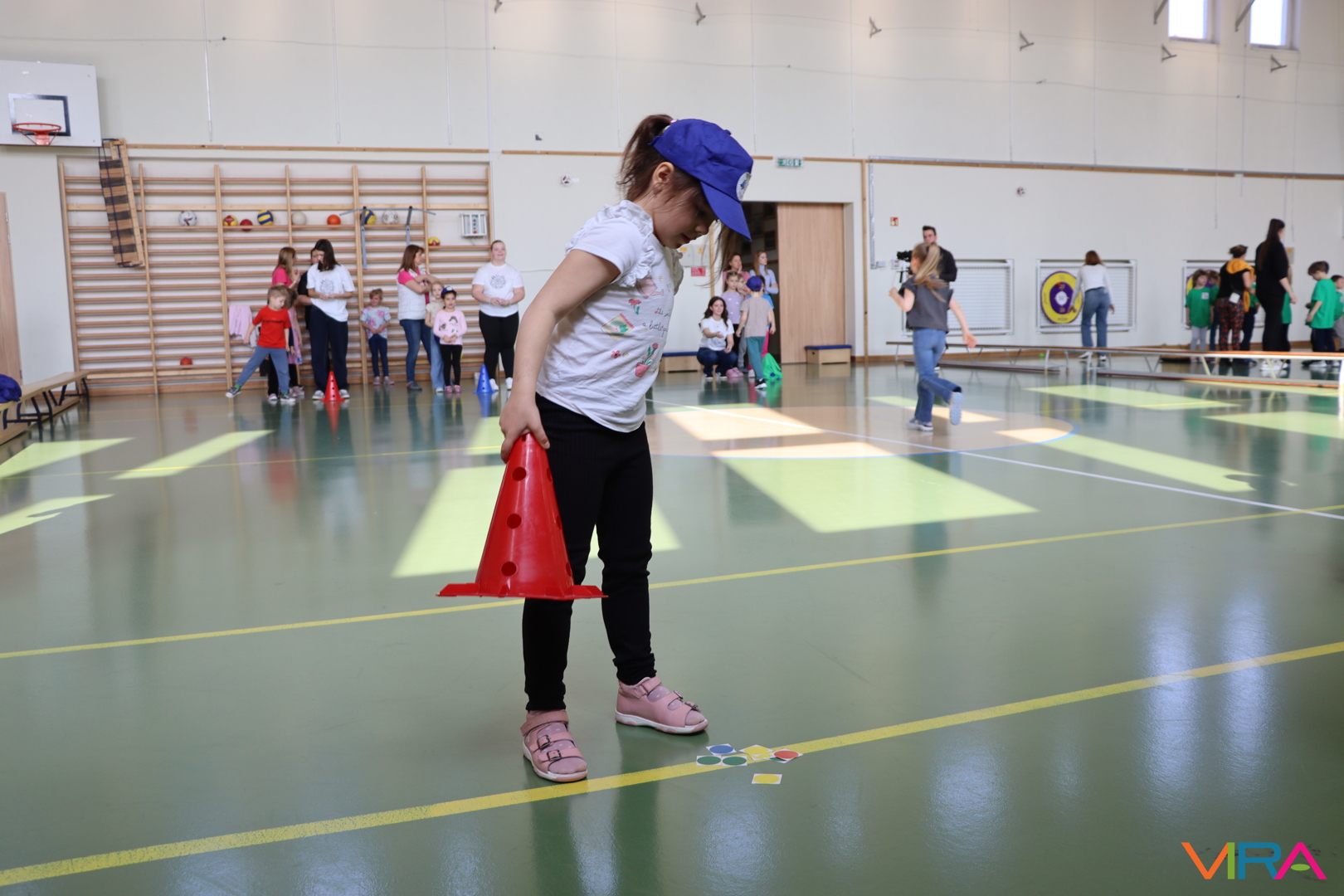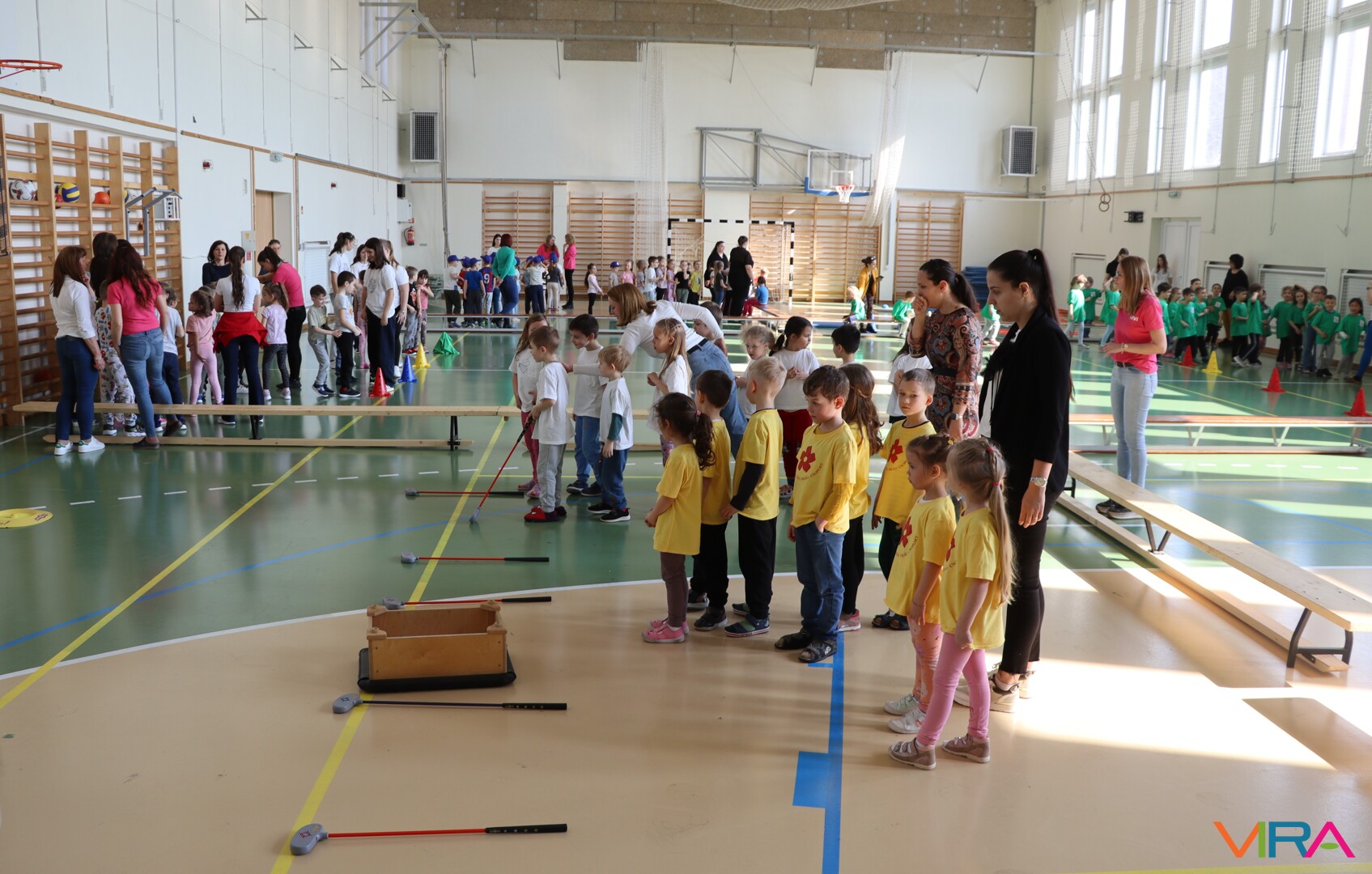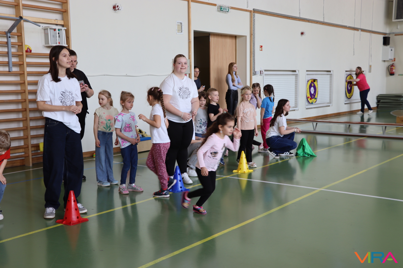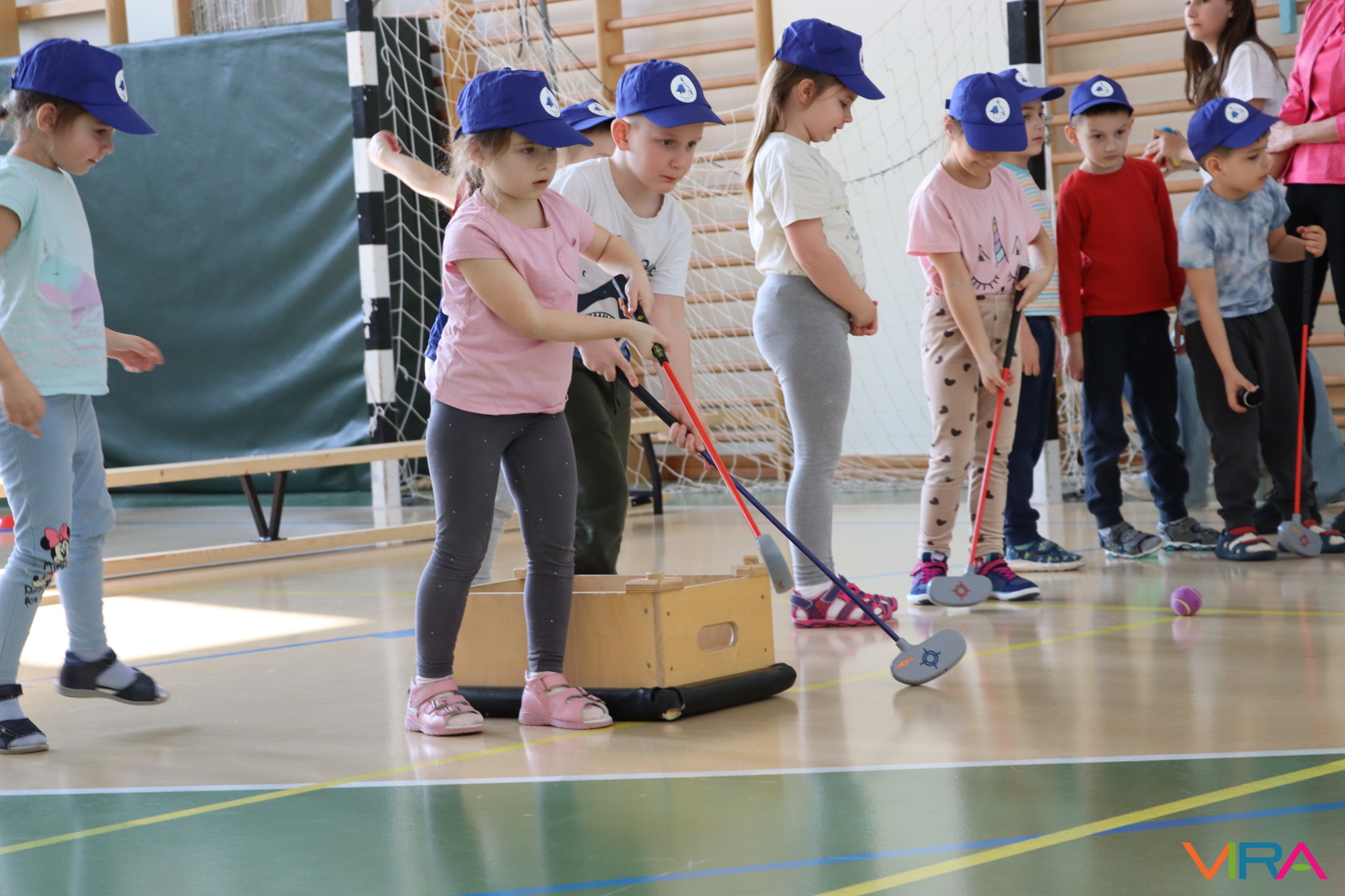 A közös, játékos bemelegítést követően a gyerekek birtokba vették a tornatermet, ahol öt állomáson próbálhatták ki ügyességüket. A feladatok között szerepelt célba dobás, ügyességi és szlalom feladatok, egyensúlyozás, valamint golfozás, így a gyermekek minden állomáson más-más ügyességüket és mozgáskészségüket csillanthatták meg. A változatos akadálypályák elsősorban a mozgás örömét és a sikerélményt helyezték előtérbe. A sorverseny lebonyolításáról és a feladatok összeállításáról Pálinkás-Kolonusz Lili gondoskodott.