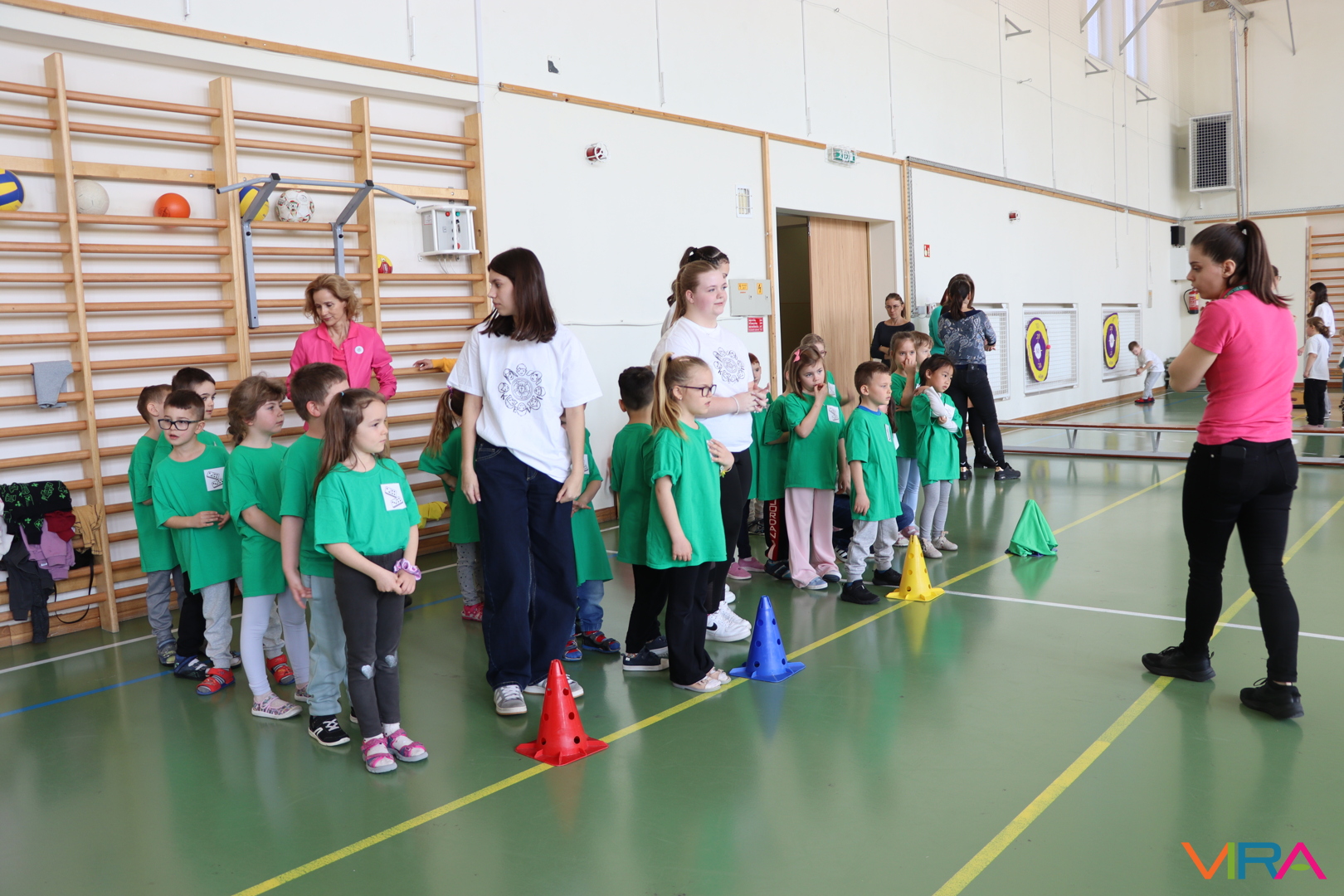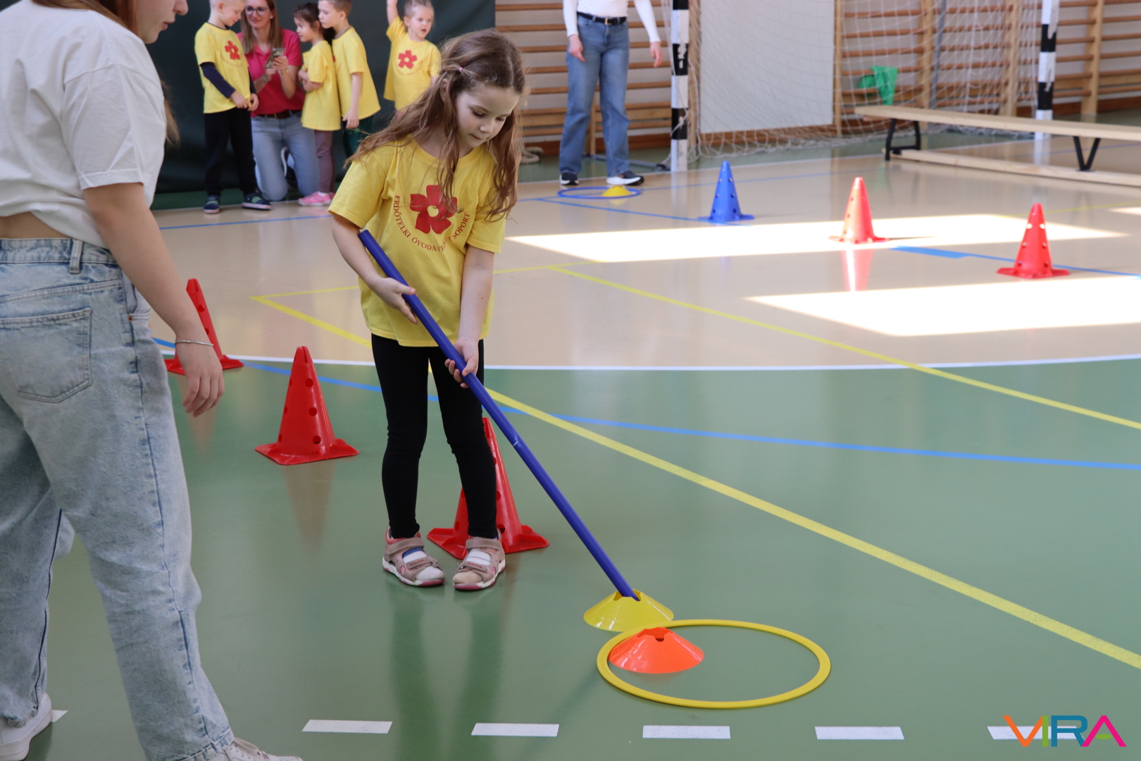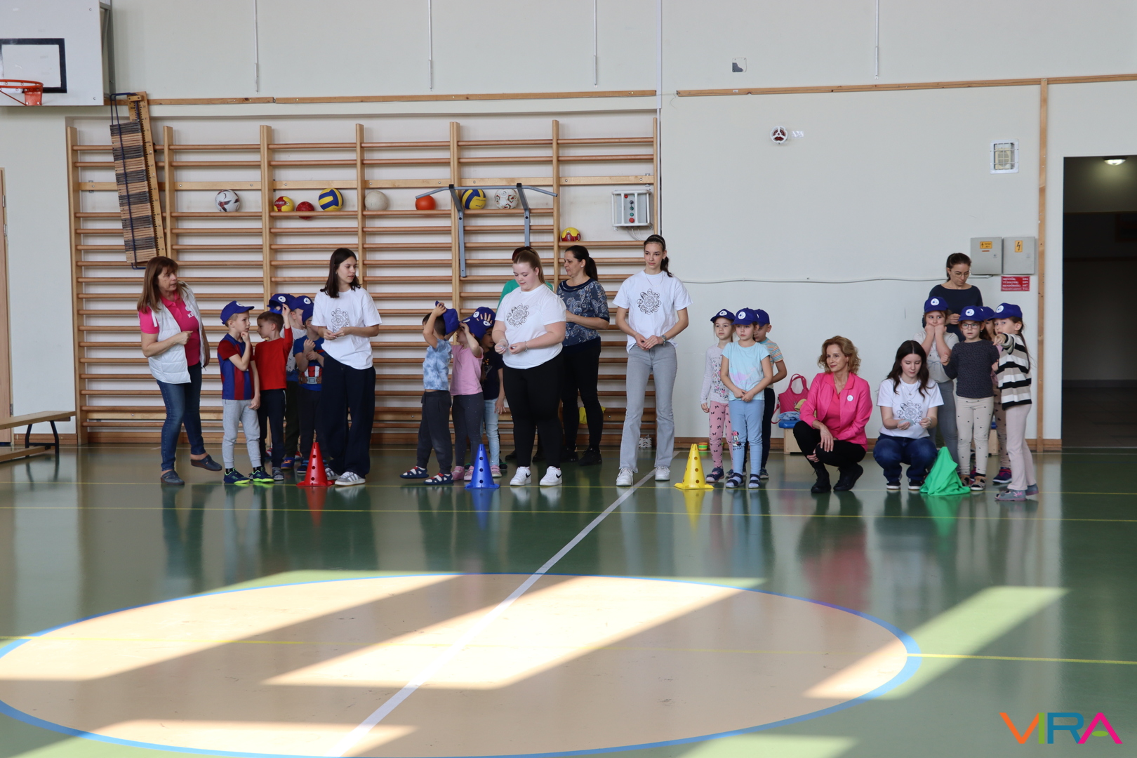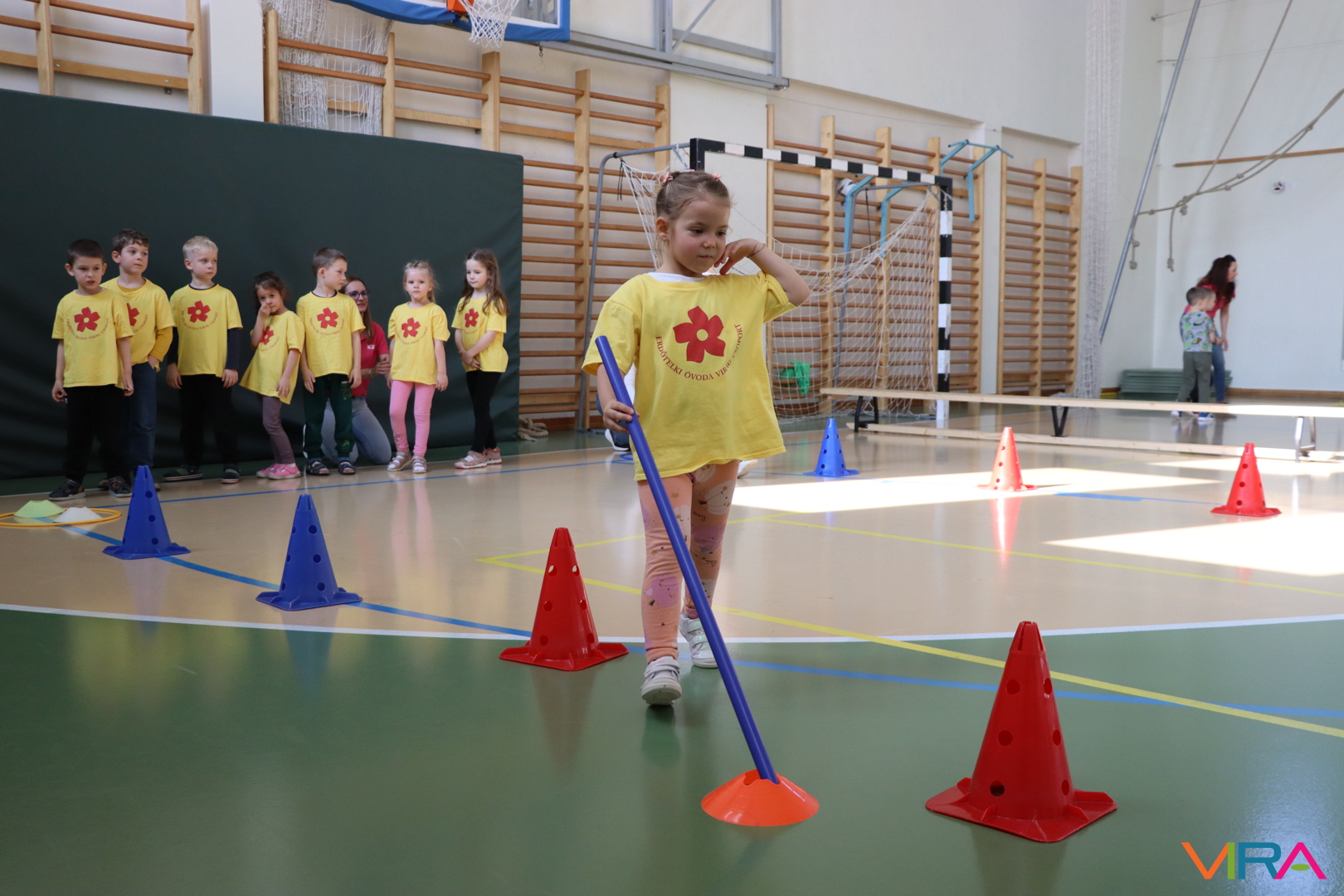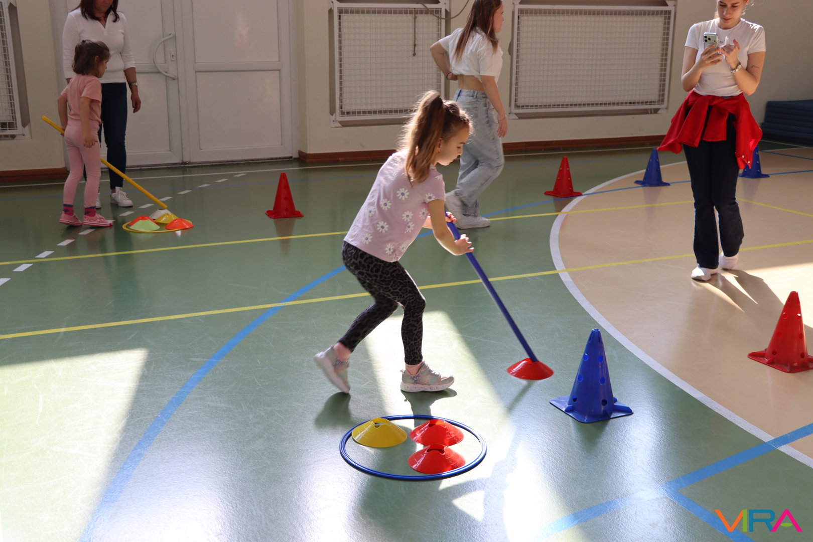 A közös, játékos bemelegítést követően a gyerekek birtokba vették a tornatermet, ahol öt állomáson próbálhatták ki ügyességüket. A feladatok között szerepelt célba dobás, ügyességi és szlalom feladatok, egyensúlyozás, valamint golfozás, így a gyermekek minden állomáson más-más ügyességüket és mozgáskészségüket csillanthatták meg. A változatos akadálypályák elsősorban a mozgás örömét és a sikerélményt helyezték előtérbe. A sorverseny lebonyolításáról és a feladatok összeállításáról Pálinkás-Kolonusz Lili gondoskodott.