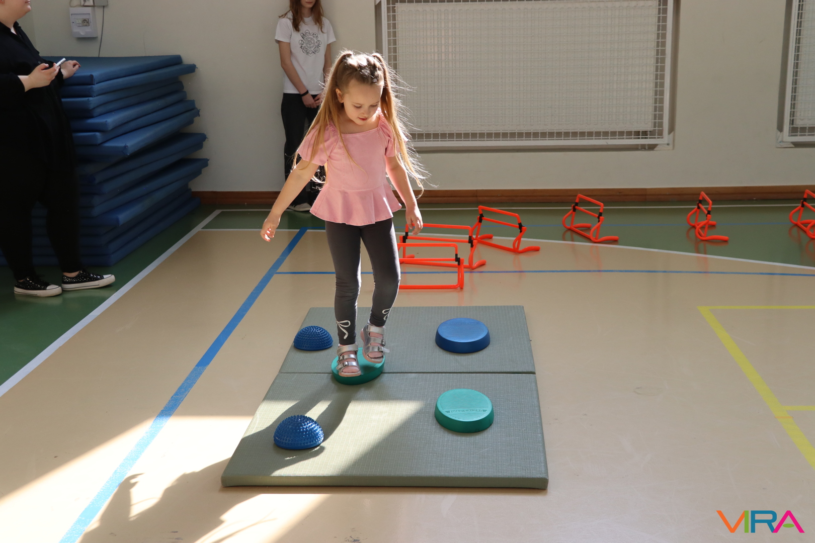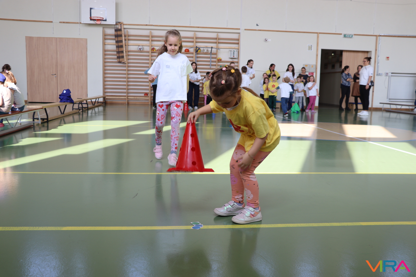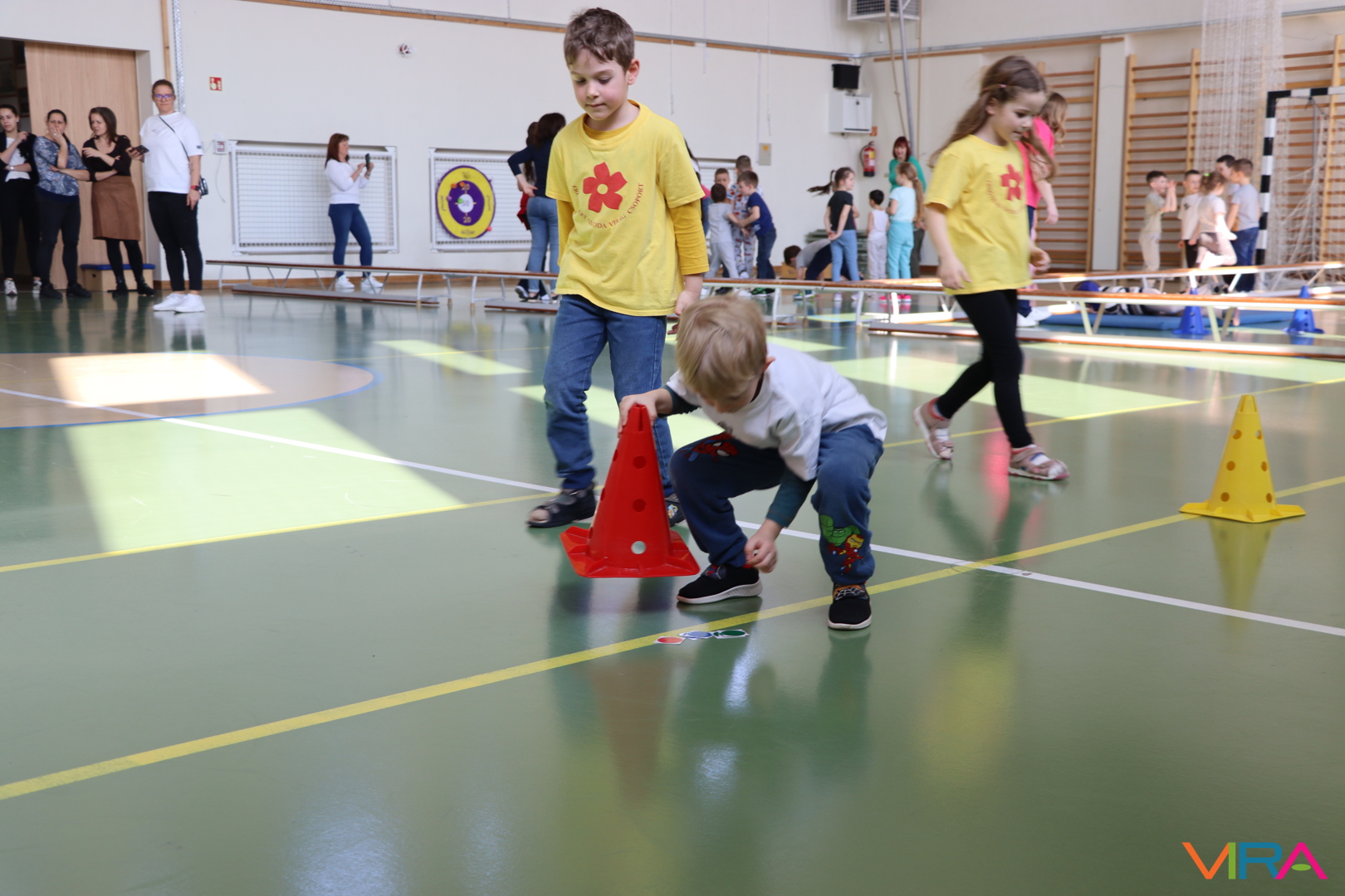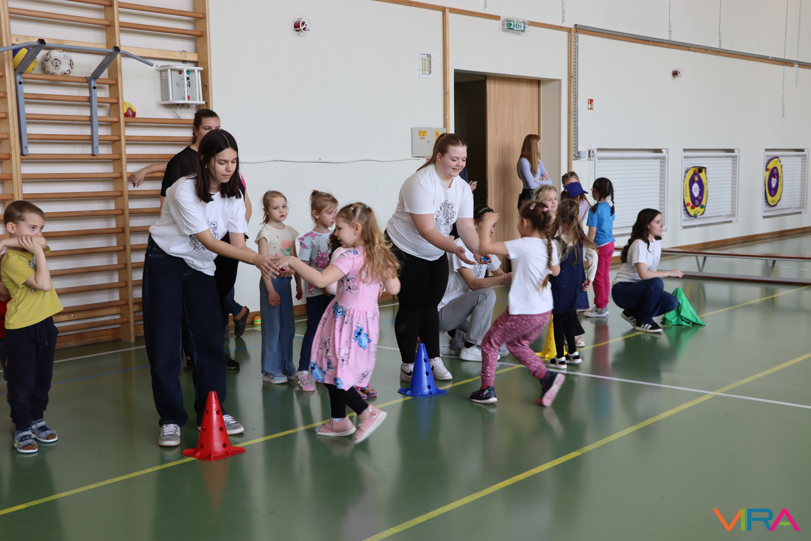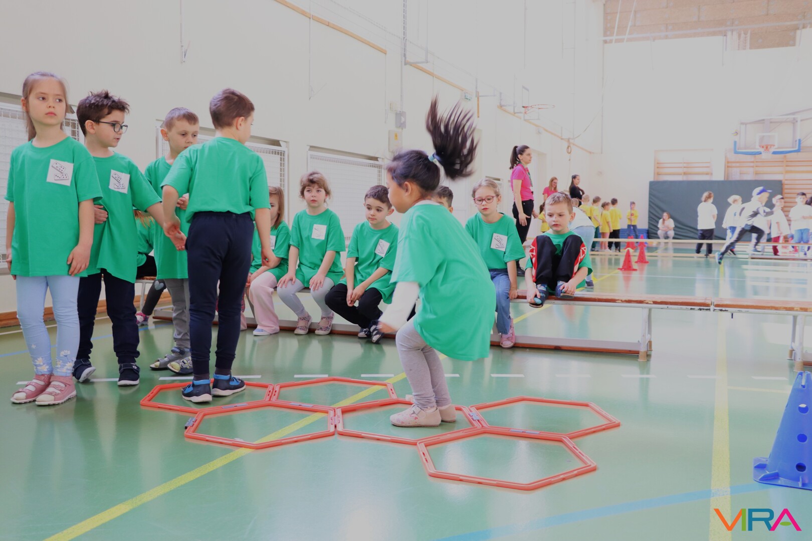 A közös, játékos bemelegítést követően a gyerekek birtokba vették a tornatermet, ahol öt állomáson próbálhatták ki ügyességüket. A feladatok között szerepelt célba dobás, ügyességi és szlalom feladatok, egyensúlyozás, valamint golfozás, így a gyermekek minden állomáson más-más ügyességüket és mozgáskészségüket csillanthatták meg. A változatos akadálypályák elsősorban a mozgás örömét és a sikerélményt helyezték előtérbe. A sorverseny lebonyolításáról és a feladatok összeállításáról Pálinkás-Kolonusz Lili gondoskodott.