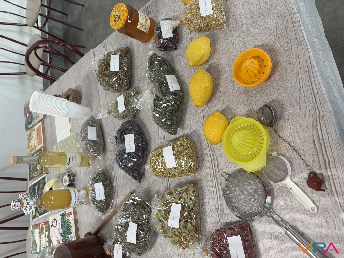 A foglalkozás során a résztvevők megfigyelhették a növények színét, formáját és illatát, majd egy igazi kis „kísérlet” következett: amikor a virágokat leforrázták, a teák különböző színekben pompáztak, és amikor citrom került bele, újabb színváltozások jelentek meg. A gyerekek így játékos formában a természet apró „kémiai csodáival” is találkozhattak.