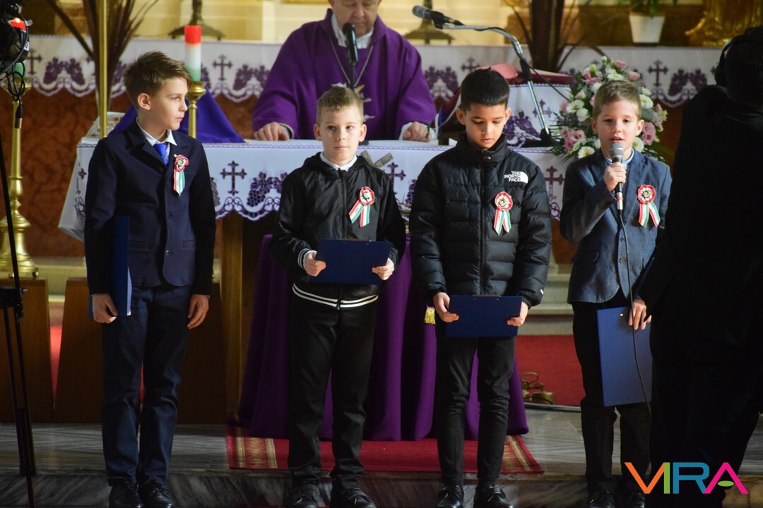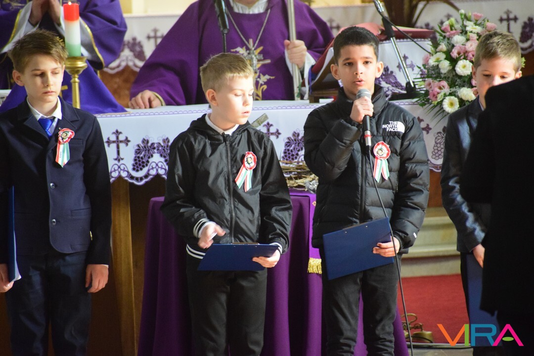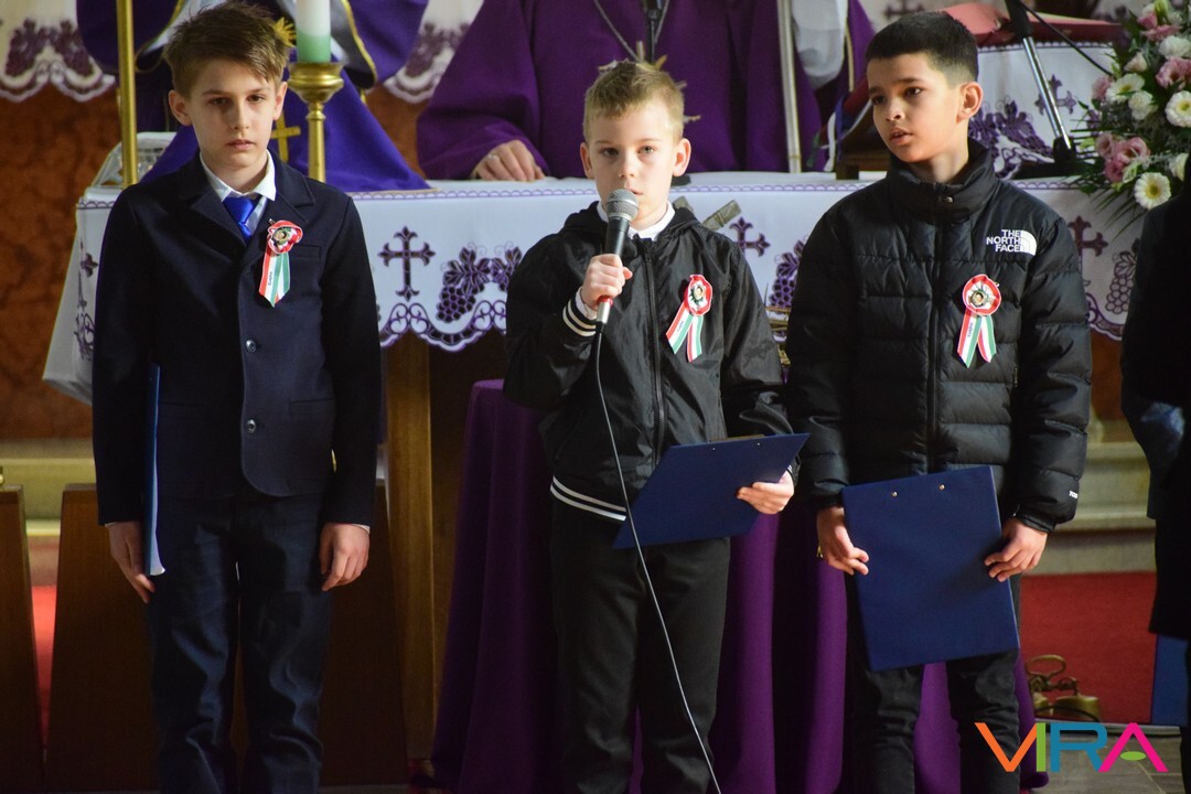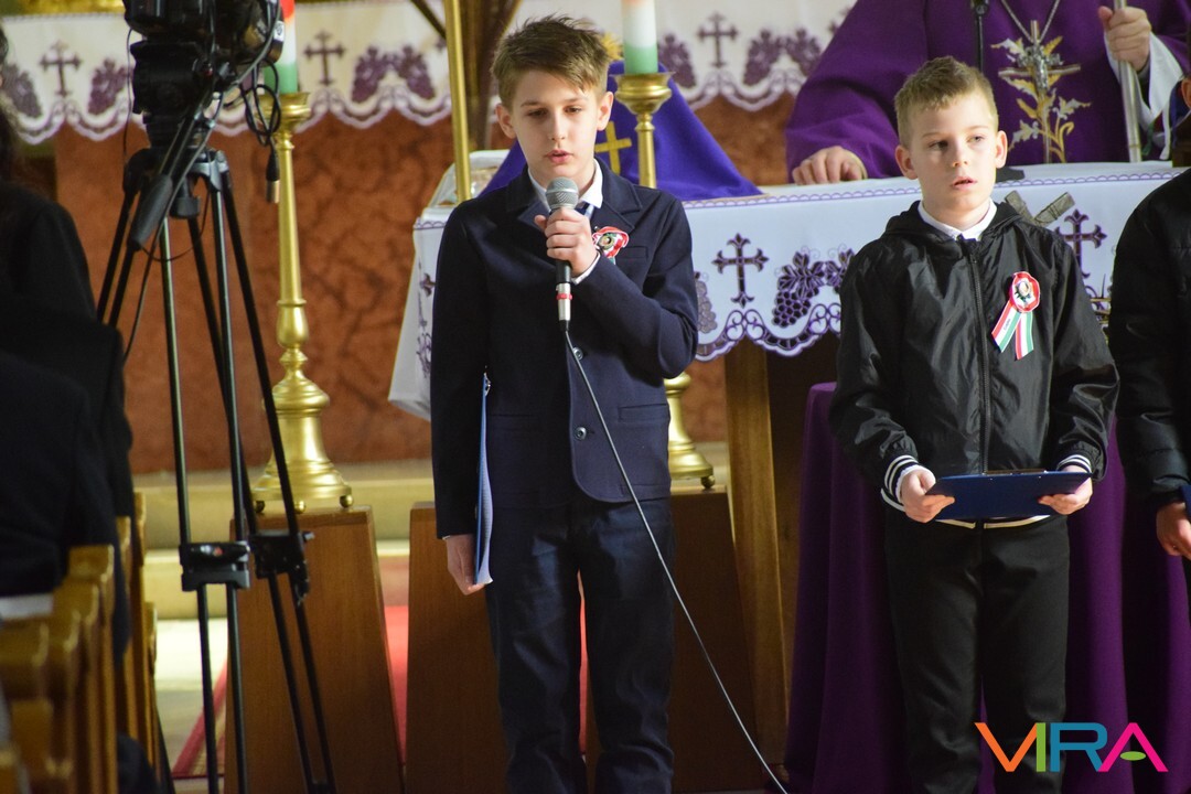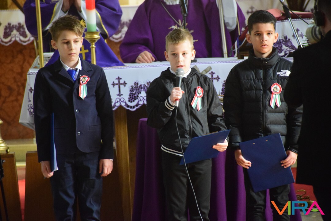 Ezt követően a Szent József Katolikus Templomban Dr. Bábel Balázs a Kalocsa-Kecskeméti Főegyházmegye érseke mutatott be szentmisét. Melynek végén a helyi hittanosok készültek március 15-e alkalmából versekkel, illetve Domonyi László polgármester és Tóth Tibor plébános ajándékkal is megköszönte Érsek Úrnak, hogy március 15-én Kiskőrösre látogatott.