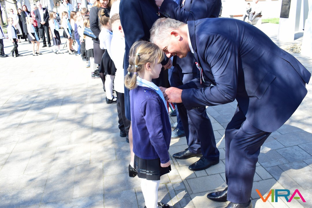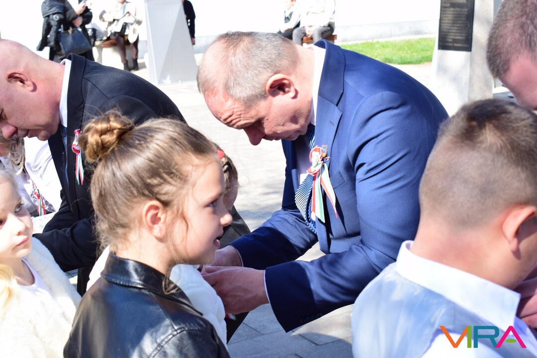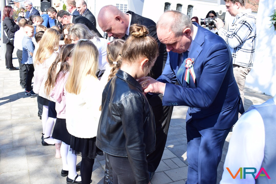 Az események ezt követően már a Petőfi Szülőház és Emlékmúzeum előtt folytatódtak, ahol a város első osztályos tanulóinak mellkasukra kokárdát tűztek az önkormányzati képviselők. Ez egy egyedi készítésű kokárda, melyen szerepel a Kiskőrös felírat és Petőfi Sándor arcképe. Idén 192 első osztályos diák kapta meg ezt a kereskedelmi formában nem kapható egyedi kokárdát. Az ötlet pár évvel ezelőtt Filus Tibor képviselőtől érkezett.