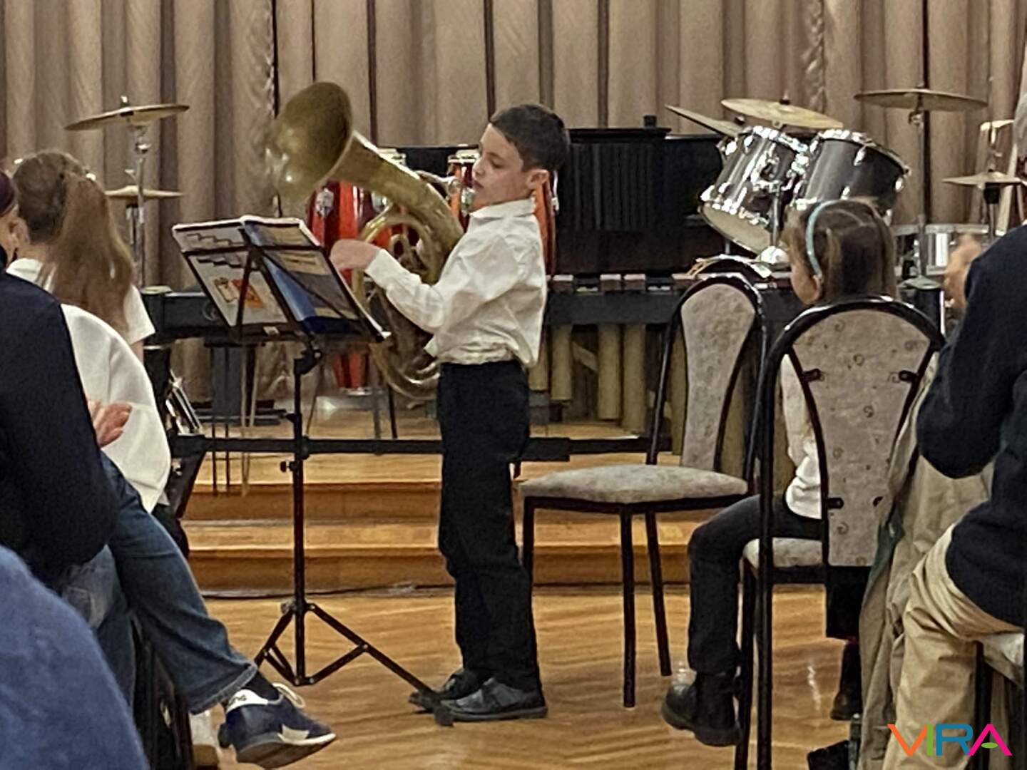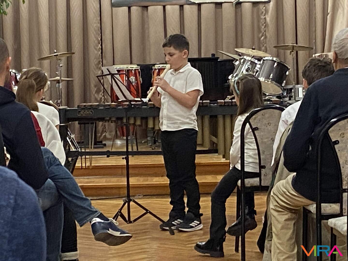 A rendezvény első felében Zohreh Ashlin növendékei léptek színpadra. A hangverseny Praetorius: Gavotte című művével kezdődött, amelyet Hodován Noel adott elő furulyán. Ezt követően Kodály Zoltán: Tábortűznél című darabja hangzott el Aradi Lea furulyajátékával. Az ABCD magyar népdalt Csengődi Ábel szólaltatta meg vadászkürtön, majd Brodszky Ferenc: Gólyanóta című művét Szabó Patrik adta elő tenorkürtön. A műsor első szakaszát Bogár István: Két régi magyar tánc című darabja zárta, amelyet Csengődi Benedek trombitán játszott el Balázs-Nagy Gabriella zongorakíséretével.