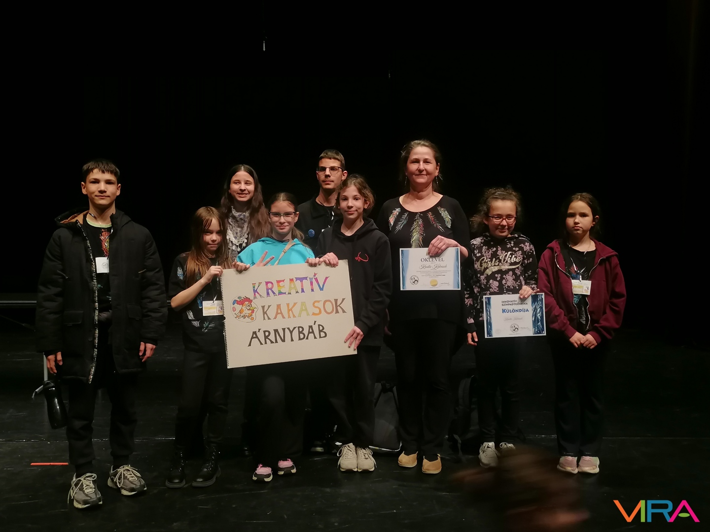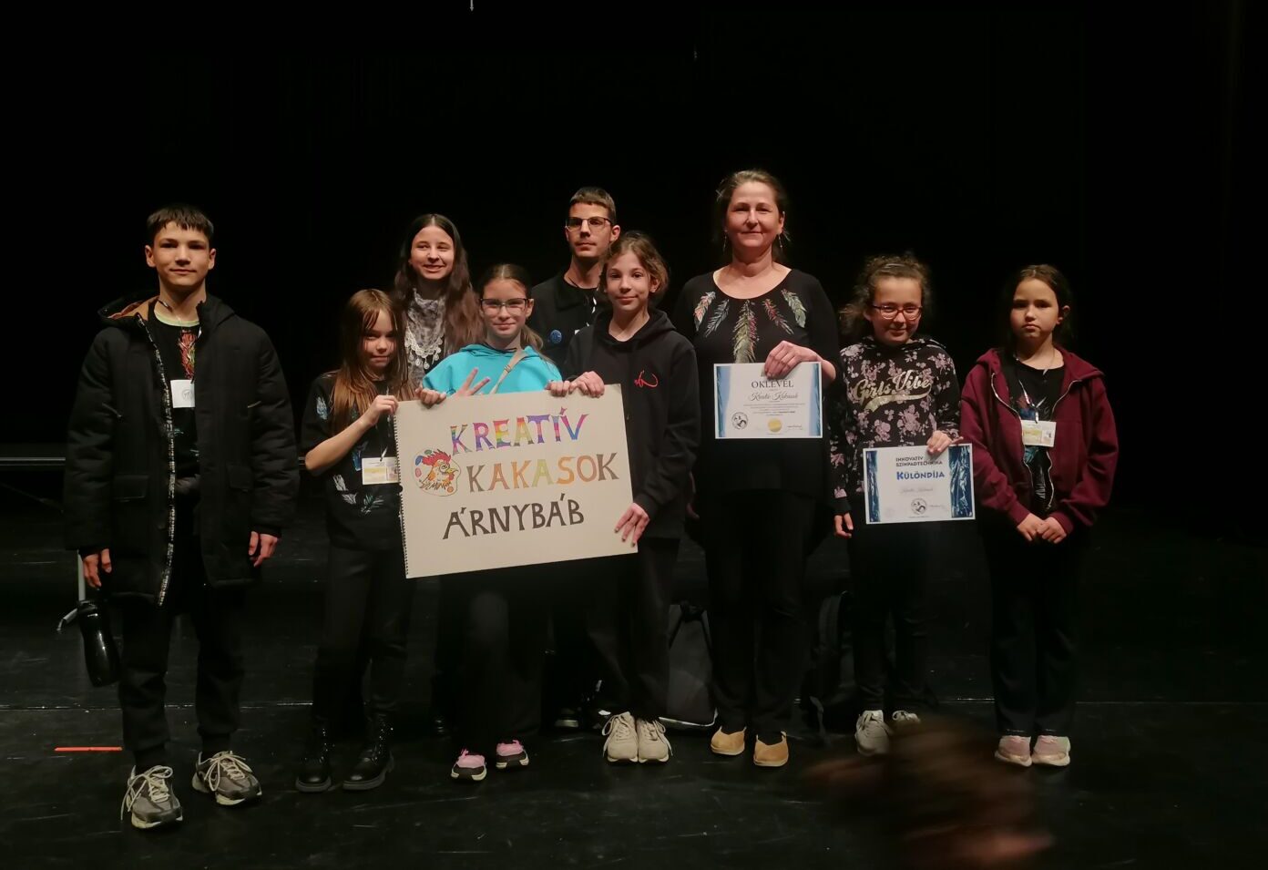 Híradó című előadásunk a 3. Bábos Gálán mutattuk be, itt a Legerőteljesebb előadás különdíját kaptuk.