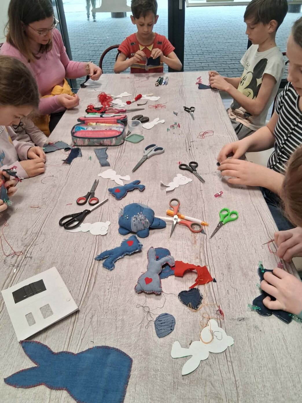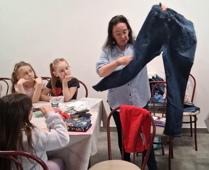 Ez az alkalom nemcsak a technikáról szólt. Fontos üzenetként jelent meg az újrahasznosítás is: a gyerekekkel közösen beszélték át, mennyi „kincs” lapulhat otthon egy-egy régi, kopott farmerben vagy már nem használt anyagdarabban. A szemléletformálás már most elkezdődött – játékosan, mégis mély tartalommal.