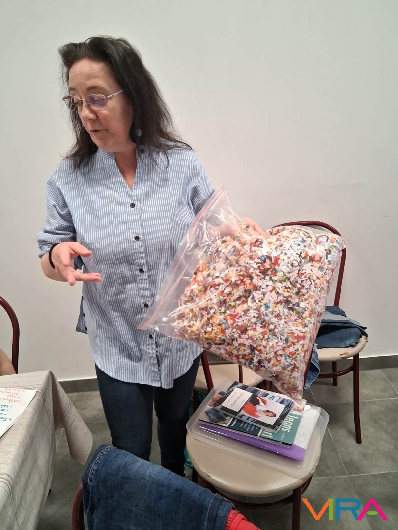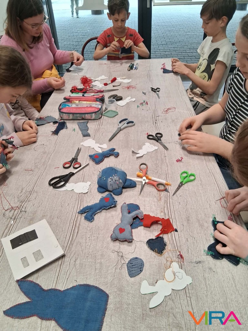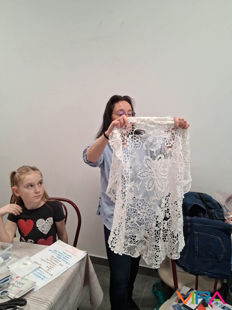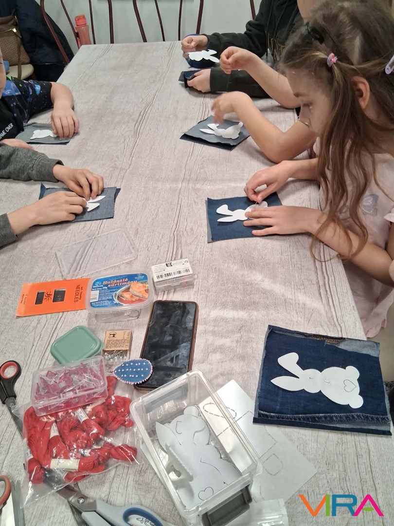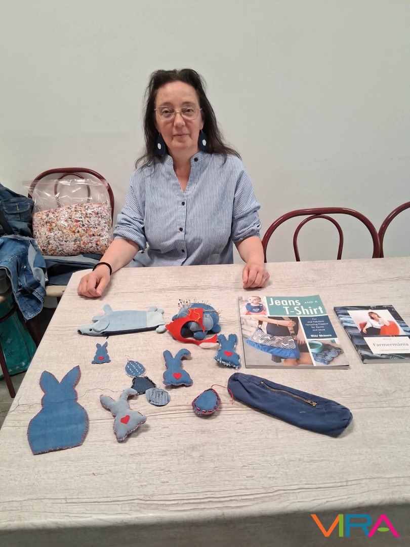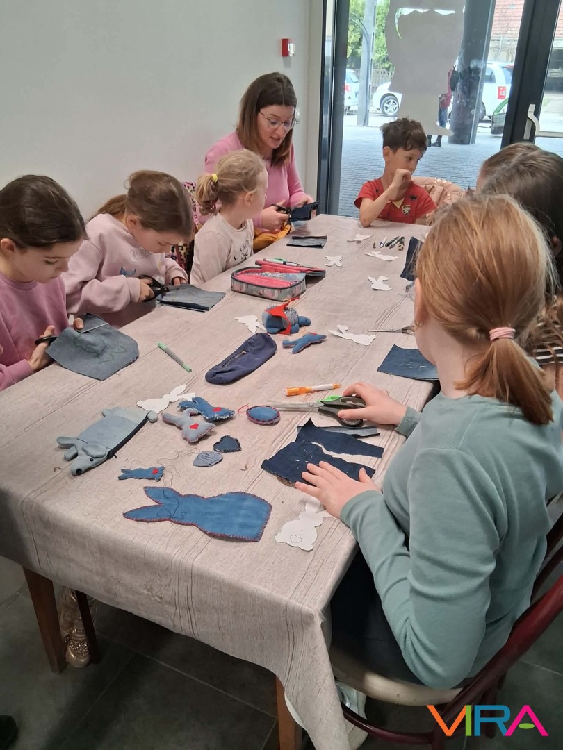 Ez az alkalom nemcsak a technikáról szólt. Fontos üzenetként jelent meg az újrahasznosítás is: a gyerekekkel közösen beszélték át, mennyi „kincs” lapulhat otthon egy-egy régi, kopott farmerben vagy már nem használt anyagdarabban. A szemléletformálás már most elkezdődött – játékosan, mégis mély tartalommal.