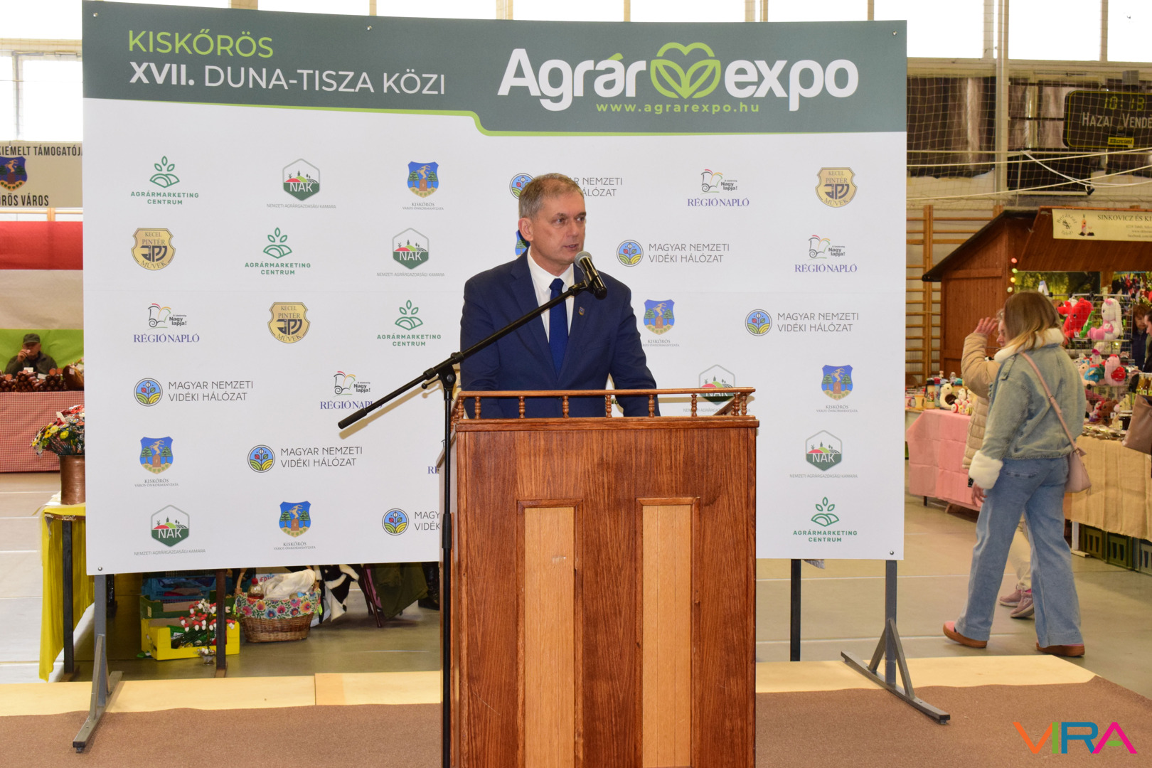 Domonyi László, Kiskőrös város polgármestere megnyitó beszédéden agrár seregszemlének nevezete az eseményt. Kitért arra is, hogy annak idején mikor kitalálták az eseményt Font Sándor és Nagy Tamás társaságában, nem gondolták volna, hogy tizenhét év után is itt fognak állni. Nagyon jó dolognak és trendnek tartja a város első embere, hogy évről-évre egyre többen és többen jelentkeznek, hogy szeretnék termékeiket bemutatni és kínálni az expon. Beszéde végén arra kérte az embereket, hogy támogassák a Magyar mezőgazdaságot, gazdákat, termelőket, és ne engedjék, hogy kiszorítsák őket a mi piacunkról.