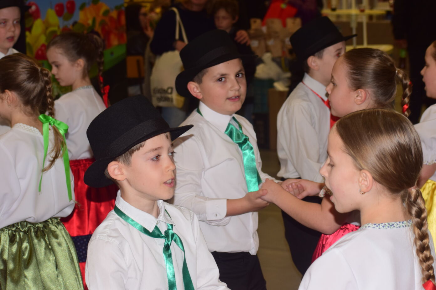 A szombati napon 13 órakor léptek fel a KEVI Petőfi Sándor Általános Iskola néptáncosai, először a 3.b osztály vette birtokba a képzeletbeli színpadot, akik német nemzetiségi nyelvet is tanulnak. Műsorukban sváb életképeket mutattak be, néptánccal fűszerezve. Felkészítő pedagógusok voltak: Trepákné Kriskó Eszter és Farkasné Gombár Ildikó.