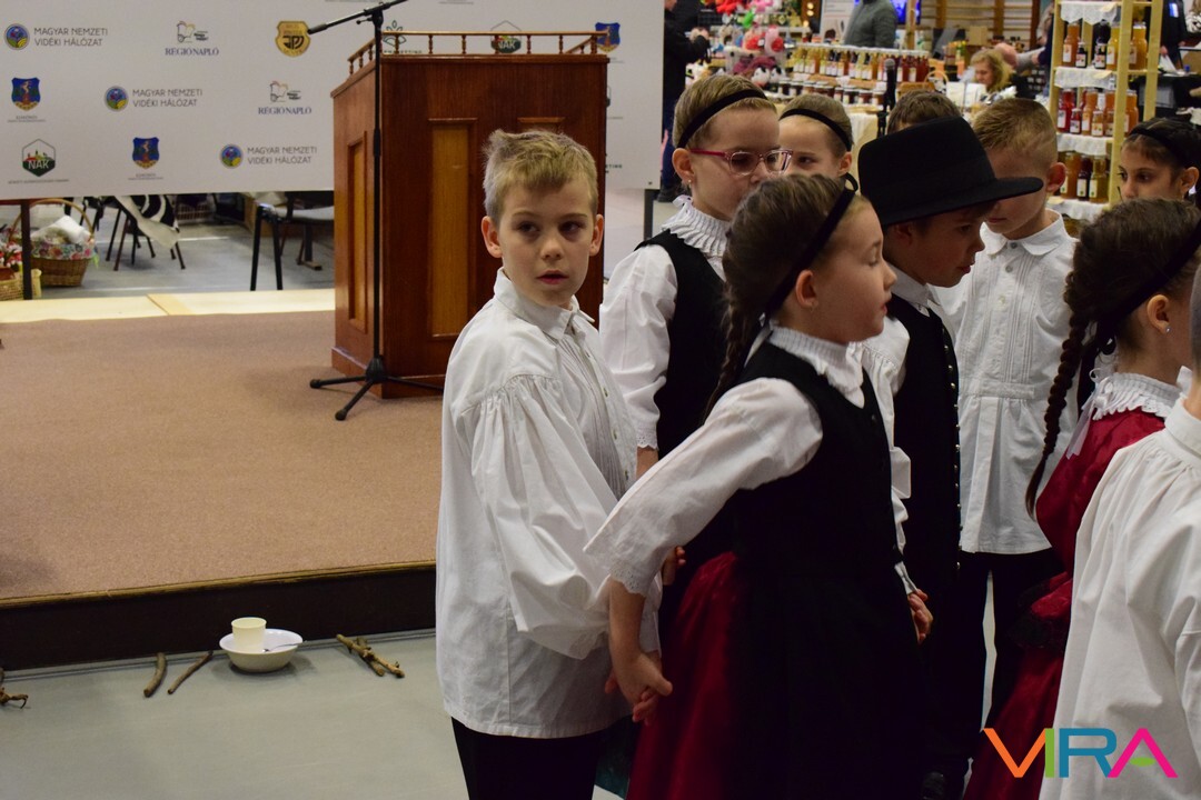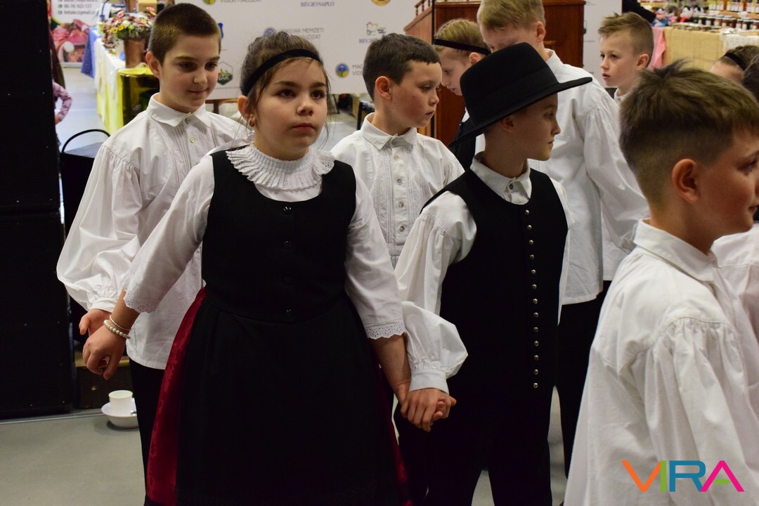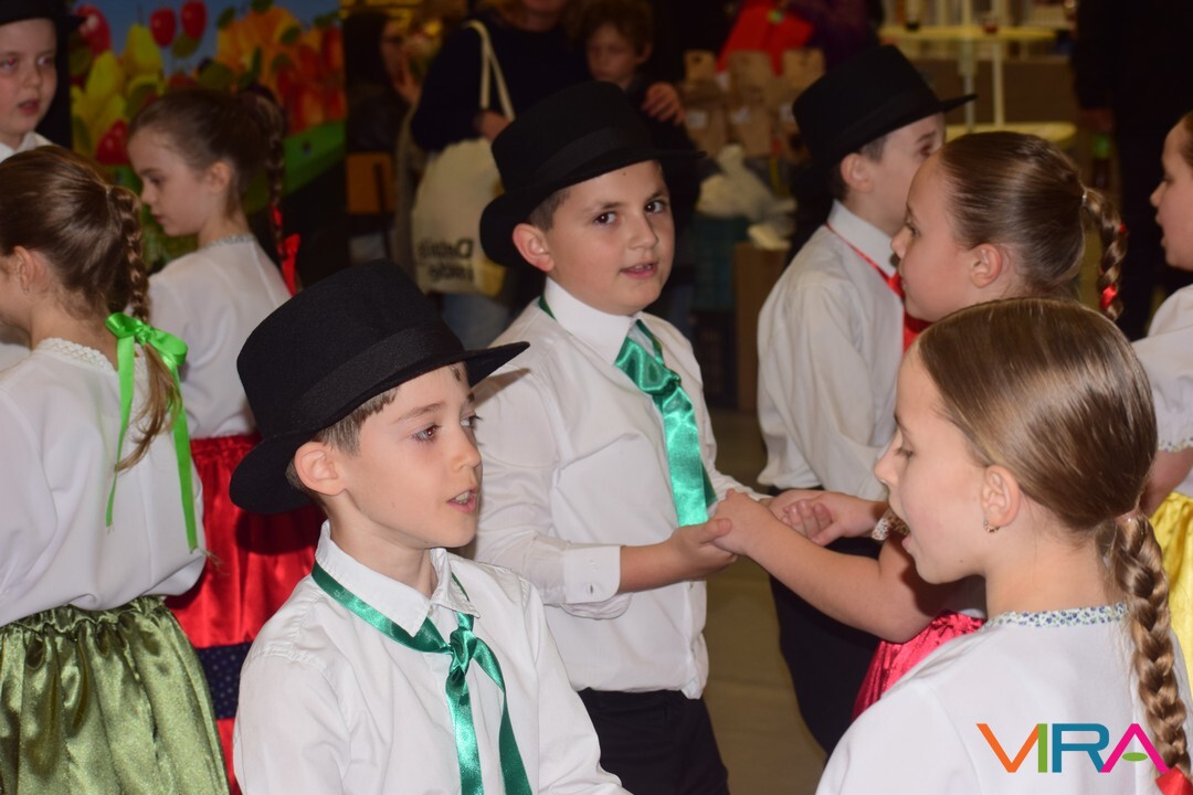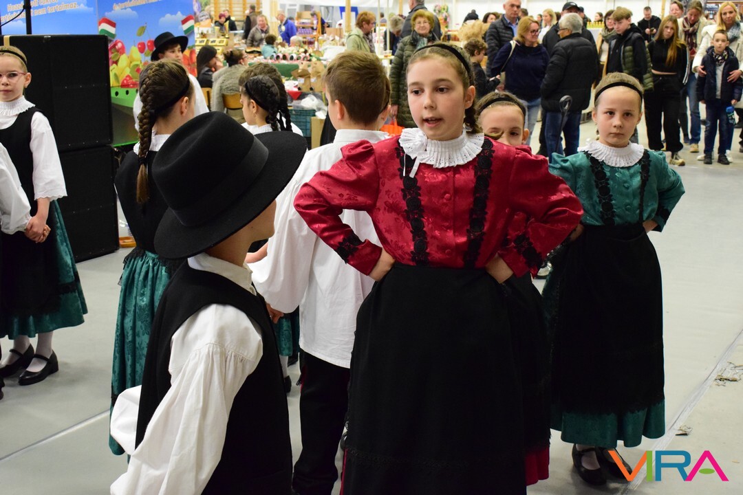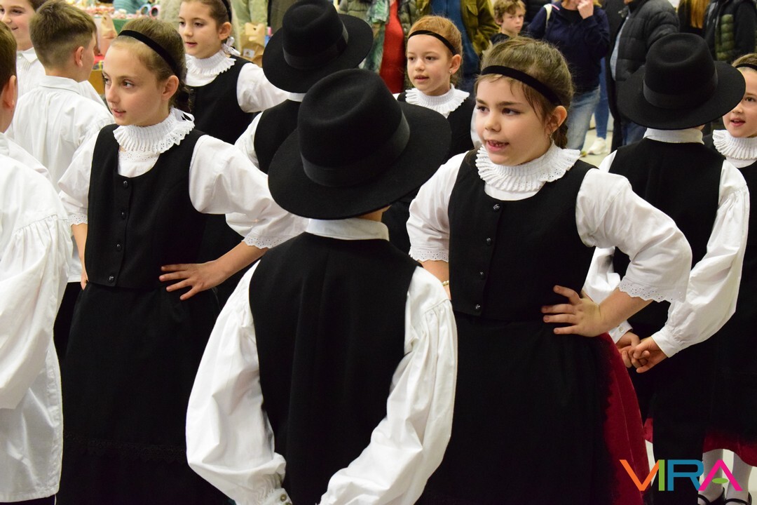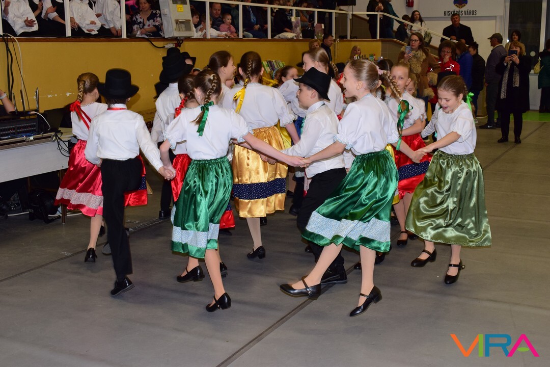 A szombati napon 13 órakor léptek fel a KEVI Petőfi Sándor Általános Iskola néptáncosai, először a 3.b osztály vette birtokba a képzeletbeli színpadot, akik német nemzetiségi nyelvet is tanulnak. Műsorukban sváb életképeket mutattak be, néptánccal fűszerezve. Felkészítő pedagógusok voltak: Trepákné Kriskó Eszter és Farkasné Gombár Ildikó.