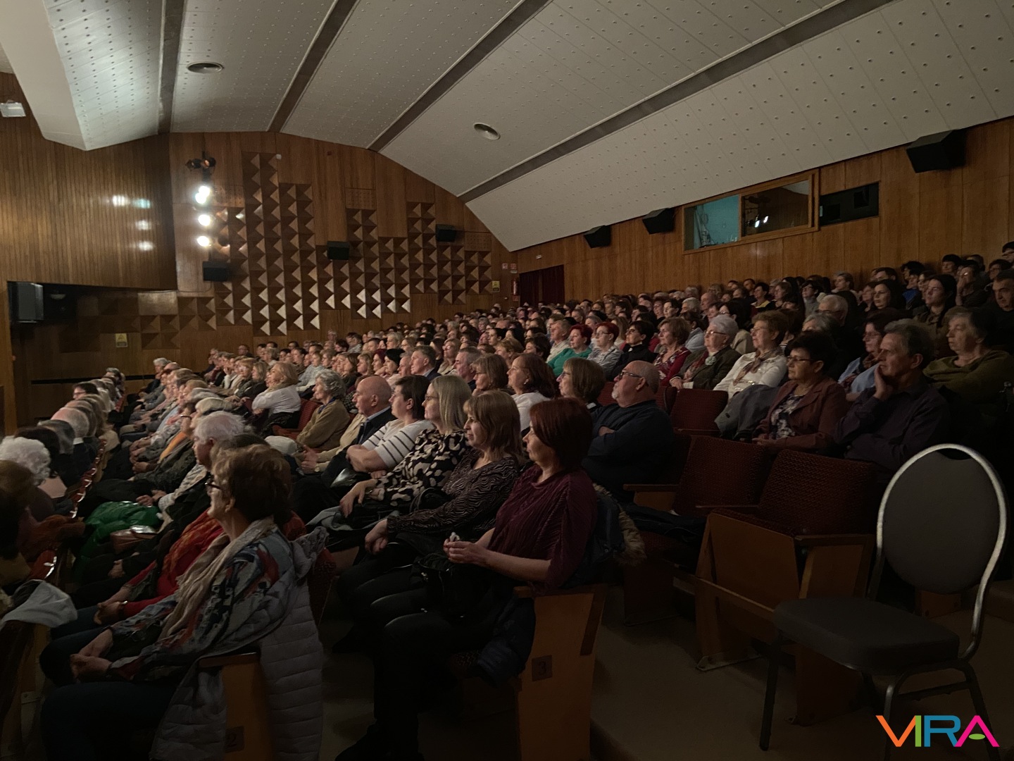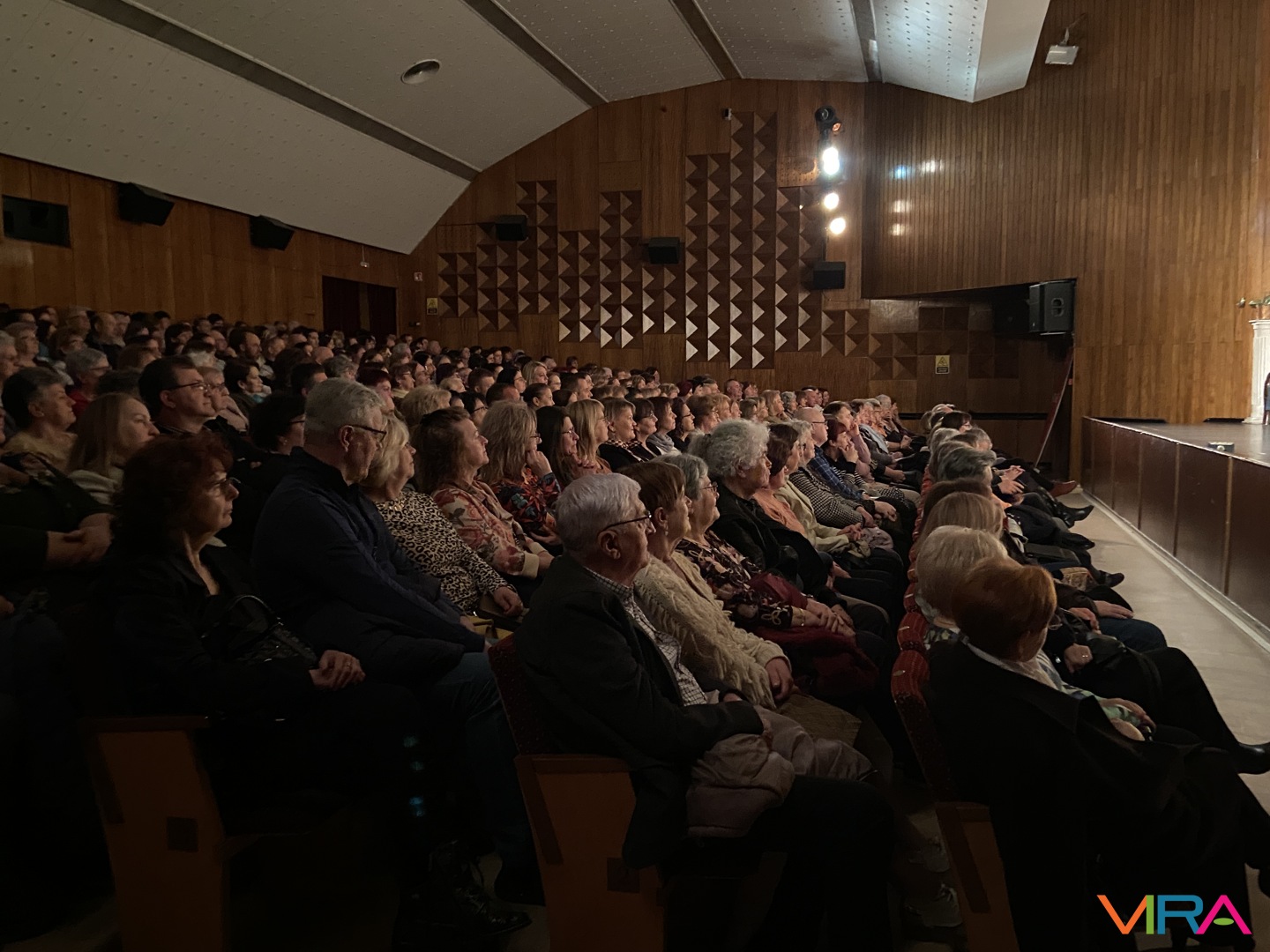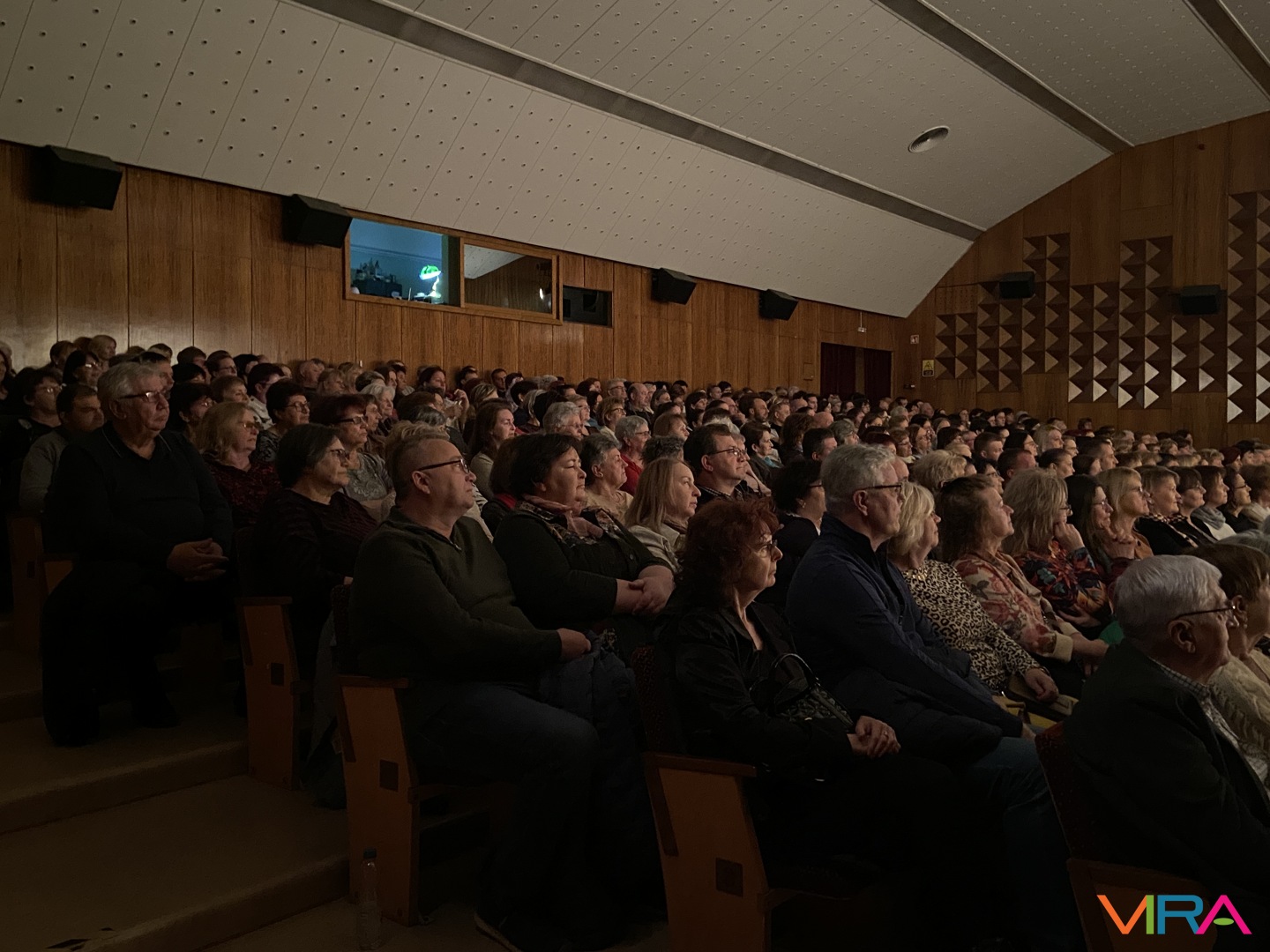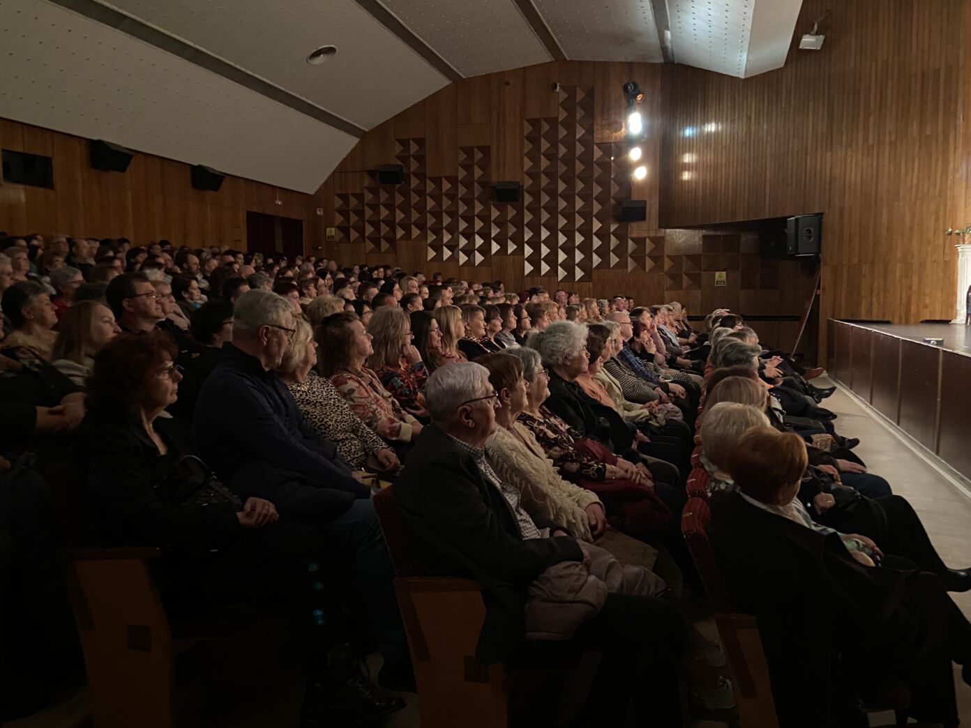 A közönség végig figyelemmel kísérte az előadást, a jelenetek során a humoros szituációk rendszeresen nevetést váltottak ki, a párbeszédek pedig folyamatosan fenntartották a figyelmet. Az előadás hangulata kiegyensúlyozott maradt, a közönség reakciói – taps és nevetés – visszatérően kísérték a jeleneteket.