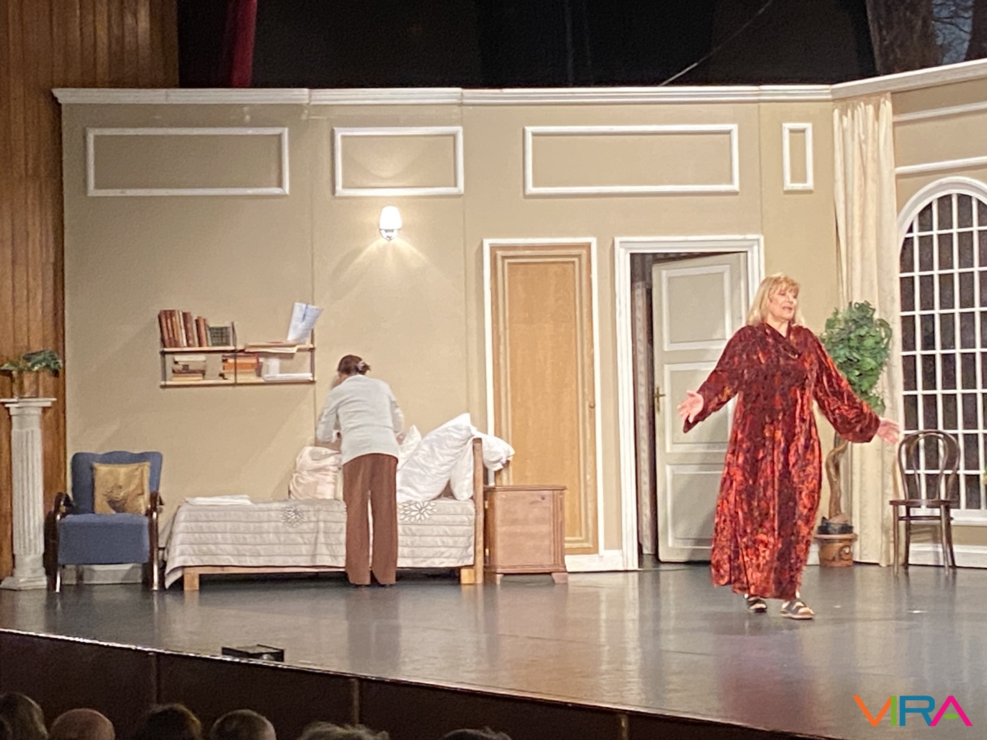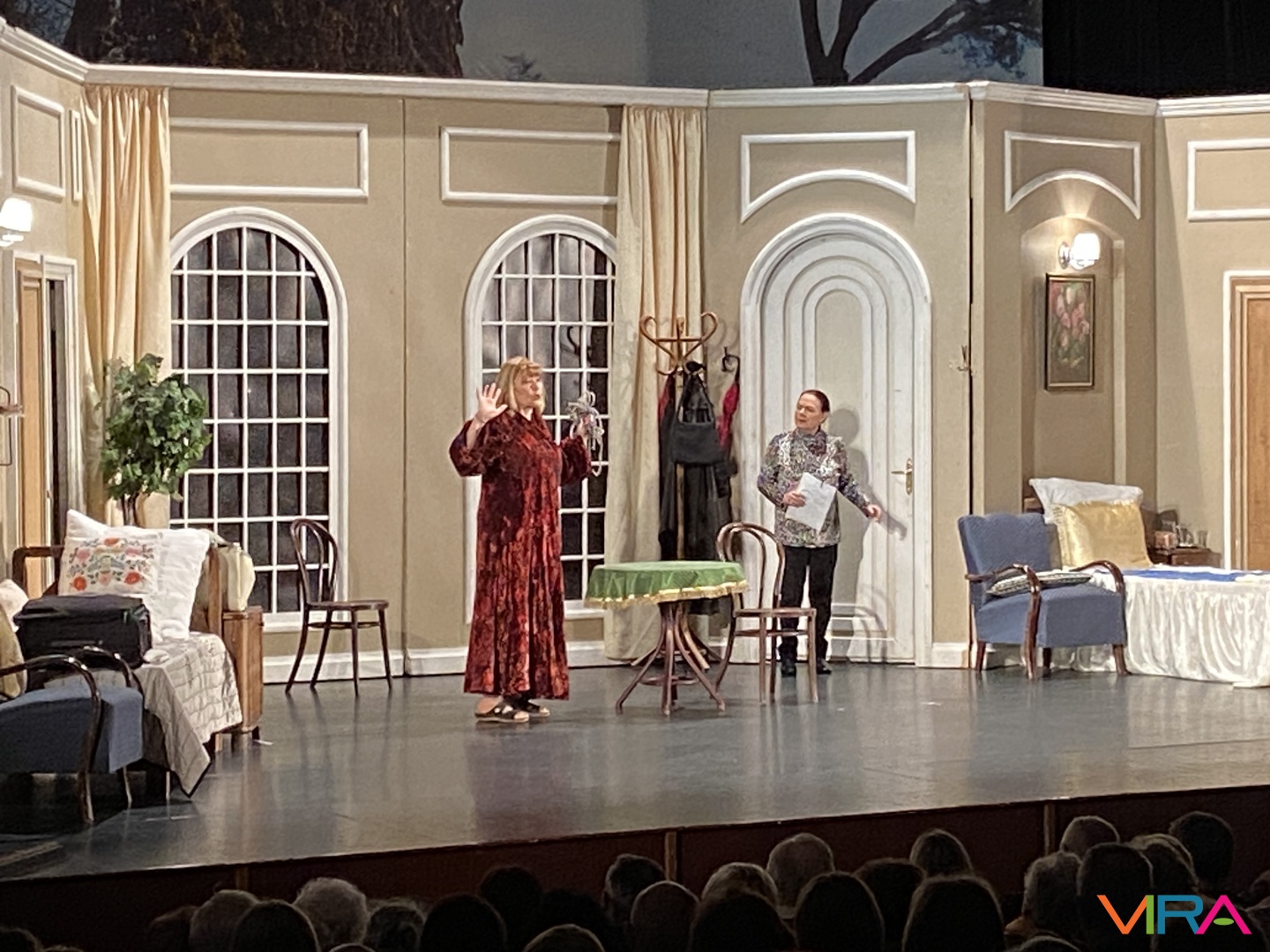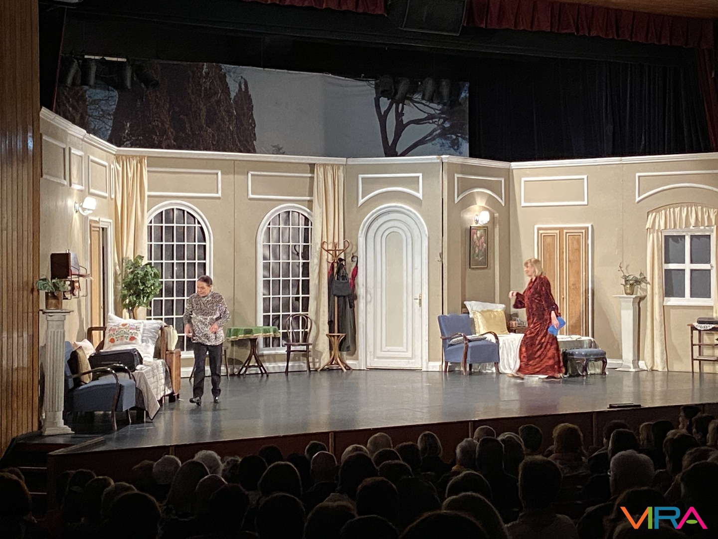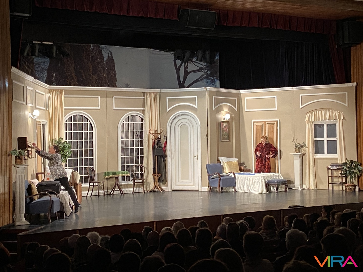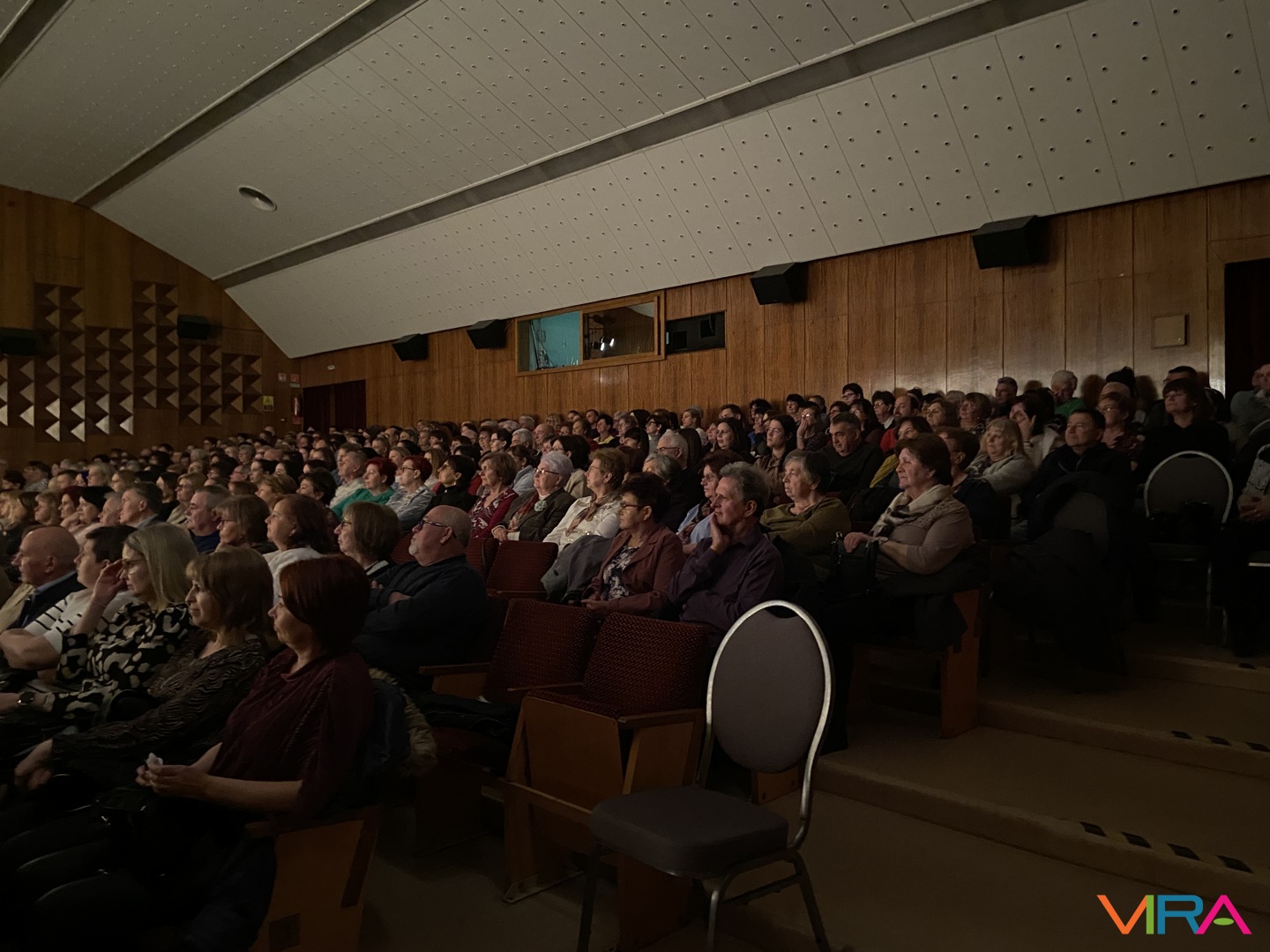 A közönség végig figyelemmel kísérte az előadást, a jelenetek során a humoros szituációk rendszeresen nevetést váltottak ki, a párbeszédek pedig folyamatosan fenntartották a figyelmet. Az előadás hangulata kiegyensúlyozott maradt, a közönség reakciói – taps és nevetés – visszatérően kísérték a jeleneteket.
