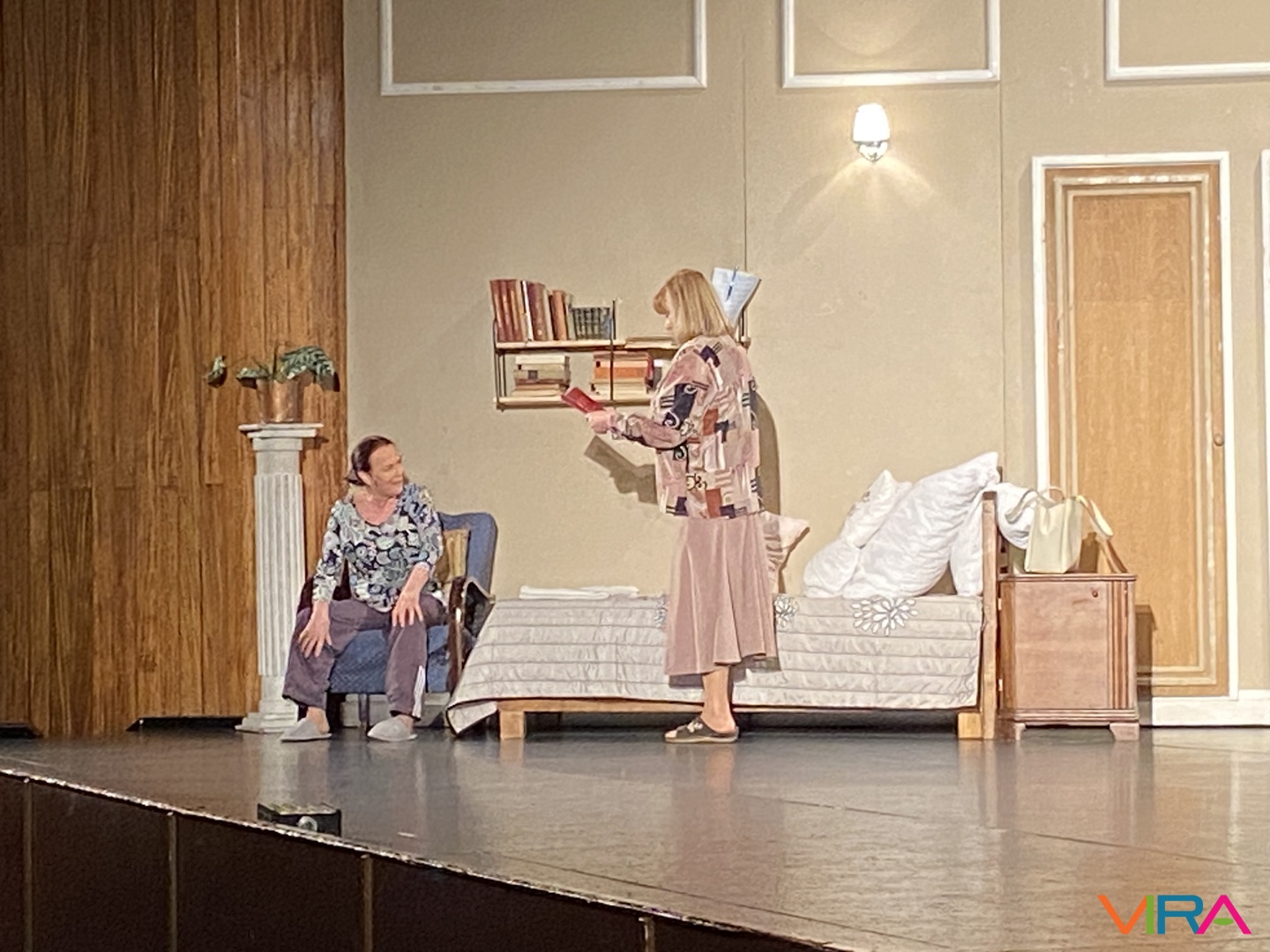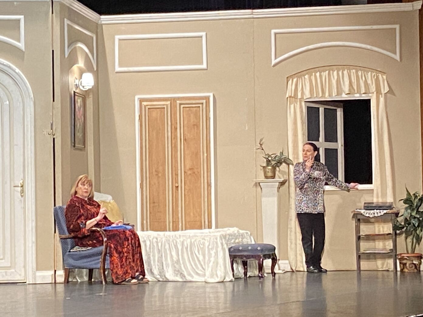 A darabban két ismert színművész lépett színpadra. Bencze Ilona, Érdemes Művész és Jászai Mari-díjas színésznő, valamint Hűvösvölgyi Ildikó, Kossuth-díjas színésznő alakítása határozta meg az előadás karakterét. Játékuk során a két eltérő személyiség közötti dinamika egyértelműen kirajzolódott, a jelenetek ritmusát pedig pontosan felépített párbeszédek és szituációk határozták meg.