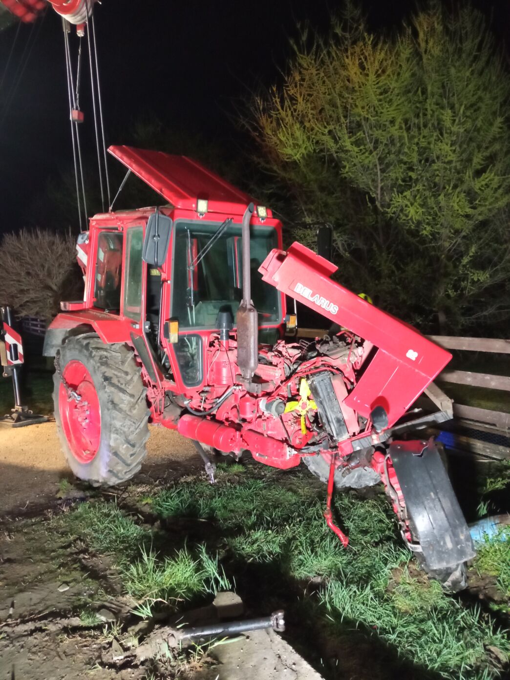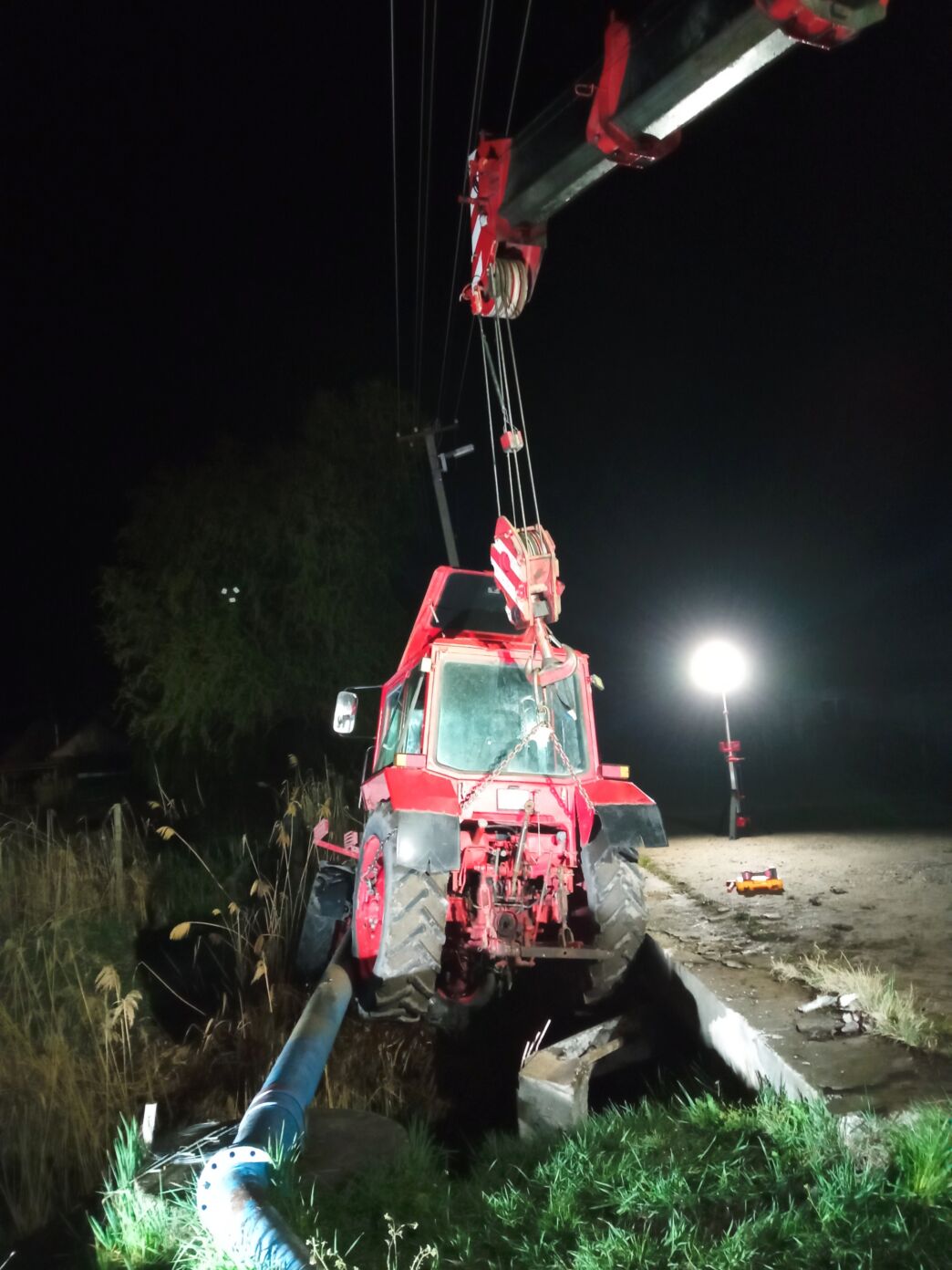 Letért a csatorna felett húzódó útról és fennakadt egy csővezetéken egy traktor kedden délután Soltszentimrén, a Dózsa György utcában. A szabadszállási önkormányzati és a kiskőrösi hivatásos tűzoltók a jármű sofőrjét feszítővágó segítségével kiemelték a traktor fülkéjéből, majd átadták a mentőknek, ám az életét már nem lehetett megmenteni. A helyszínre riasztott fővárosi tűzoltódaruval emelték le a traktort.