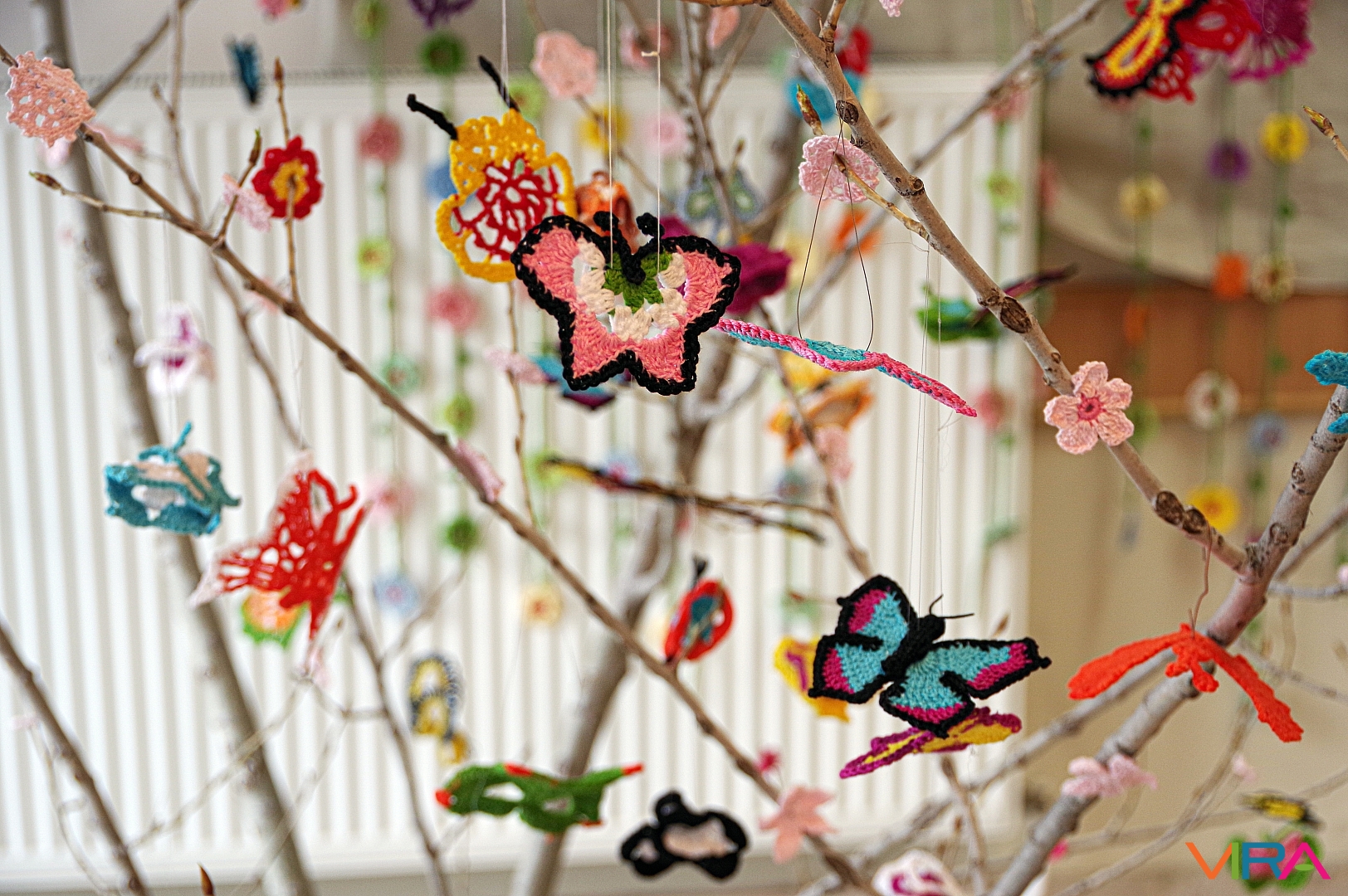 A húsvétra készülve korábban már horgoltak nyuszit és tojást is, most pedig úgy gondolták, hogy pillangókat készítenek. A horgolókör 22 tagja heti egy alkalommal találkozik rendszeresen a művelődési központban és közel két hónapot dolgozott a figurák elkészítésével.