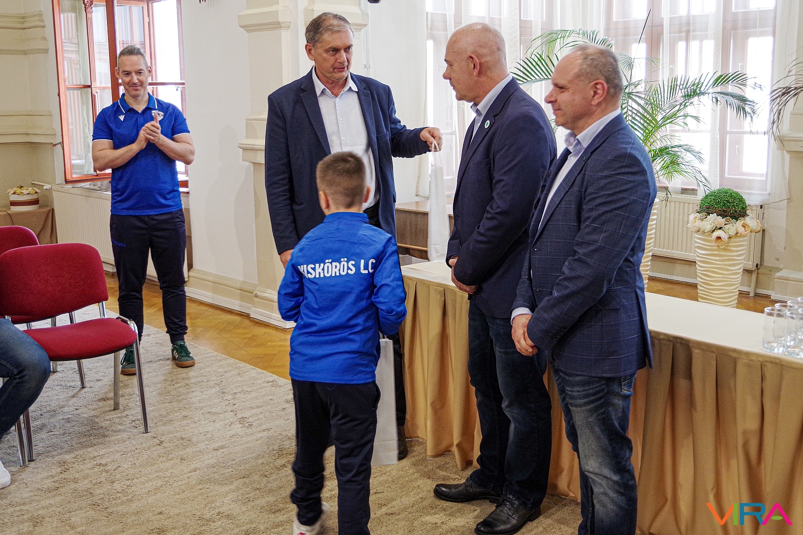 A szép sikert elért csapat tagjait, edzőit és a szülőket fogadta a városháza dísztermében Domonyi László polgármester, Szedmák Tamás a Kulturális, Turisztikai és Sport Bizottság elnöke, valamint Filus Tibor képviselő.