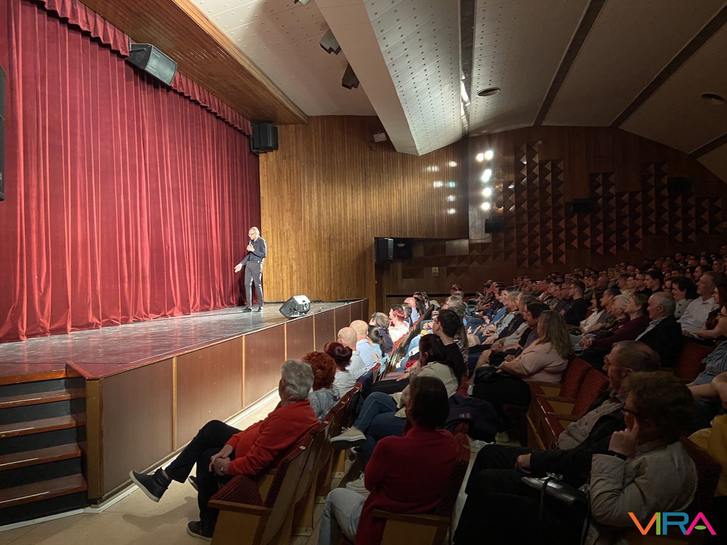 Kőhalmi Zoltán humorista önálló estjének adott otthont 2026. április 16-án, csütörtökön este a Petőfi Sándor Művelődési Központ színházterme, ahol a közönség egy sokszínű, gondolatébresztő és hétköznapi élethelyzeteket feldolgozó előadást láthatott a Dumaszínház műsorában.