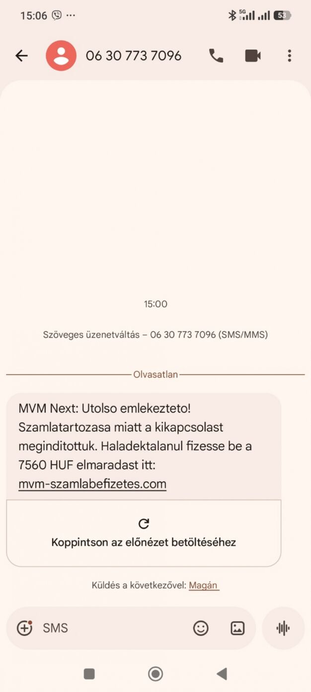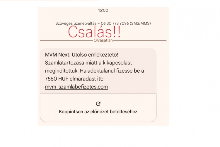 Az elmúlt időszakban megszaporodtak az MVM Next nevével visszaélő, SMS-üzenetek útján elkövetett csalási kísérletek. A módszer megegyezik a korábban tapasztaltakkal: az elkövetők egy állítólagos, lejárt tartozás befizetésére szólítják fel a címzetteket, és a fizetés elmaradása esetére a szolgáltatás kikapcsolását helyezik kilátásba.