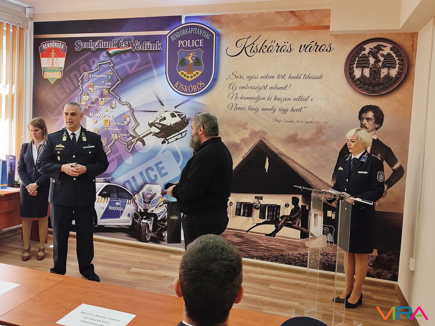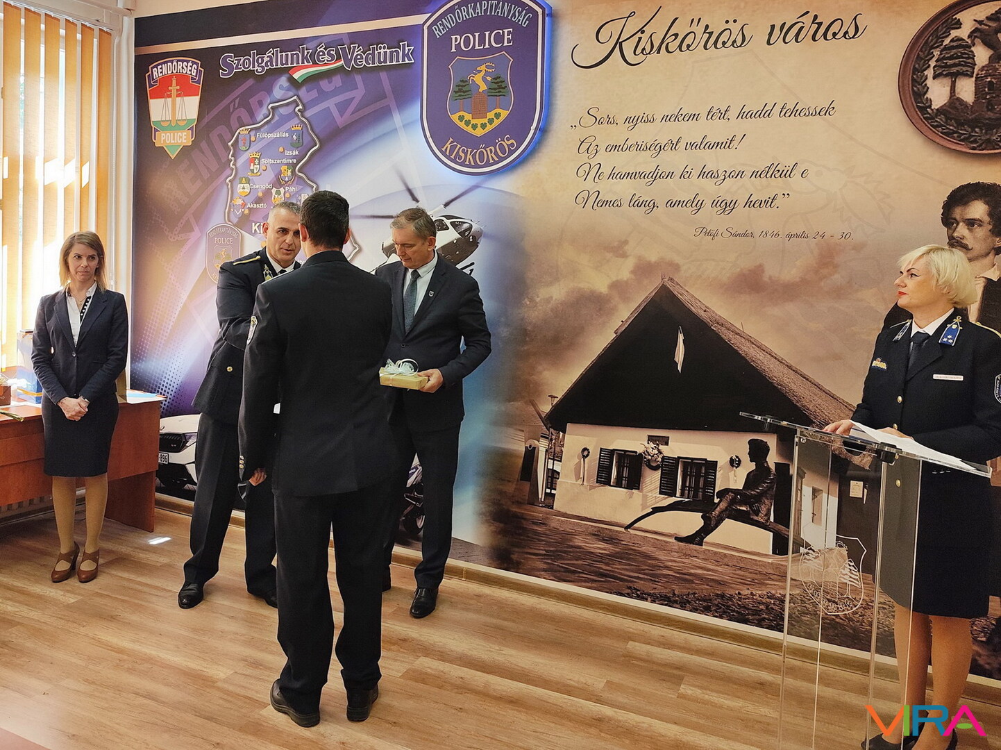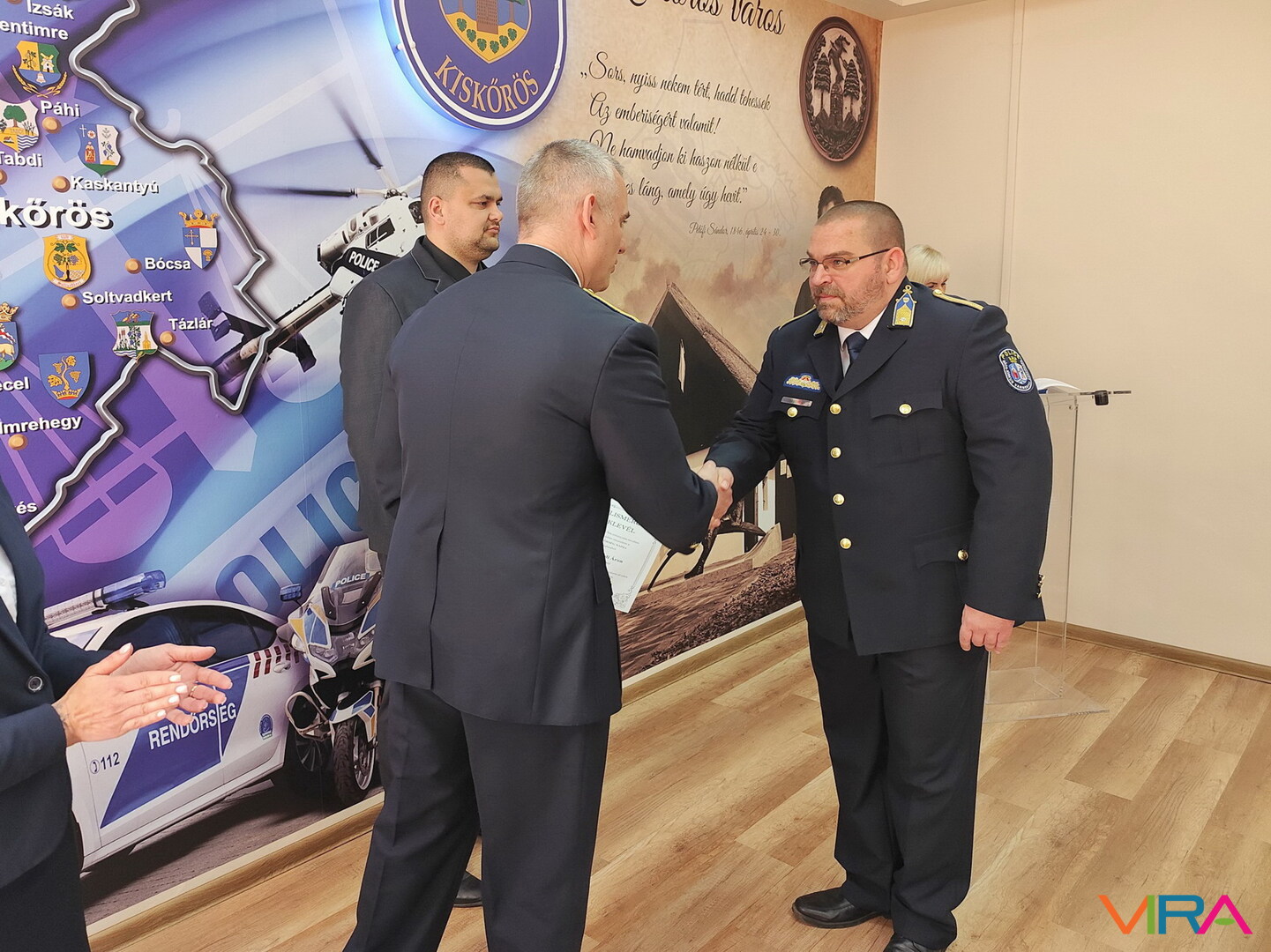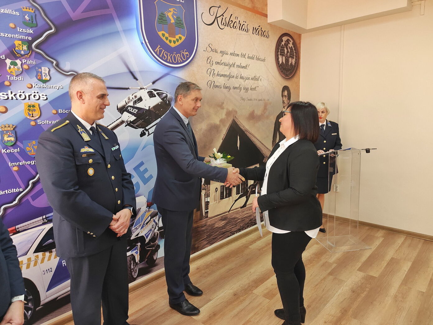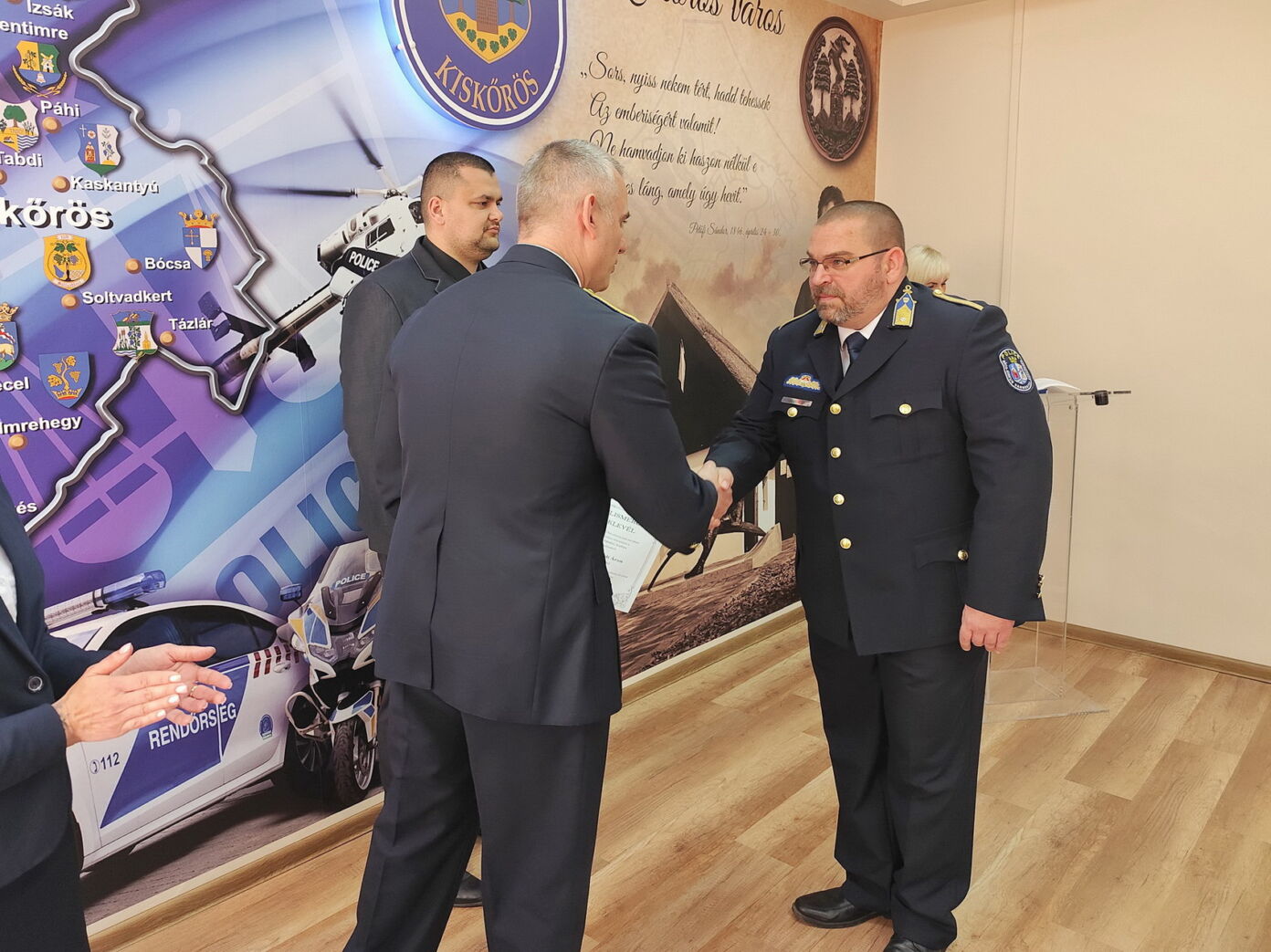 Kiskőrös város részéről Domonyi László polgármester adta át az elismeréseket. Kitüntetésben részesült Torgyik Viktor rendőr főtörzsőrmester, a Közlekedésrendészeti Osztály helyszínelője és balesetvizsgálója, aki 2011 óta szolgál a testületnél, és munkájával jelentős szerepet vállalt a közlekedésbiztonság javításában. Szintén elismerést kapott Martin-Budai Tímea, az Igazgatásrendészeti Osztály ügykezelője, aki hosszú évek óta segíti az osztály munkáját, valamint Kovács Krisztina, a Közrendvédelmi Osztály ügykezelője, aki kiemelkedő szervező- és koordinációs tevékenységével támogatja kollégáit.