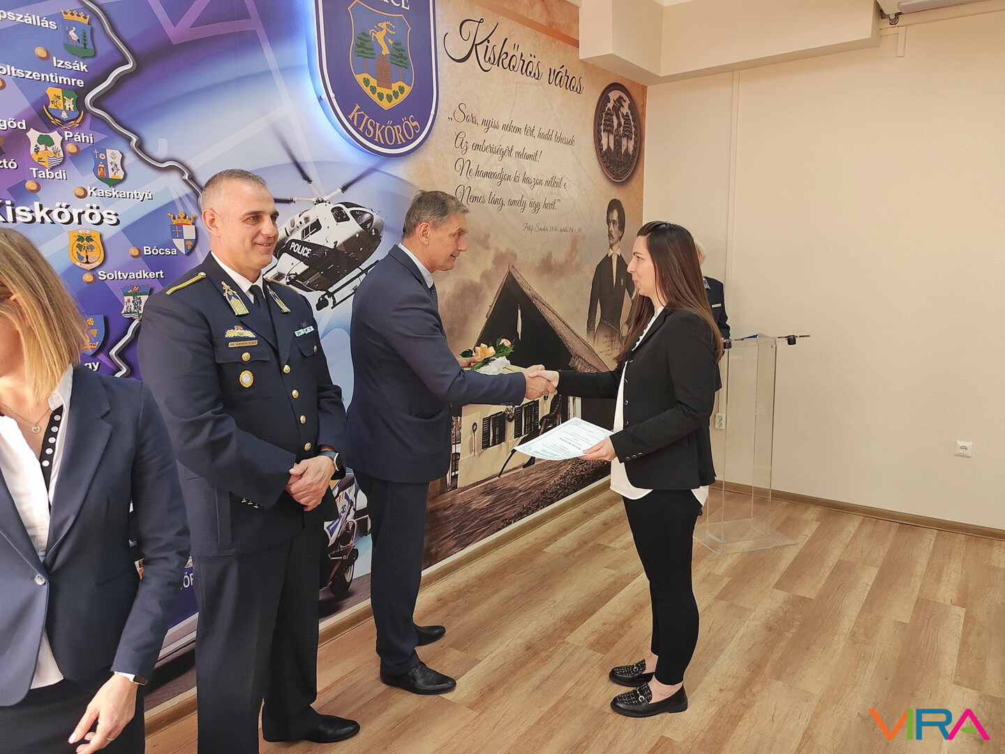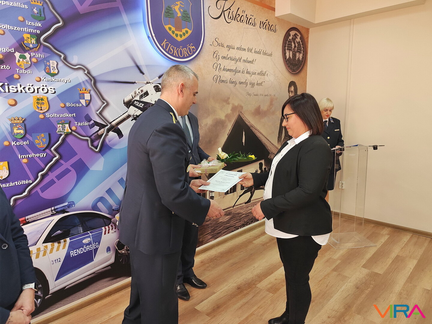Kecel város részéről Sendula Anita alpolgármester adott át elismerést Stefán-Kovács Katalin rendőr főhadnagynak, a Vizsgálati Osztály fővizsgálójának, aki több mint másfél évtizede végez magas színvonalú munkát a bűnügyi területen.