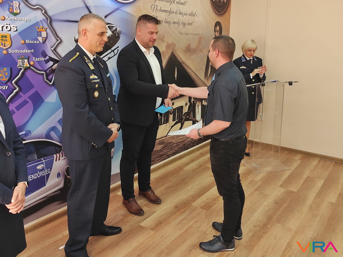 Soltvadkerten város képviseletében Temerini Ferenc polgármester jutalmazta Mercs Ádám rendőr főtörzsőrmestert, aki körzeti megbízottként lát el szolgálatot, és helyismeretével, valamint elhivatottságával segíti a bűnmegelőzést és a felderítést.