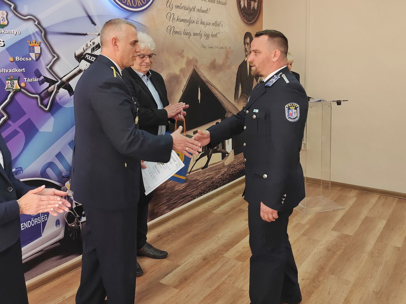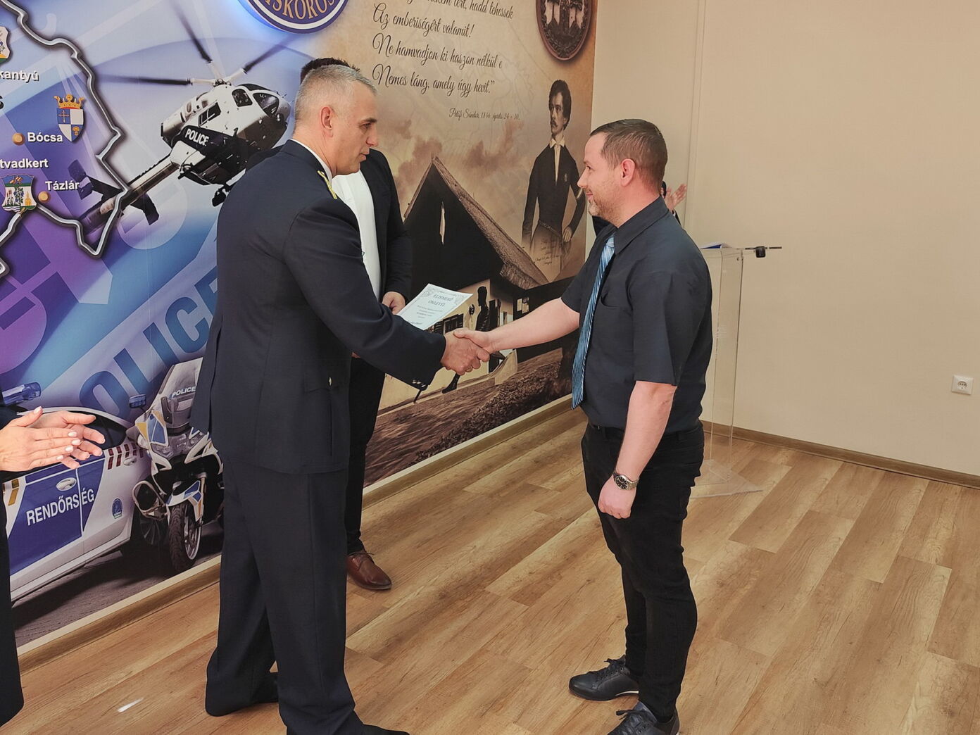 Bócsa község képviseletében Szőke-Tóth Mihály polgármester Kovács Dániel munkavállalót részesítette elismerésben, aki informatikai tevékenységével támogatja a kapitányság munkáját, és hozzájárul a bűncselekmények felderítéséhez.
