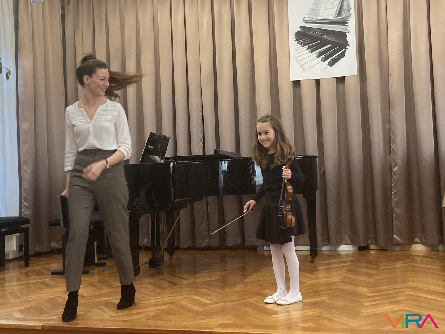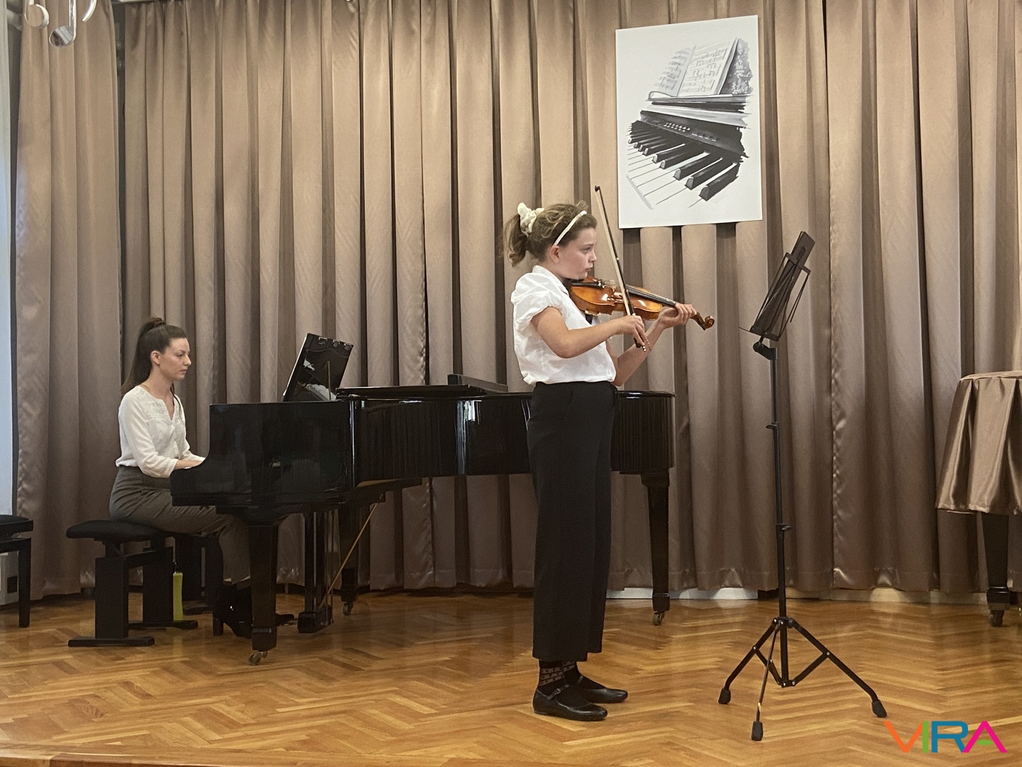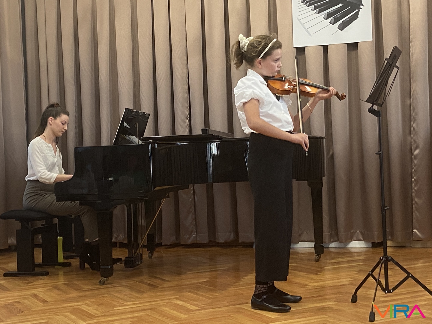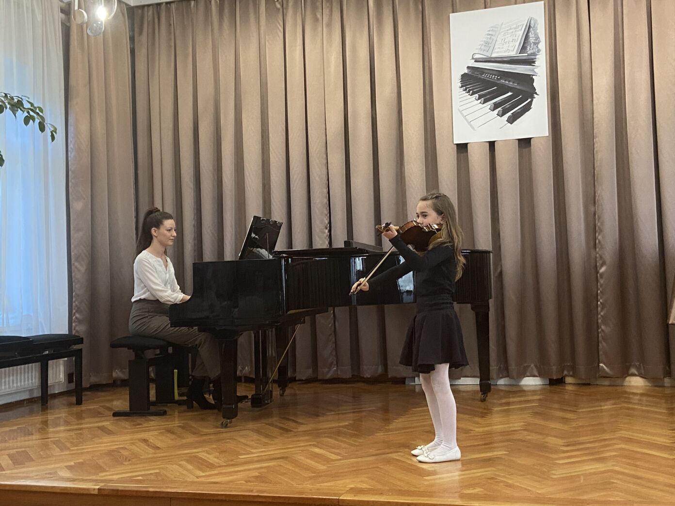 Szabó Zsanna hegedűn szólaltatta meg a „Hot Cross Bun” című darabot, Kószó Rebeka zongorakíséretével