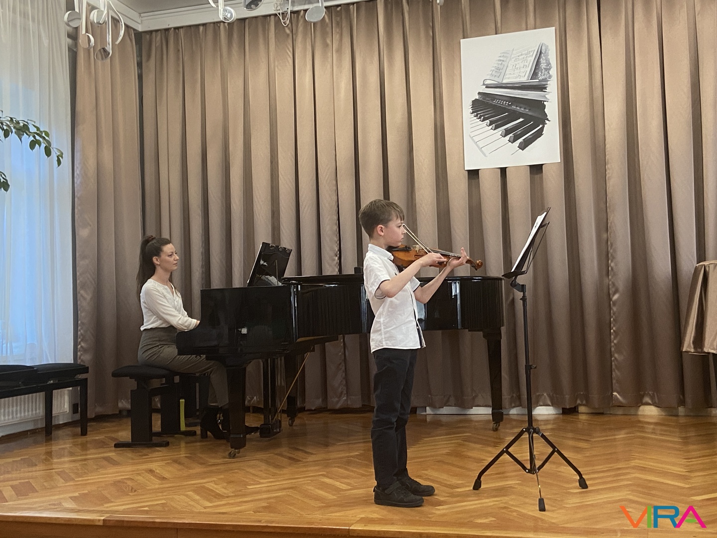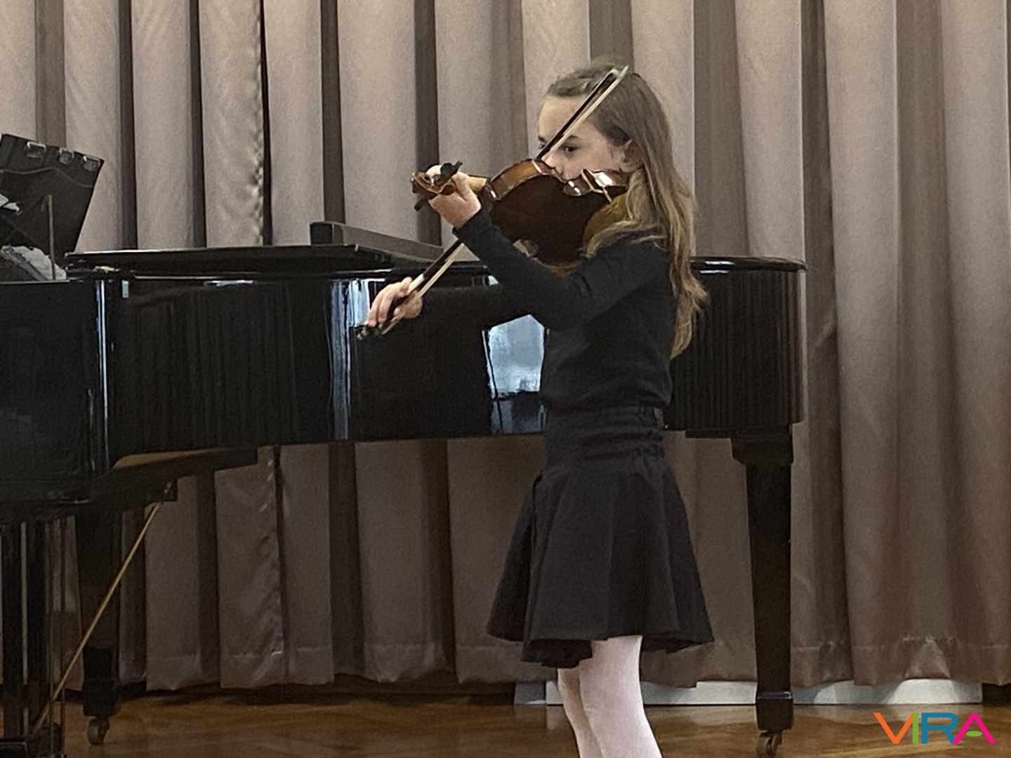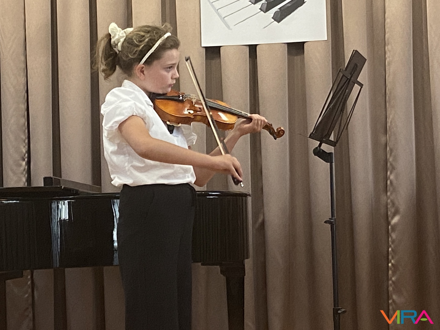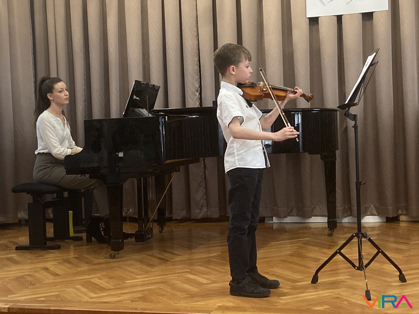 Szabó Zsanna hegedűn szólaltatta meg a „Hot Cross Bun” című darabot, Kószó Rebeka zongorakíséretével
