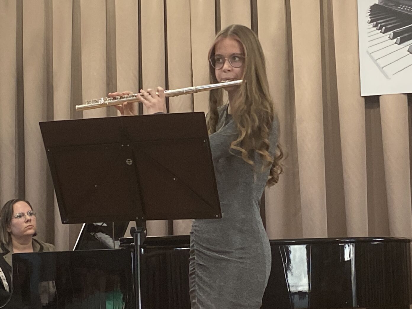 A folytatásban Babucsik Bernadett Roemer „Andante Cantabile” című darabját, Turánné Lengyel Ágnes Blumenthal „Keringő” című művét, Tóth Zoé Grant Horsley „Nostalgia” című kompozícióját, valamint Lengyelné Dusnoki Éva Hafmann „Sonatine 1. tétel” című darabját hallhatta a közönség. Benyó Dóra Böhm „Spanyol tánc” című művét adta elő, majd Szűcs Lotti Alard „Fantane facile 1. és 2. tétel” című darabjait játszotta el. Mindannyian fuvolán játszottak, Pusztai Virág zongorakíséretével.