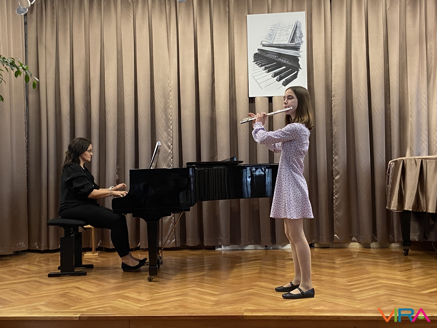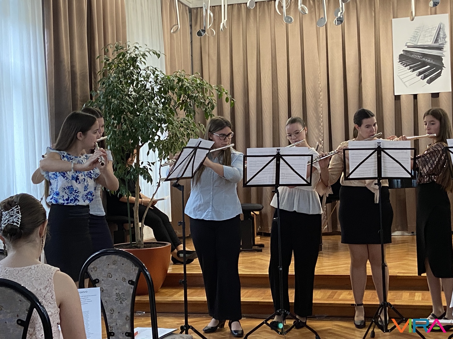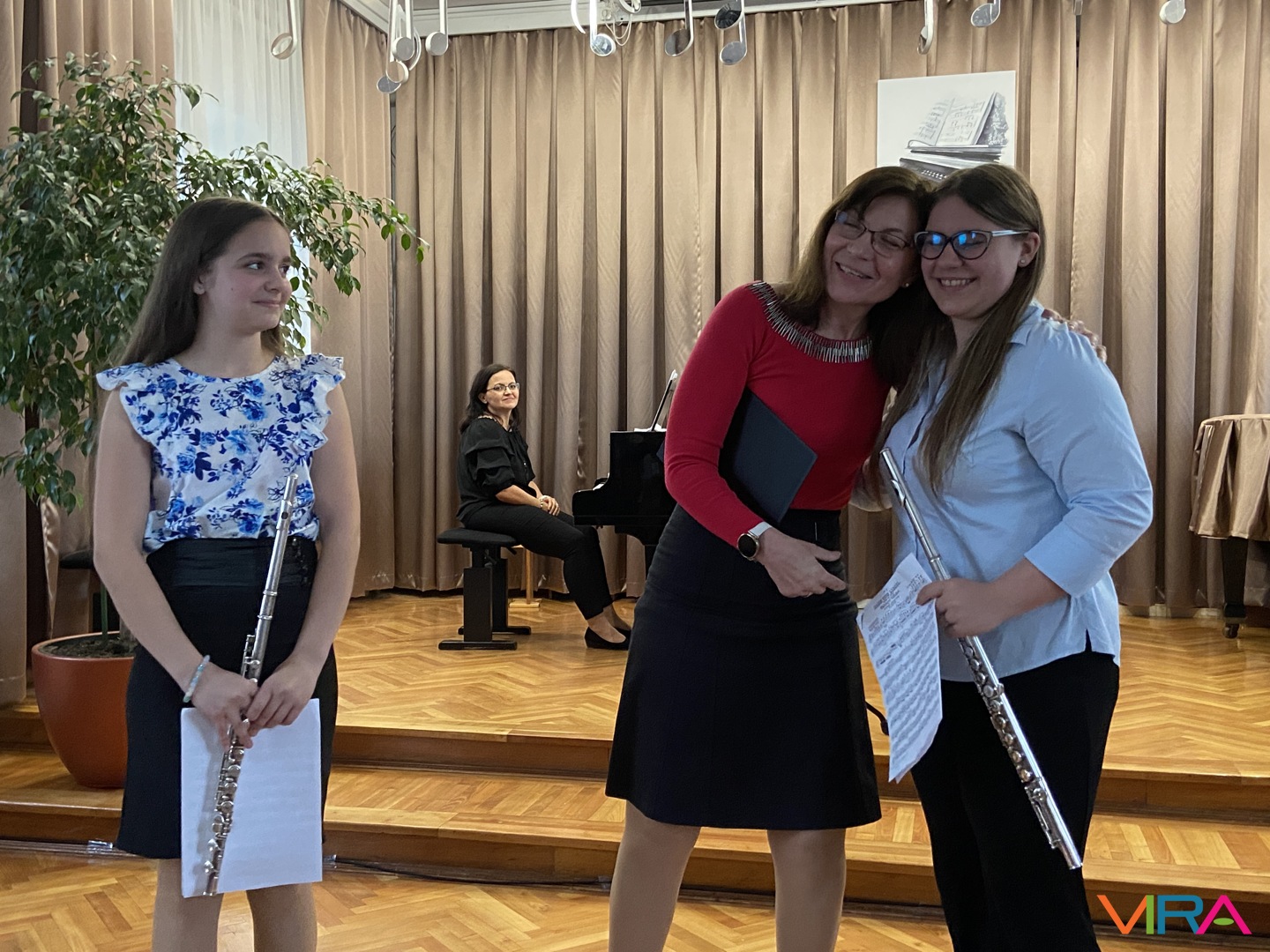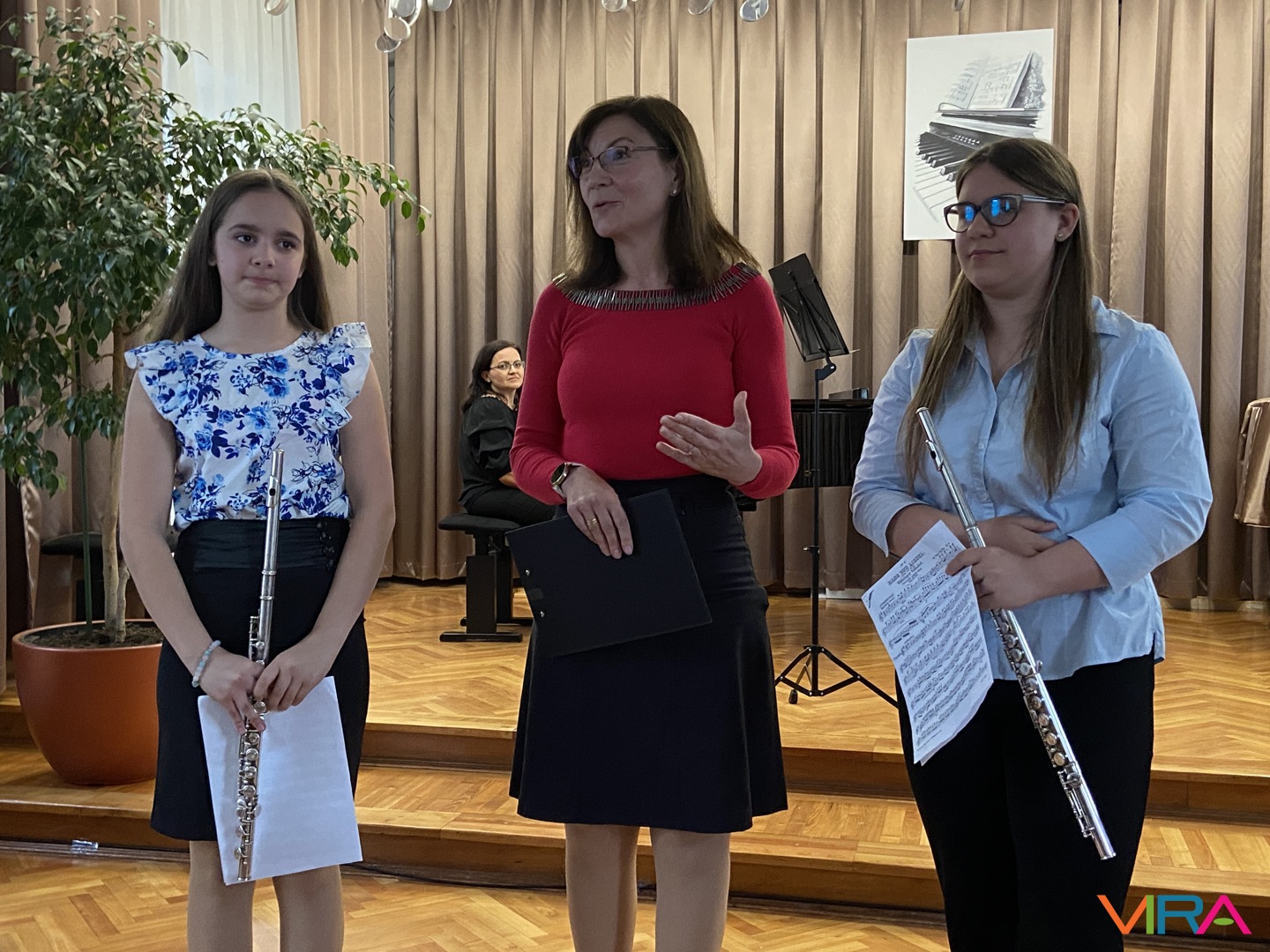 A program következő részében Schumann „Melódia” című művét Bocor Debóra és Sáfár Andrea közösen adta elő fuvolán, amely már egy magasabb szintű kamarazenei együttműködést mutatott be. Beethoven Örömódáját Andriska Nóra szólaltatta meg, majd Takács Liza „Virág Erzsi” című előadása következett.