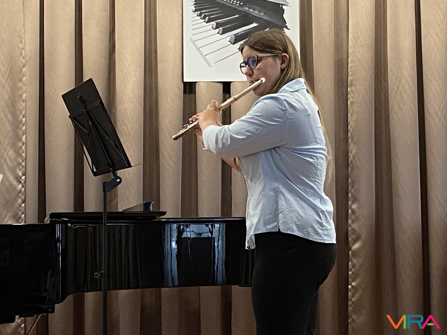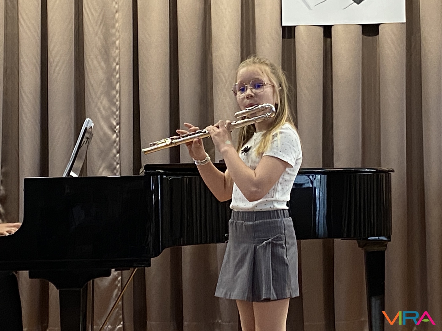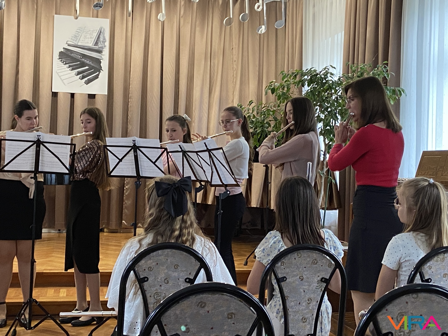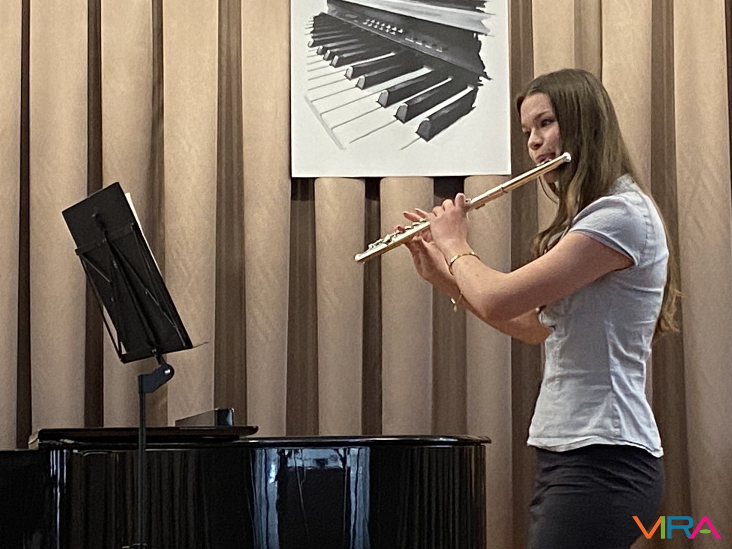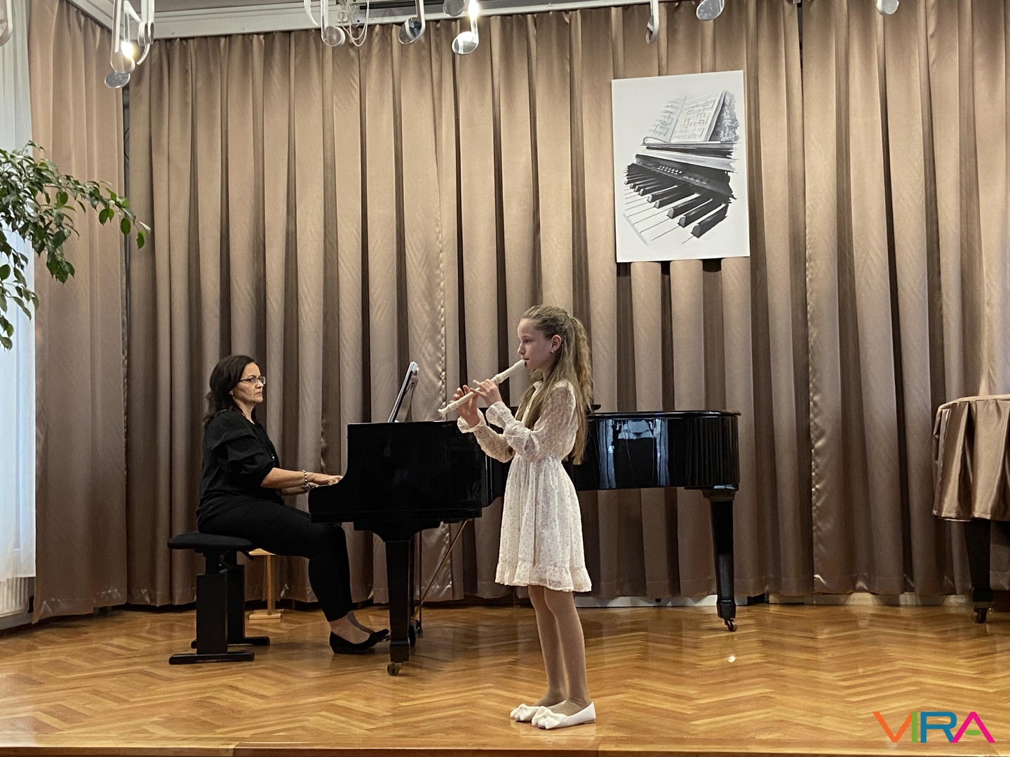A program következő részében Schumann „Melódia” című művét Bocor Debóra és Sáfár Andrea közösen adta elő fuvolán, amely már egy magasabb szintű kamarazenei együttműködést mutatott be. Beethoven Örömódáját Andriska Nóra szólaltatta meg, majd Takács Liza „Virág Erzsi” című előadása következett.
