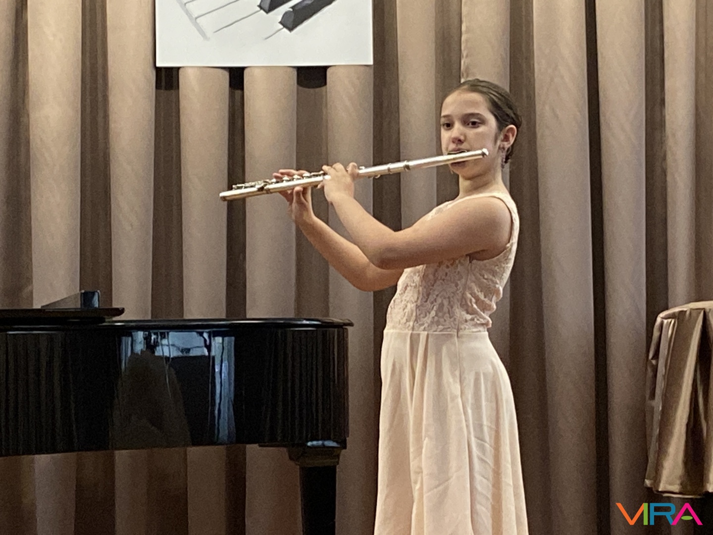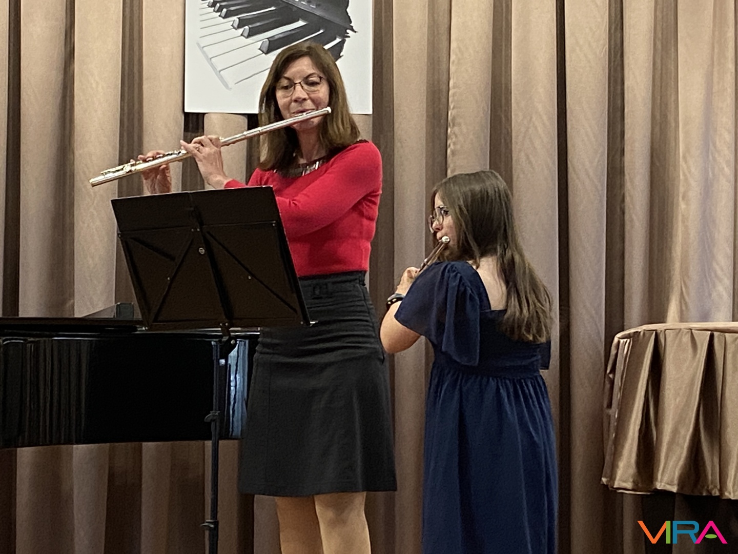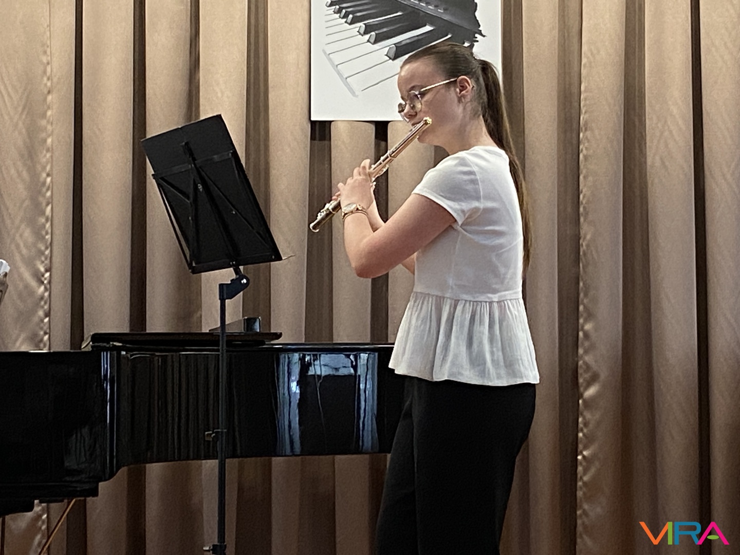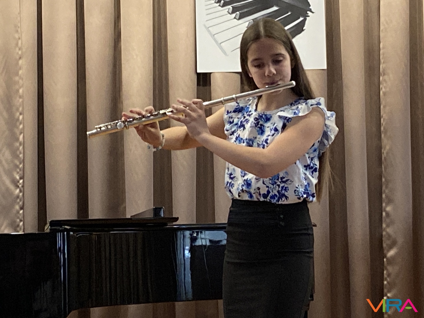A program következő részében Schumann „Melódia” című művét Bocor Debóra és Sáfár Andrea közösen adta elő fuvolán, amely már egy magasabb szintű kamarazenei együttműködést mutatott be. Beethoven Örömódáját Andriska Nóra szólaltatta meg, majd Takács Liza „Virág Erzsi” című előadása következett.