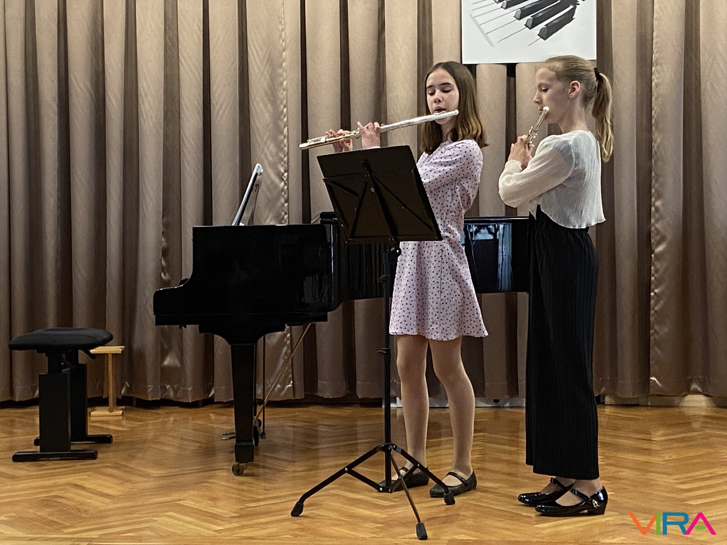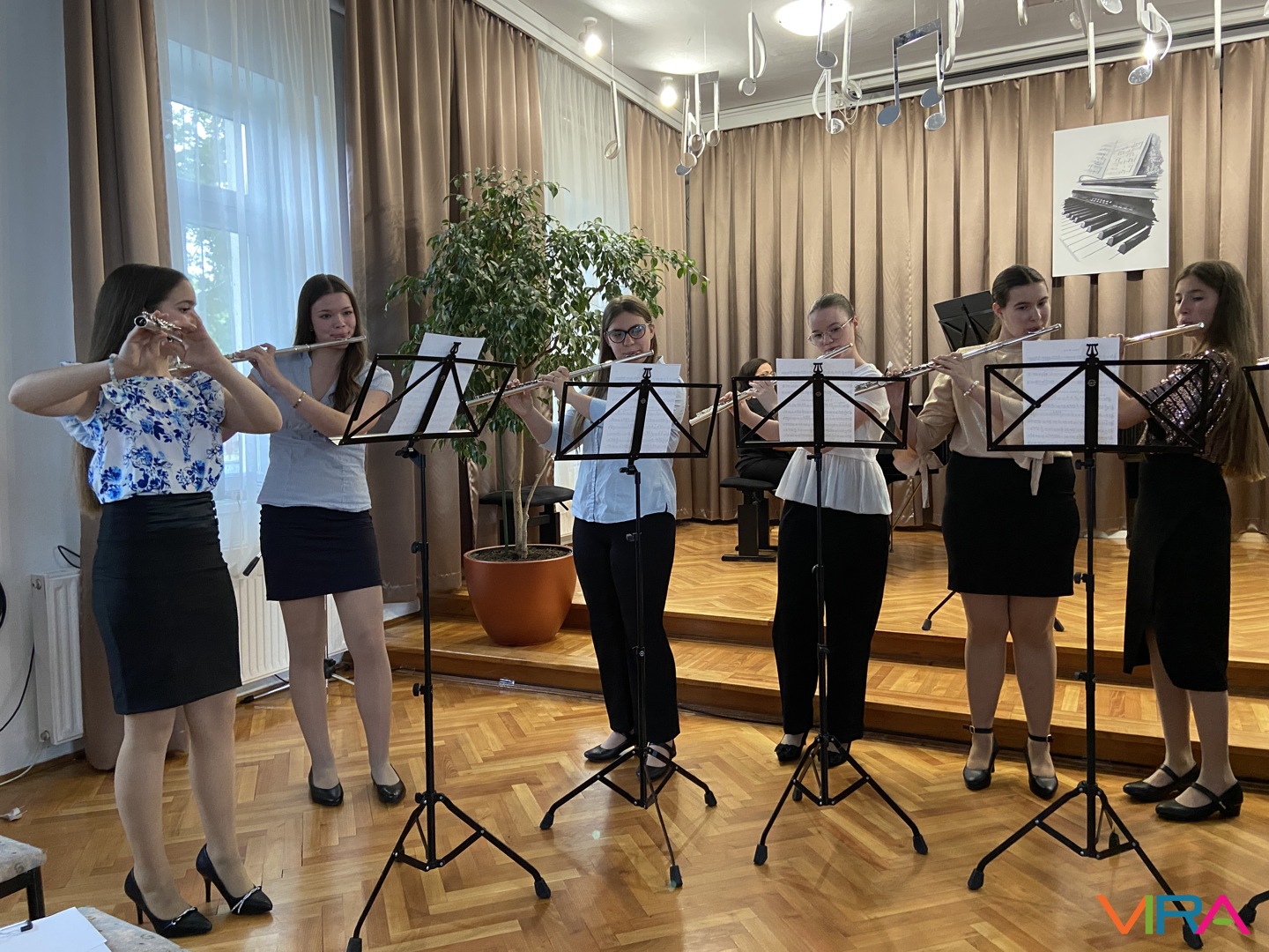 A hangverseny során több duó is színpadra lépett: Wéber Olívia és Viczián Noémi közösen adták elő a „Megfogtam egy szúnyogot” című darabot, míg Szabó Léna és Vikor Noémi Kanefzky „Körtánc” című művével gazdagították a műsort. A kamaraprodukciók különösen jól mutatták a diákok együttműködési készségét és zenei figyelmét.