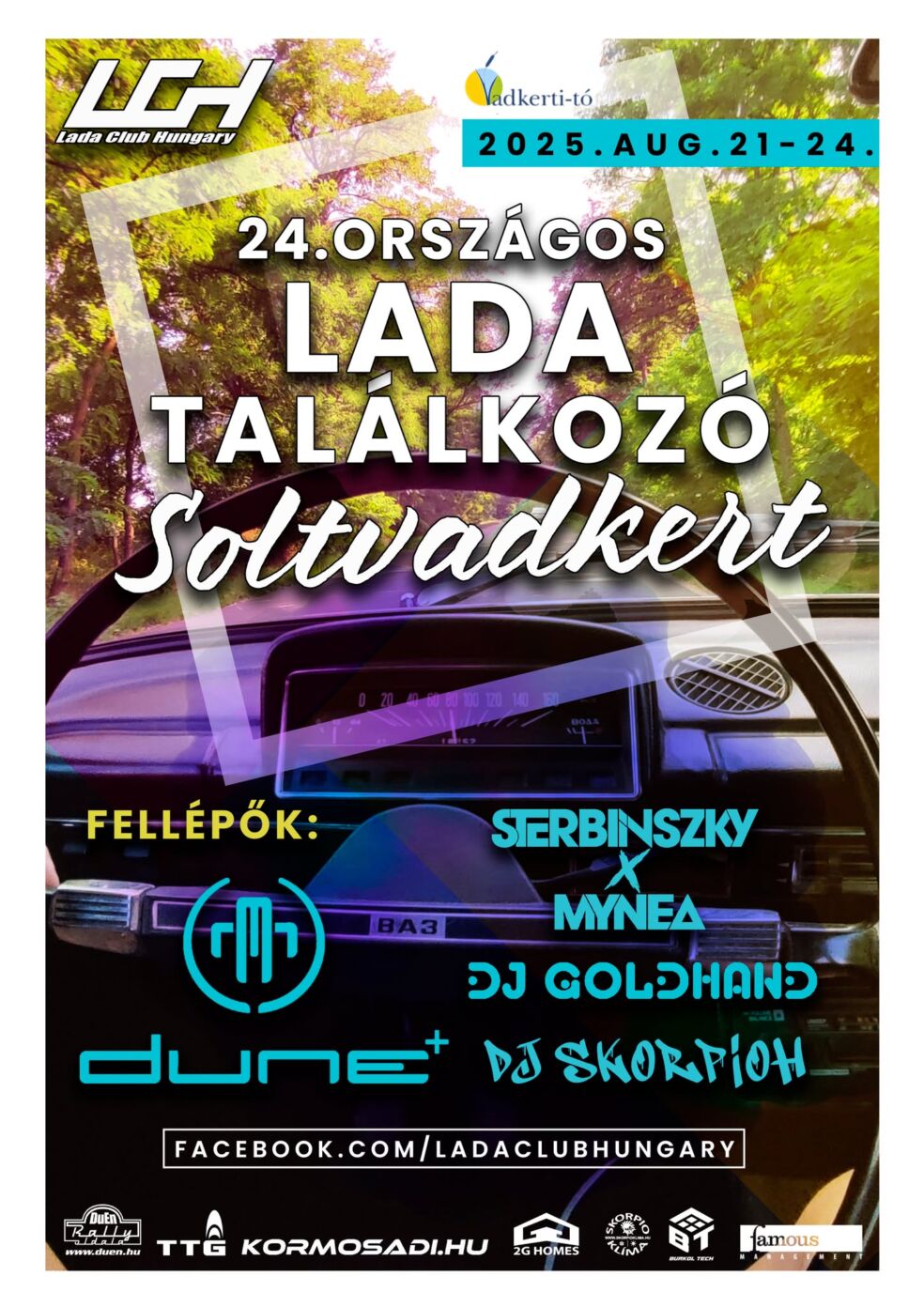 24. Országos Lada Találkozó 2025-08-14 Soltvadkert, Vadkerti-tó, 2025. augusztus 24. 09:00 - 18:00 Facebook esemény