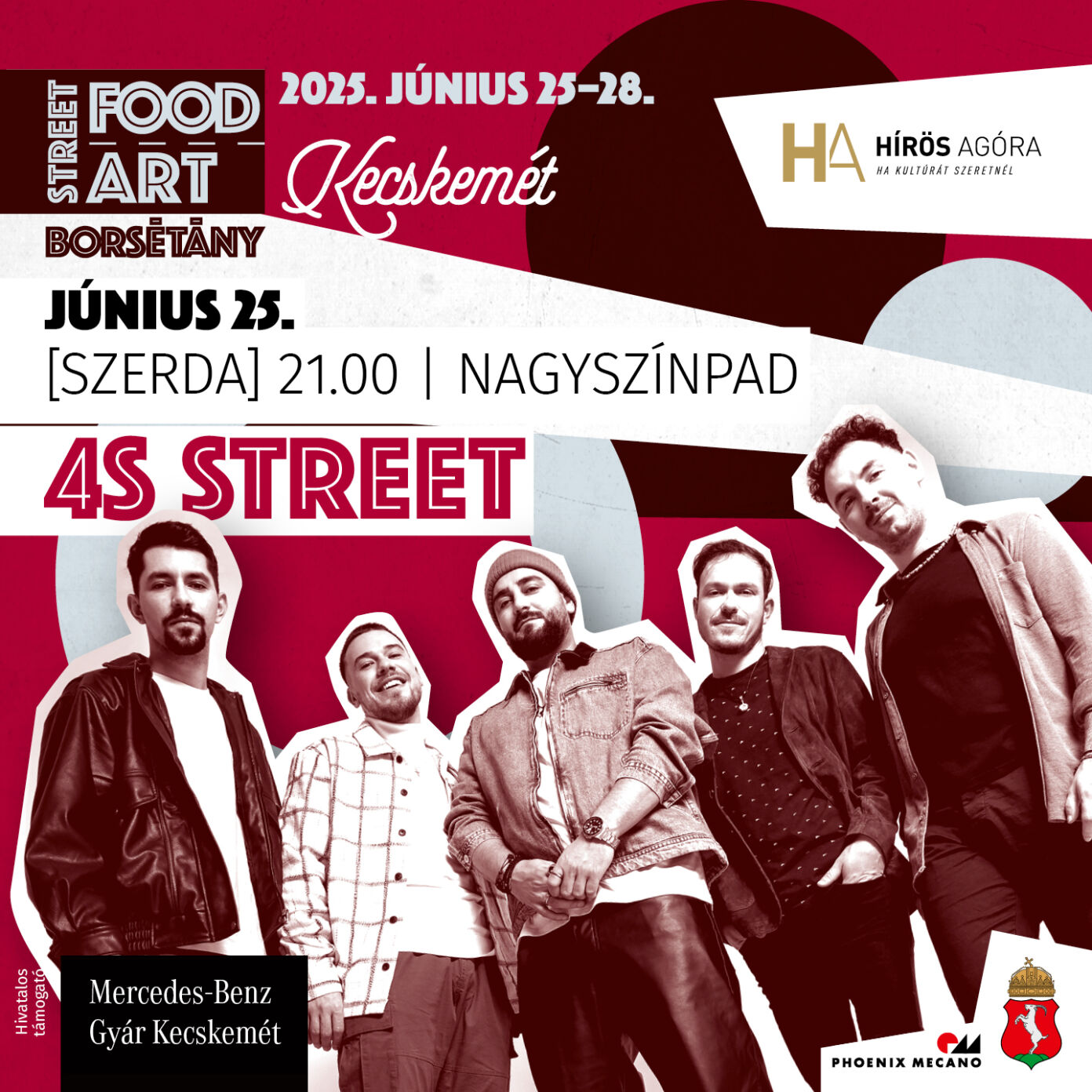 A Street Food Street Art Borsétány 2025 koncertjeit a 4S Street bulijával indítjuk – szeretettel várunk mindenkit a nyár első nagyfesztiváljának nyitónapján! @4sstreet 4Street