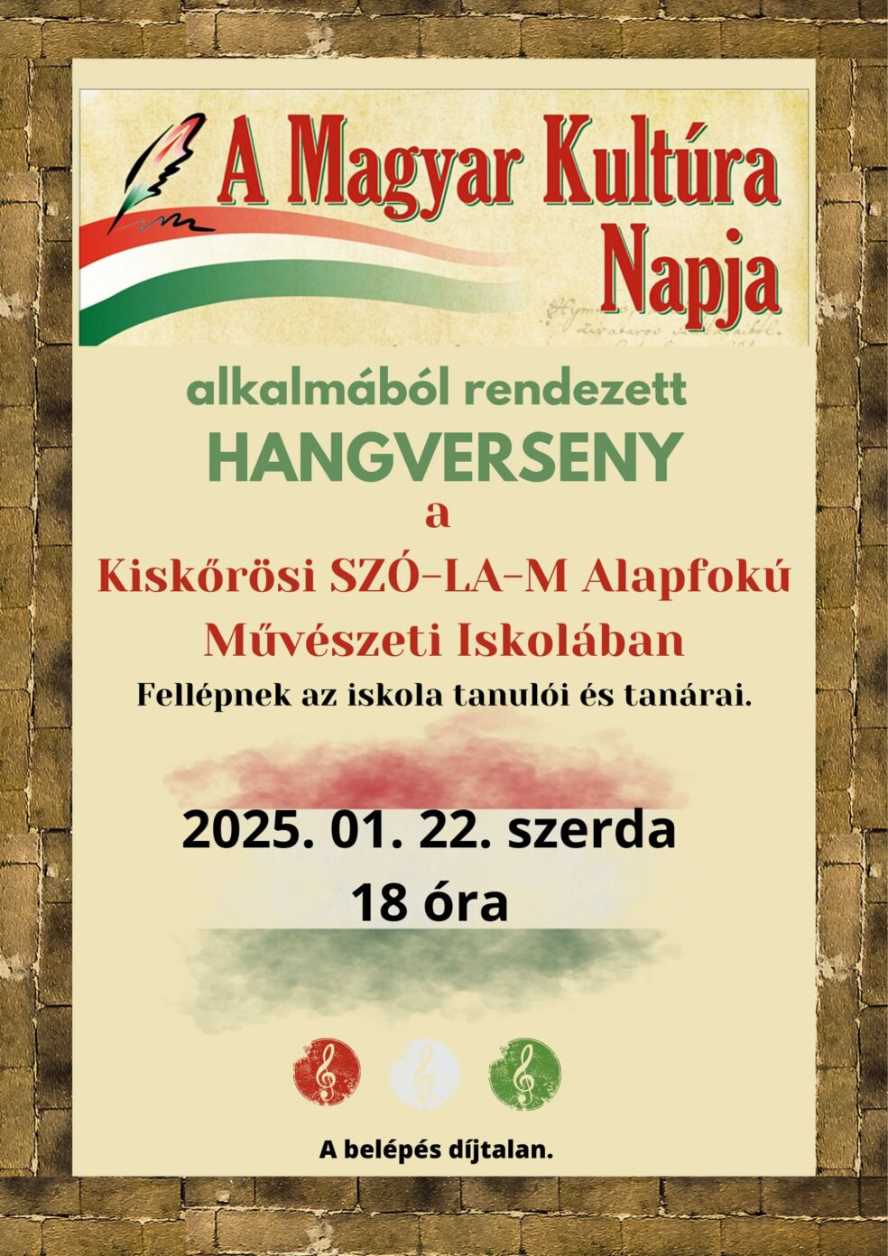 Kiskőrösi SZÓ-LA-M Alapfokú Művészeti Iskola hangversenyterme - 6200 Kiskőrös, Tarnowi tér 1., 2025. január 22. 18:00 - 20:00