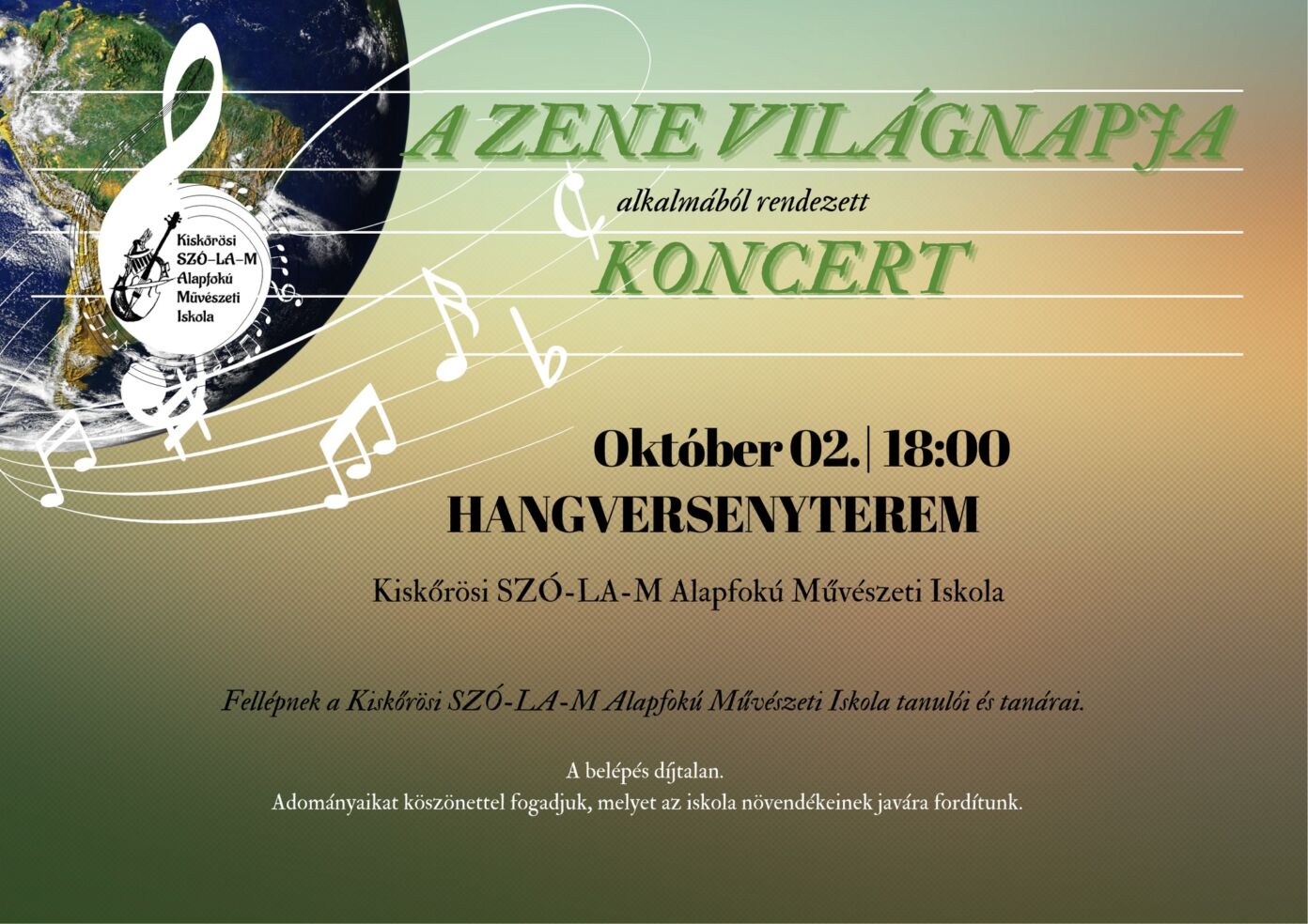 Kiskőrösi SZÓ-LA-M Alapfokú Művészeti Iskola hangversenyterme - 6200 Kiskőrös, Tarnowi tér 1., 2025. október 2. 18:00 - 20:00