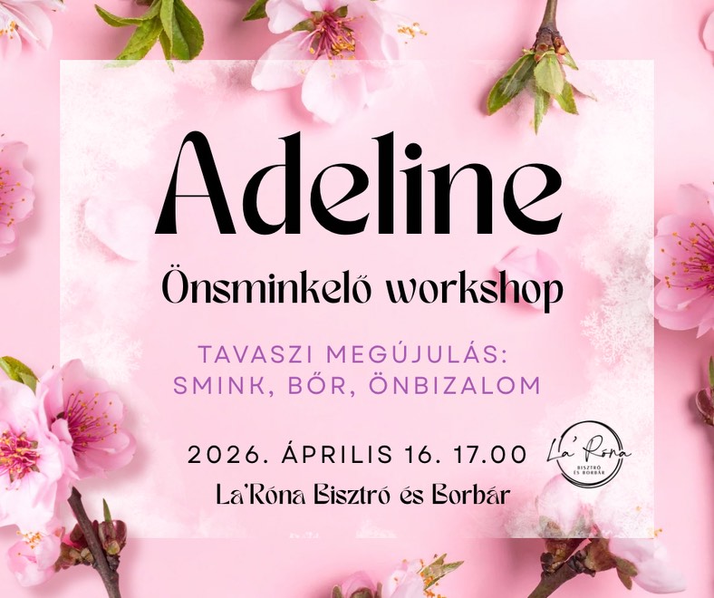 Adeline önsminkelő workshop 2026-04-14 Kiskőrös, La’Róna Bisztró és Borbár, 2026. április 16. 17:00 - 20:00 Facebook esemény