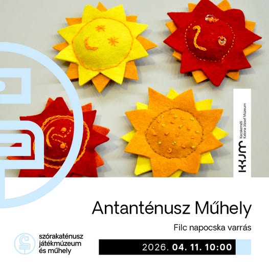 Antanténusz Műhely – Filc napocska varrás 2026-04-08 Kecskemét, Szórakaténusz Játékmúzeum és Műhely, 2026. április 11. 10:00 - 12:00 Facebook esemény